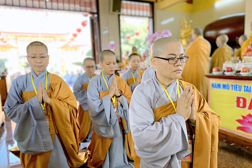 Khóa Lễ kết thúc, đạo tràng lại trang nghiêm, cung thỉnh Quý ngài thân lâm chứng minh trai đường. Vâng theo lời dạy của Hòa thượng Ân sư Thích Thiện Phúc, Sư cô Thích Diệu Thảo đại diện chư Ni kính dâng lời tác bạch cúng dường tạ ơn.