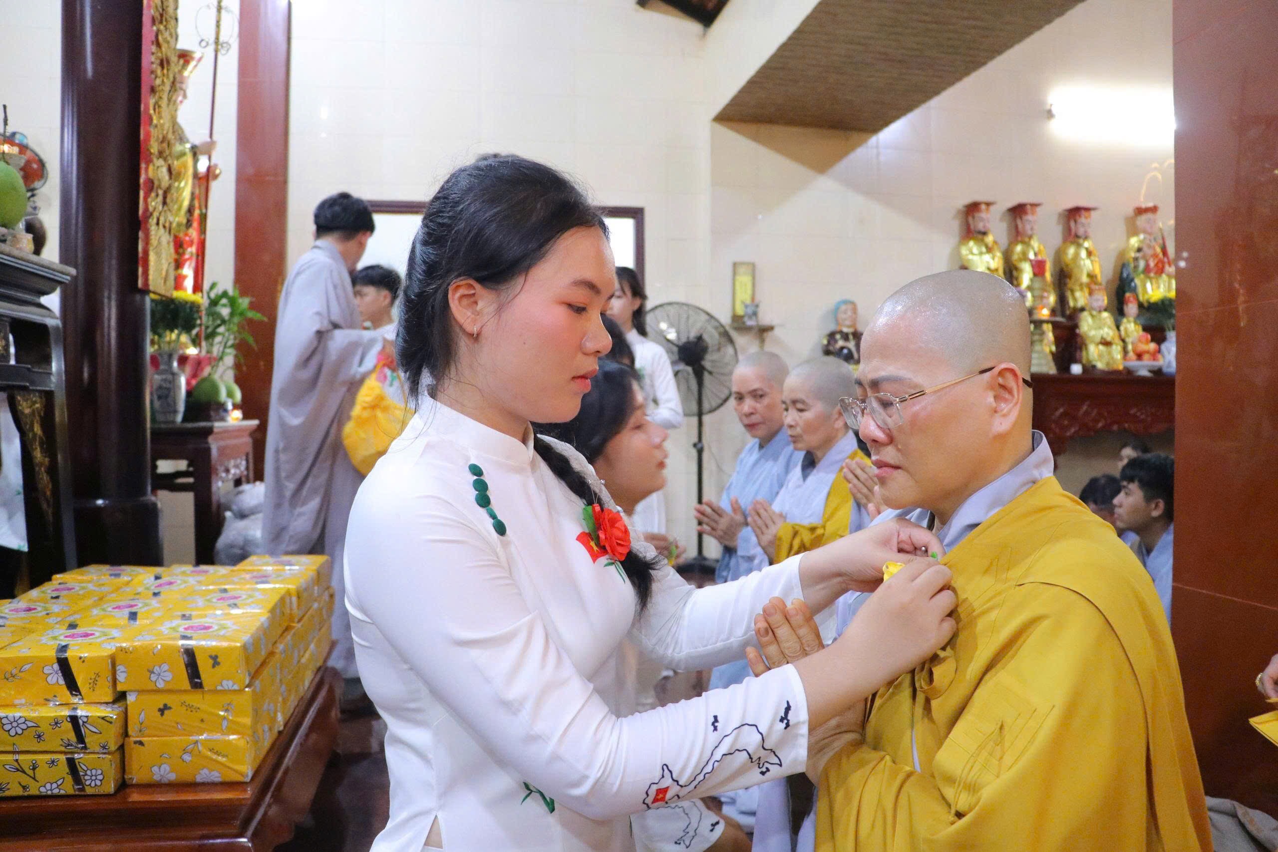 Bên cạnh đó, buổi lễ còn diễn ra nghi thức “Bông hồng cài áo tưởng nhớ Tứ ân”. Theo ý nghĩa truyền thống, màu hoa hồng vàng được cài lên chiếc huỳnh y của bậc xuất trần thượng sĩ, thể hiện tâm hạnh xả ly, hướng về lý tưởng giải thoát giác ngộ. Màu hoa hồng đỏ được cài lên người con còn đầy đủ song thân trên đời như niềm tự hào vì còn cha mẹ bên cạnh. Đối với người con chỉ còn lại cha hoặc mẹ thì sẽ được cài lên ngực áo màu hoa hồng nhạt và bông hồng trắng trên áo người con kém may mắn khi không còn cả cha lẫn mẹ như một lời nhắc nhở người con hãy sống thật tốt để cha mẹ ở thế giới bên kia được an lòng.