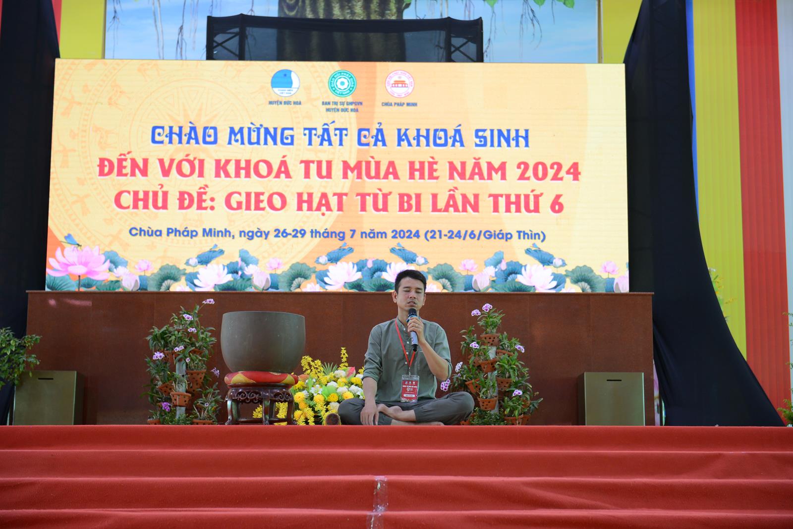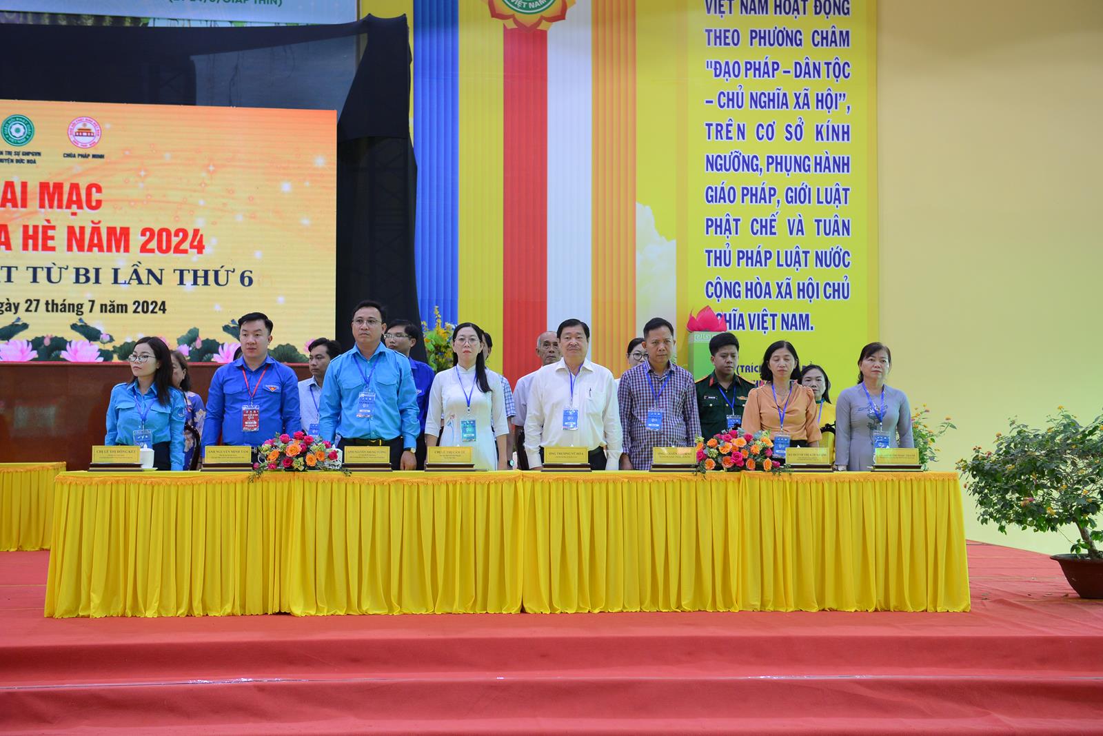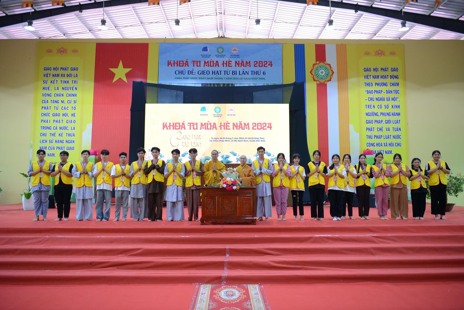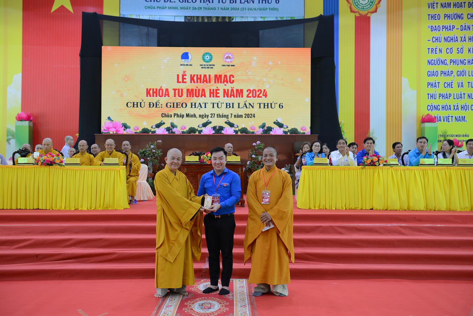 Sáng ngày 27/7/2024 (nhằm ngày 22/6/Giáp Thìn), BTS GHPGVN huyện Đức Hòa phối hợp Hội Liên hiệp Thanh niên Việt Nam huyện và chùa Pháp Minh đã trọng thể tổ chức Lễ Khai mạc Khoá tu mùa hè năm 2024, chủ đề “Gieo hạt từ bi” lần thứ 6 với hơn 500 khoá sinh từ nhiều nơi trở về tham dự.