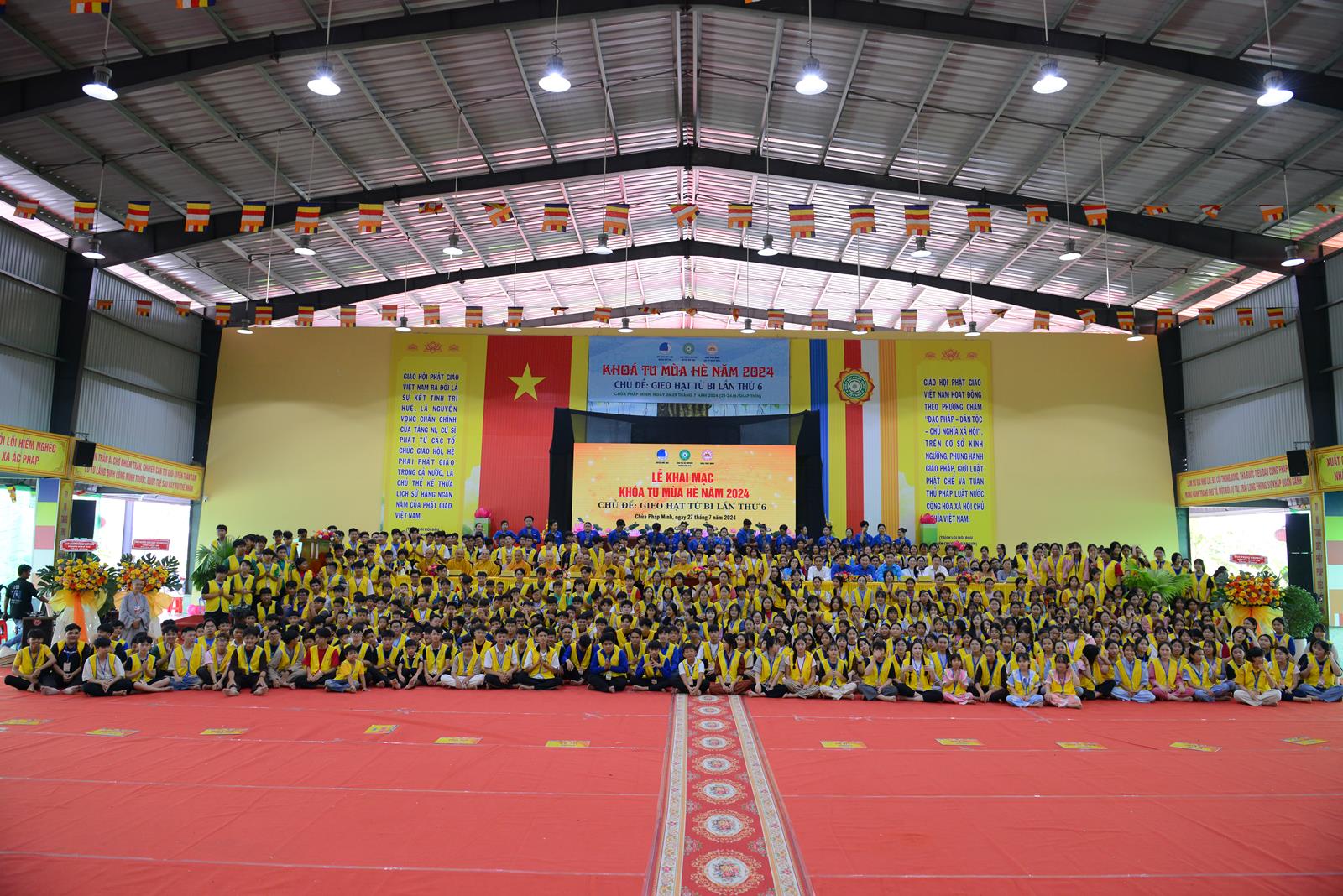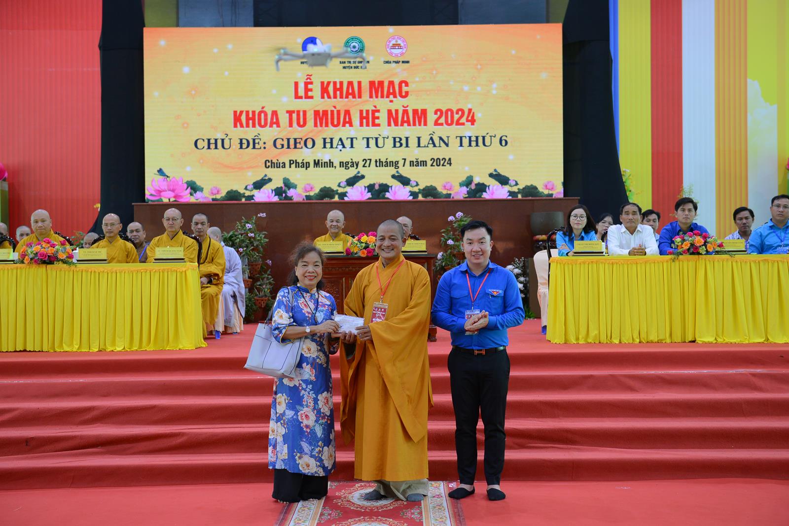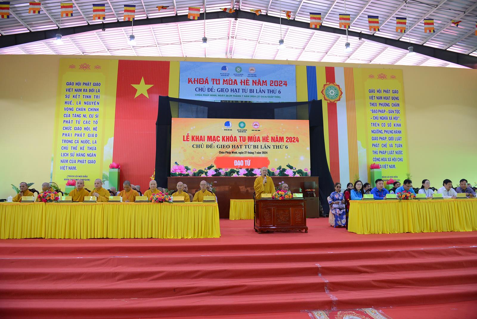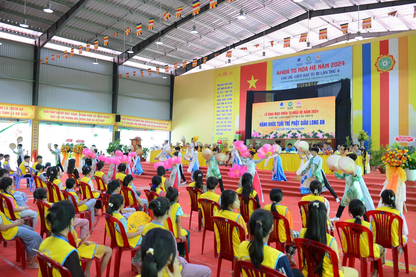 Sáng ngày 27/7/2024 (nhằm ngày 22/6/Giáp Thìn), BTS GHPGVN huyện Đức Hòa phối hợp Hội Liên hiệp Thanh niên Việt Nam huyện và chùa Pháp Minh đã trọng thể tổ chức Lễ Khai mạc Khoá tu mùa hè năm 2024, chủ đề “Gieo hạt từ bi” lần thứ 6 với hơn 500 khoá sinh từ nhiều nơi trở về tham dự.