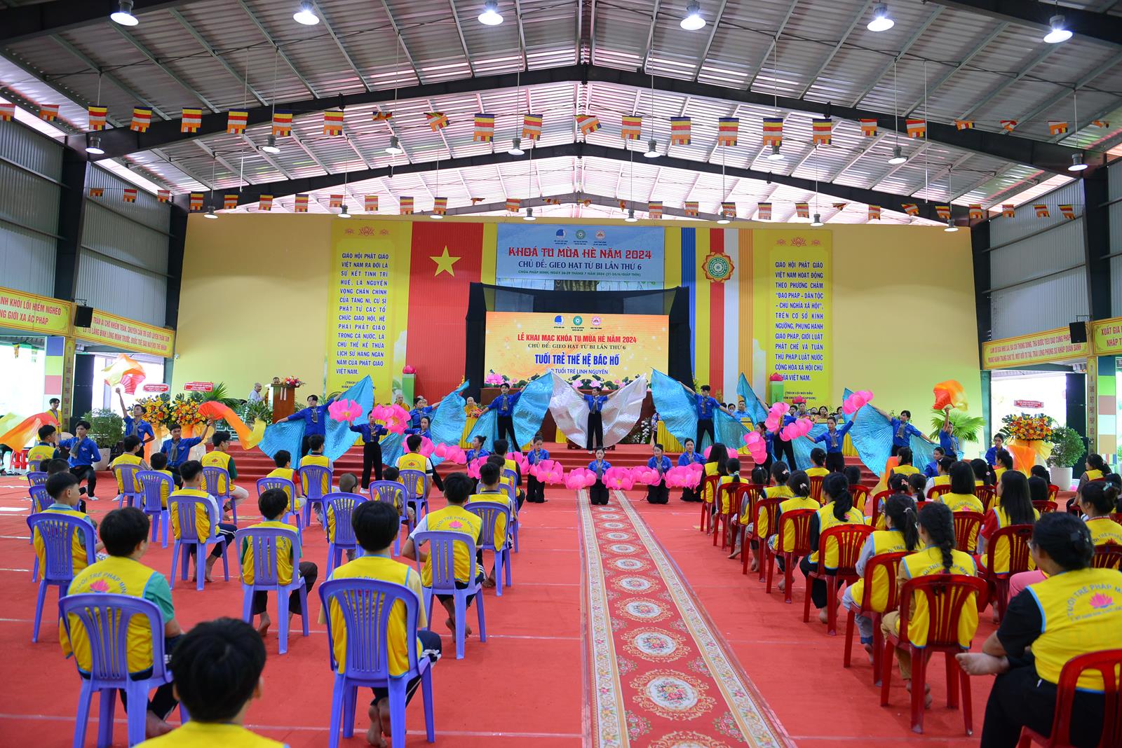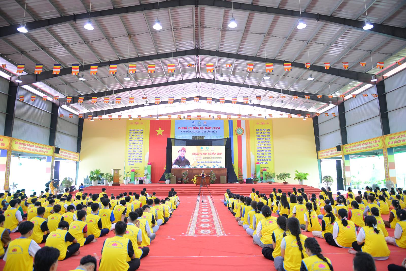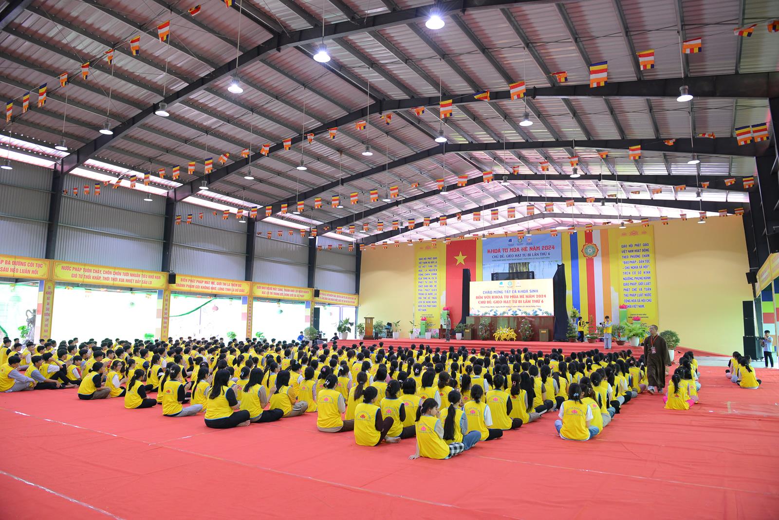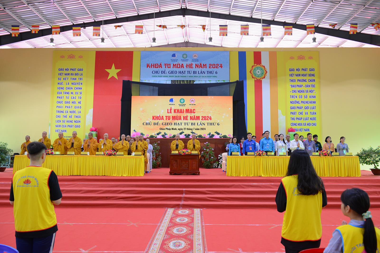 Sáng ngày 27/7/2024 (nhằm ngày 22/6/Giáp Thìn), BTS GHPGVN huyện Đức Hòa phối hợp Hội Liên hiệp Thanh niên Việt Nam huyện và chùa Pháp Minh đã trọng thể tổ chức Lễ Khai mạc Khoá tu mùa hè năm 2024, chủ đề “Gieo hạt từ bi” lần thứ 6 với hơn 500 khoá sinh từ nhiều nơi trở về tham dự.