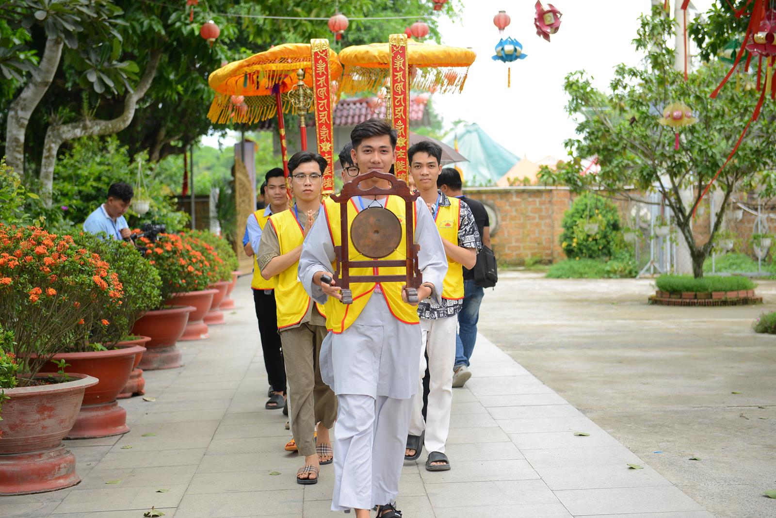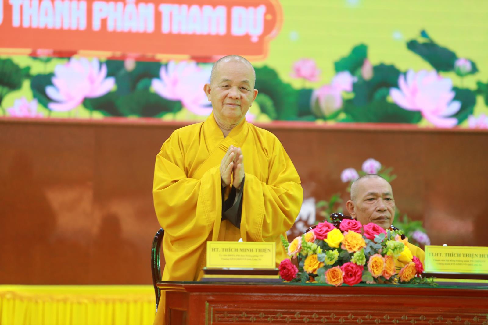 Buổi lễ đón nhận nhiều lẵng hoa và tịnh tài chúc mừng từ: Ban Chứng minh BTS GHPGVN tỉnh; BTS GHPGVN tỉnh; Ban HDPG GHPGVN tỉnh; Ban Kinh tế Tài chính GHPGVN tỉnh; Ban Từ thiện Xã hội GHPGVN huyện.