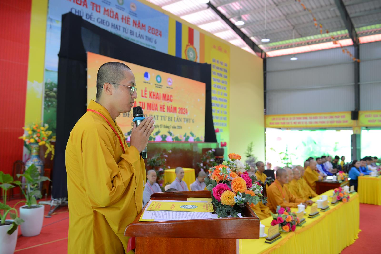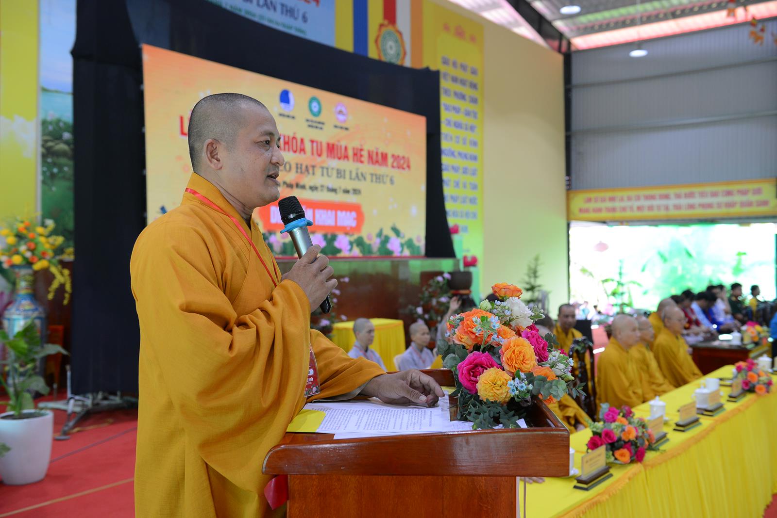 Tại buổi lễ, ĐĐ. Thích Lệ Duyên – Trưởng BTC Khoá tu đã phát biểu khai mạc. Đại đức gửi lời chào mừng đến toàn thể khoá sinh đã trở về tham dự Khoá tu mùa hè năm nay. Đại đức nhấn mạnh, việc giáo dục đến thế hệ trẻ là nhiệm vụ không của riêng ai. Khoá tu mùa hè là môi trường lành mạnh nhằm tạo ra không gian học tập, sinh hoạt bổ ích cho các em thanh thiếu nhi với mong muốn xây dựng một tương lai tươi sáng, mang lại đạo đức, giá trị sống và hoằng dương Phật pháp đến các em. Cuối lời, Đại đức gửi lời tri ân đến Chư Tôn đức chứng minh, lời chào mừng các em khoá sinh và kính chúc khoá tu thành tựu viên mãn.