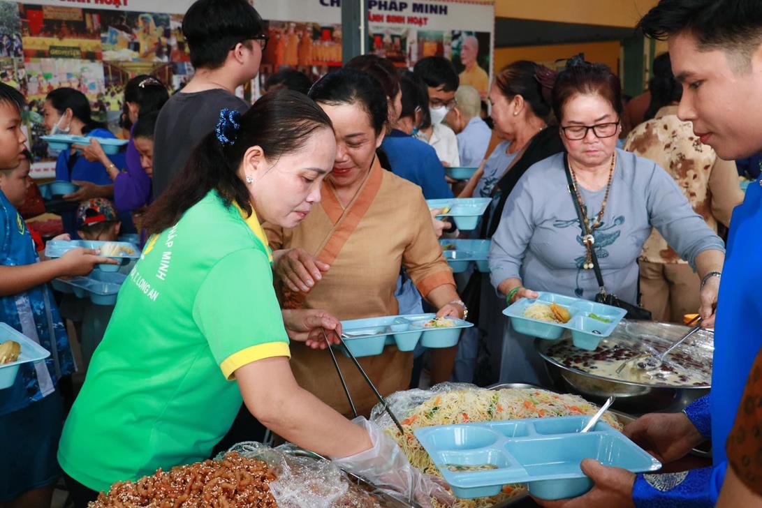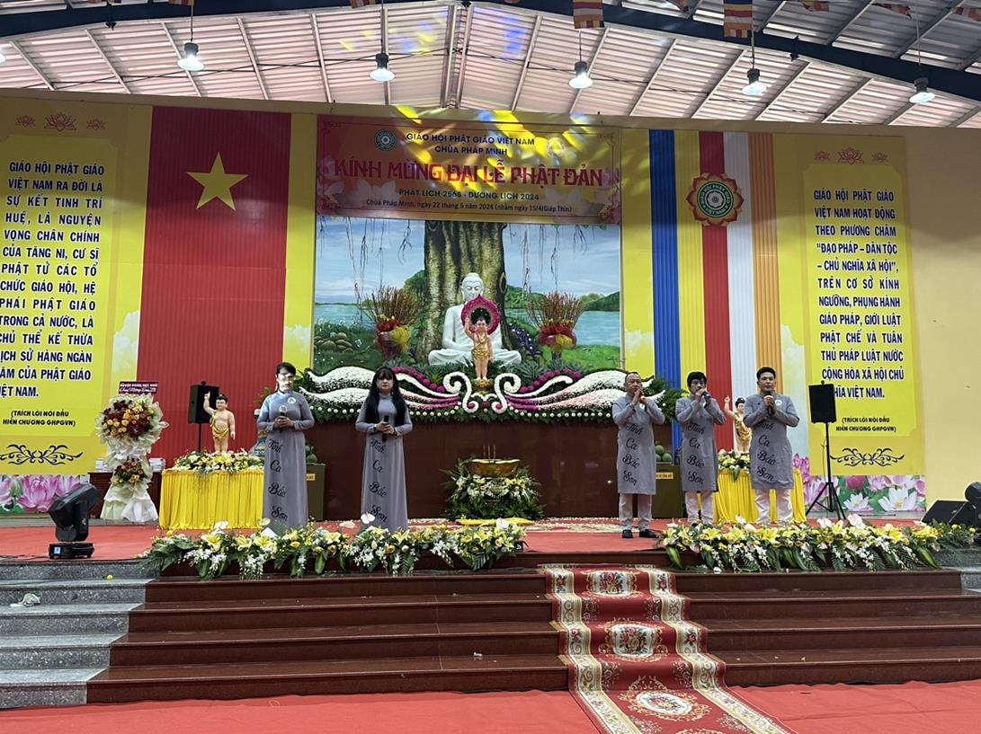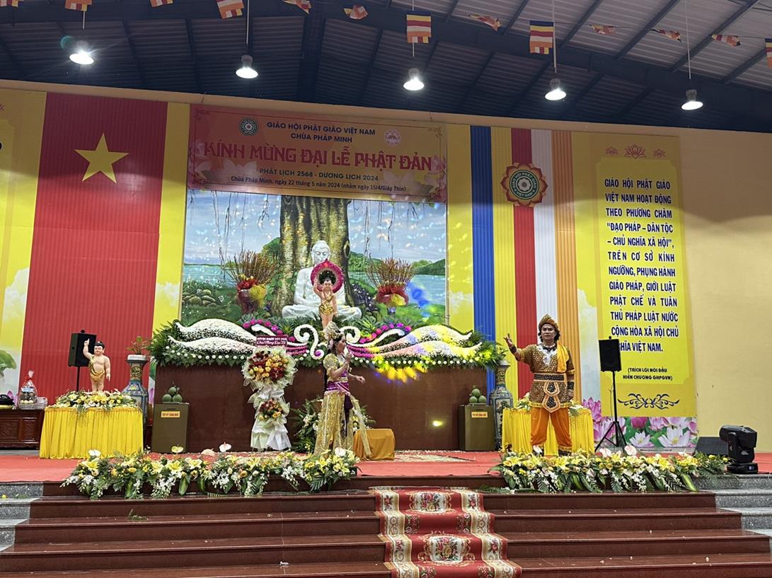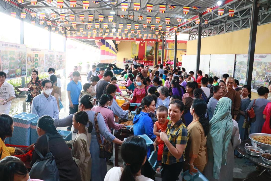 Ngoài ra, trong buổi lễ có tiệc buffet chay với nhiều món ăn đặc sắc do Ban Phụng sự chùa Pháp Minh chuẩn bị và chương trình văn nghệ cúng dường Đại lễ Phật đản từ  Đoàn văn nghệ Tình ca Bắc Sơn (tập đoàn An Nông), Đoàn cải lương Thanh Nga, Nghệ sĩ Nhân dân Thoại Miêu, Phật tử chùa Tân Phước và CLB Tuổi Trẻ Linh Nguyên biểu diễn.