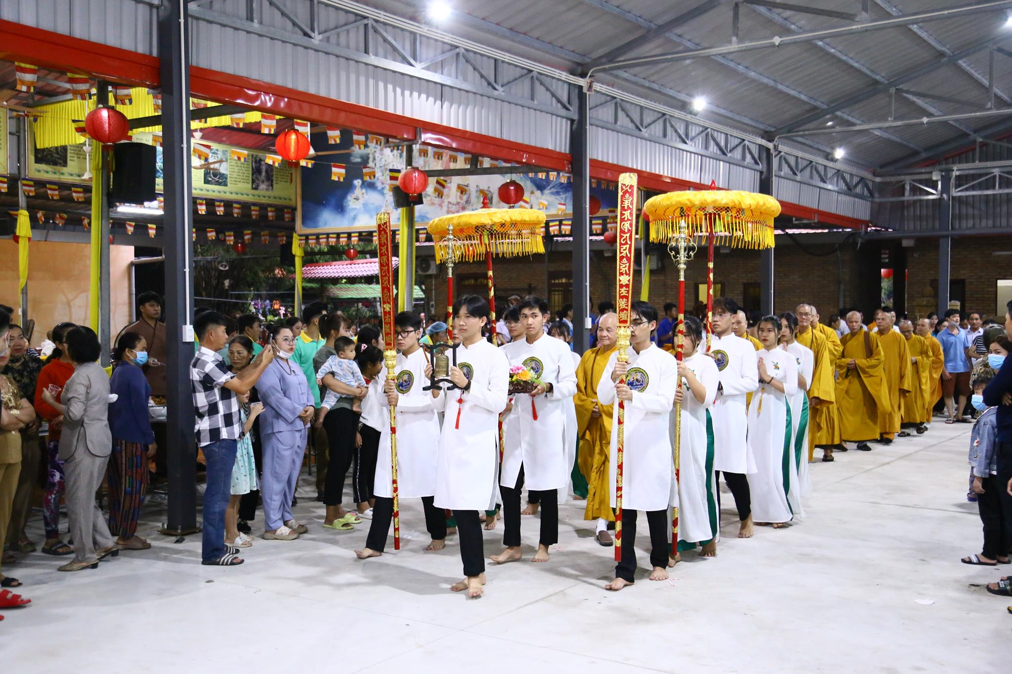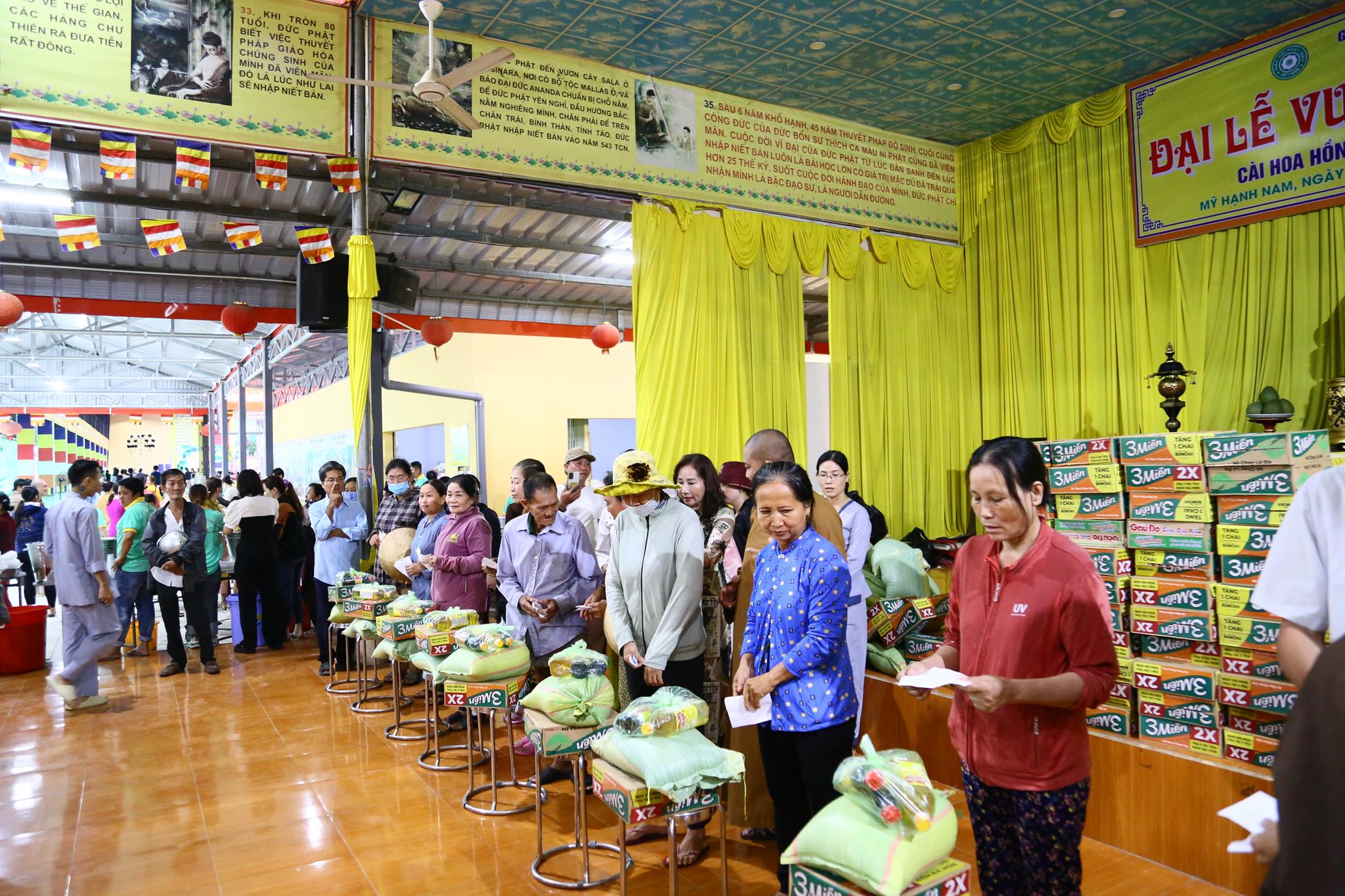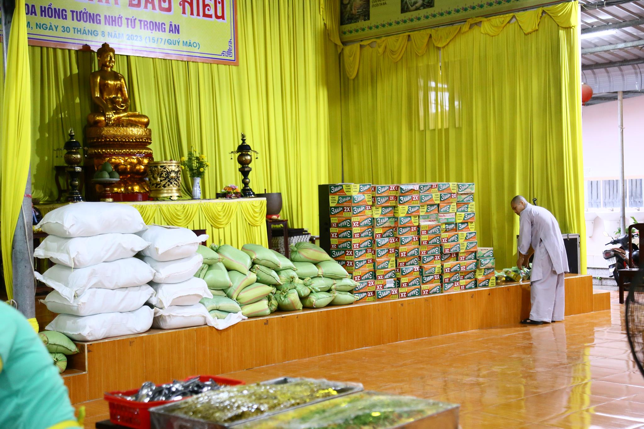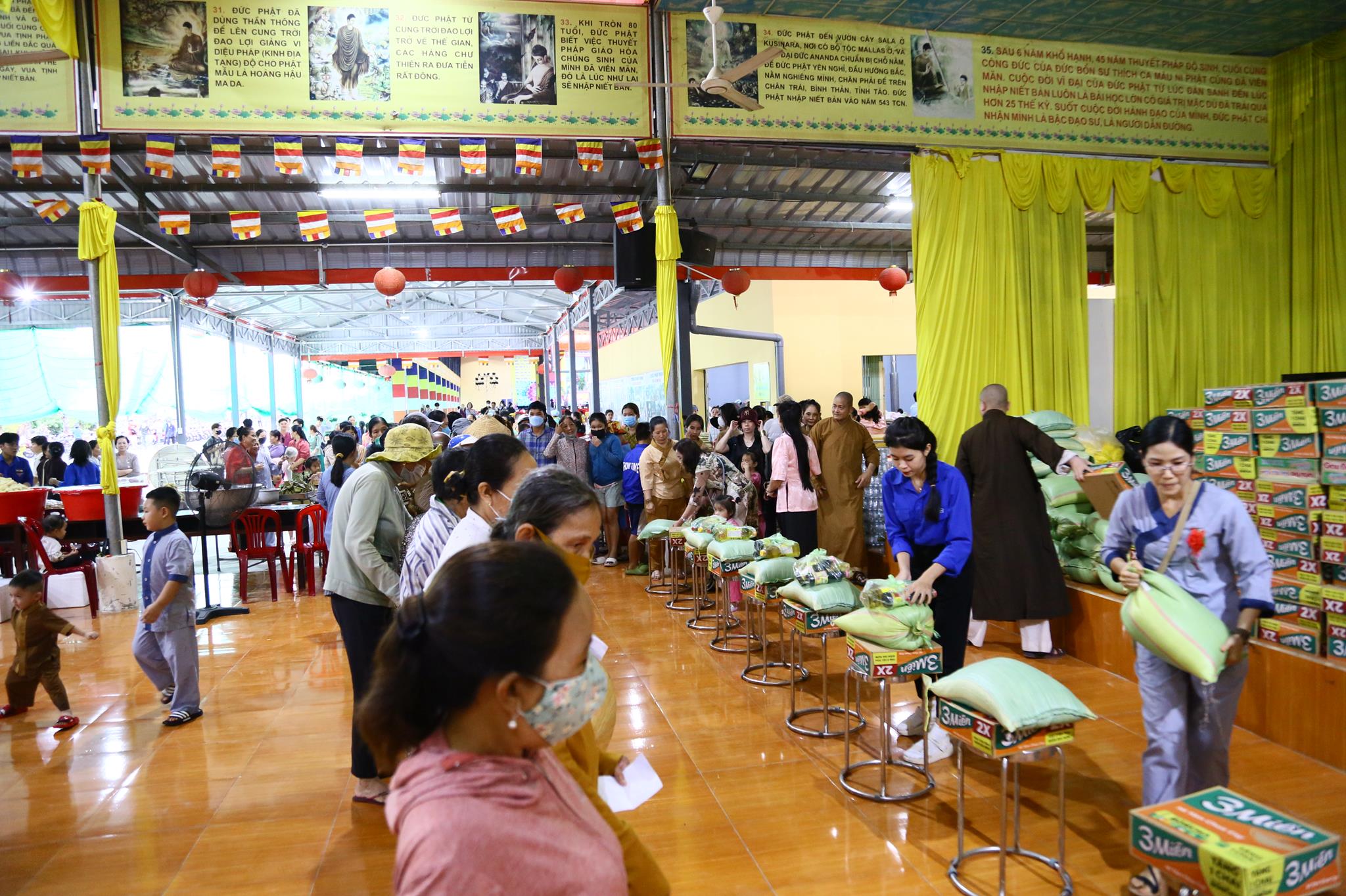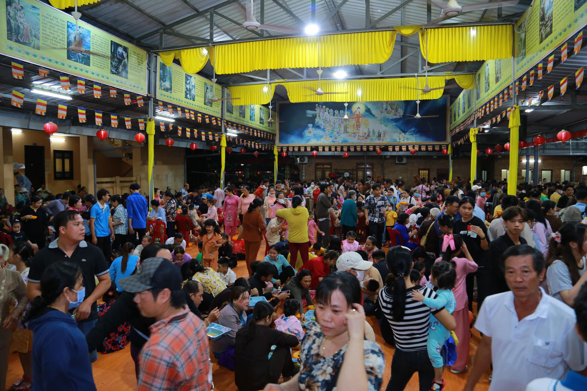 Nằm trong chương trình có phần tiệc buffet chay miễn phí phục vụ cho gần 4.000 người dân với gần 50 món ăn đa dạng, phong phú đảm bảo vệ sinh an toàn thực phẩm. Chùa Pháp Minh cũng vận động mạnh thường quân trao 100 phần quà cho các hộ nghèo, hộ có hoàn cảnh khó khăn trên địa bàn, mỗi phần quà trị giá 350.000 đồng.