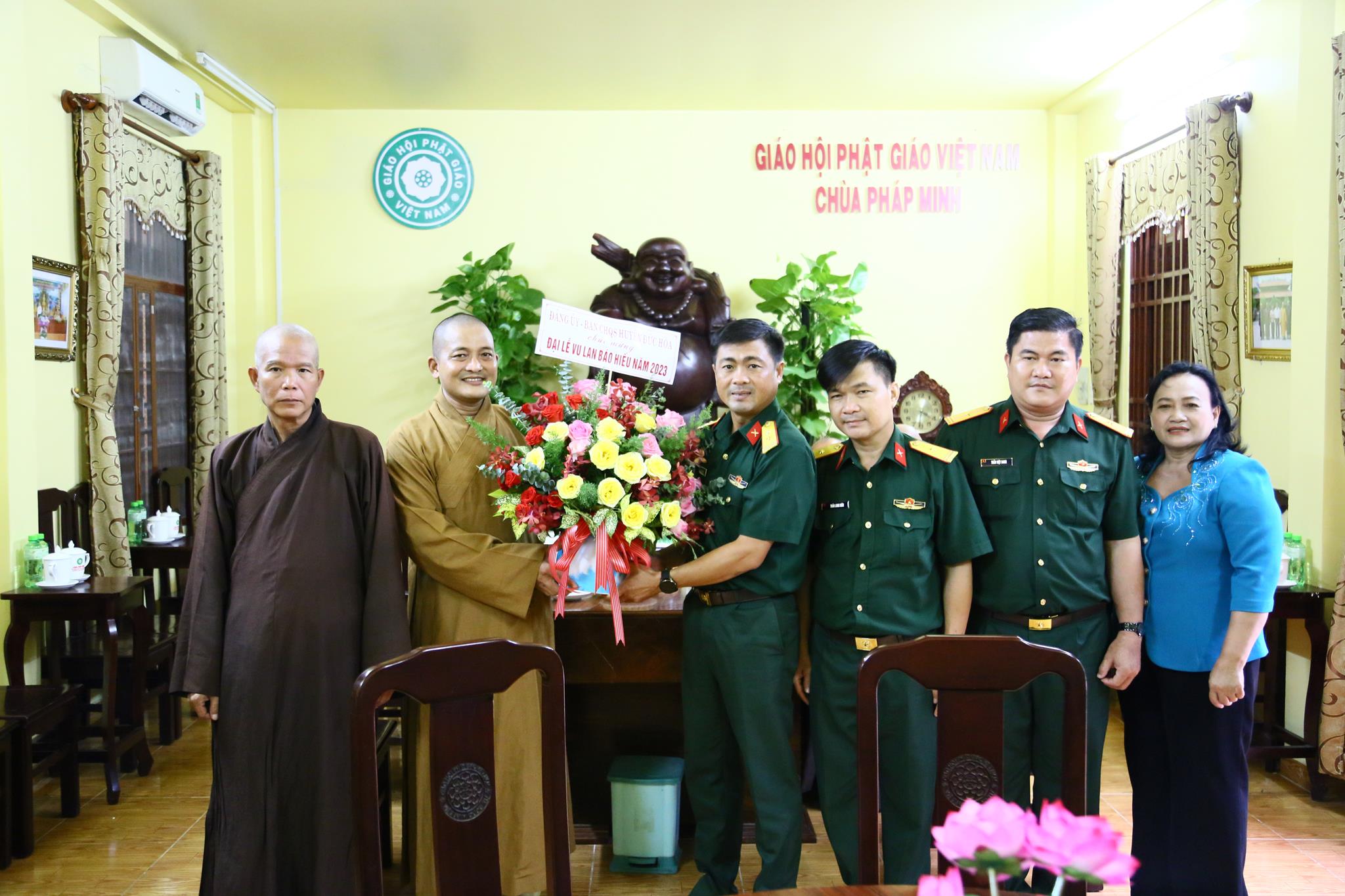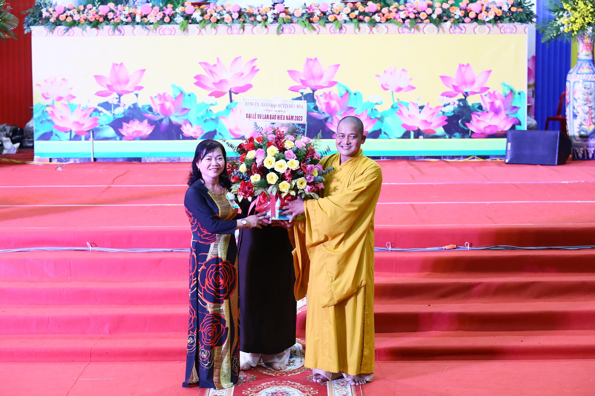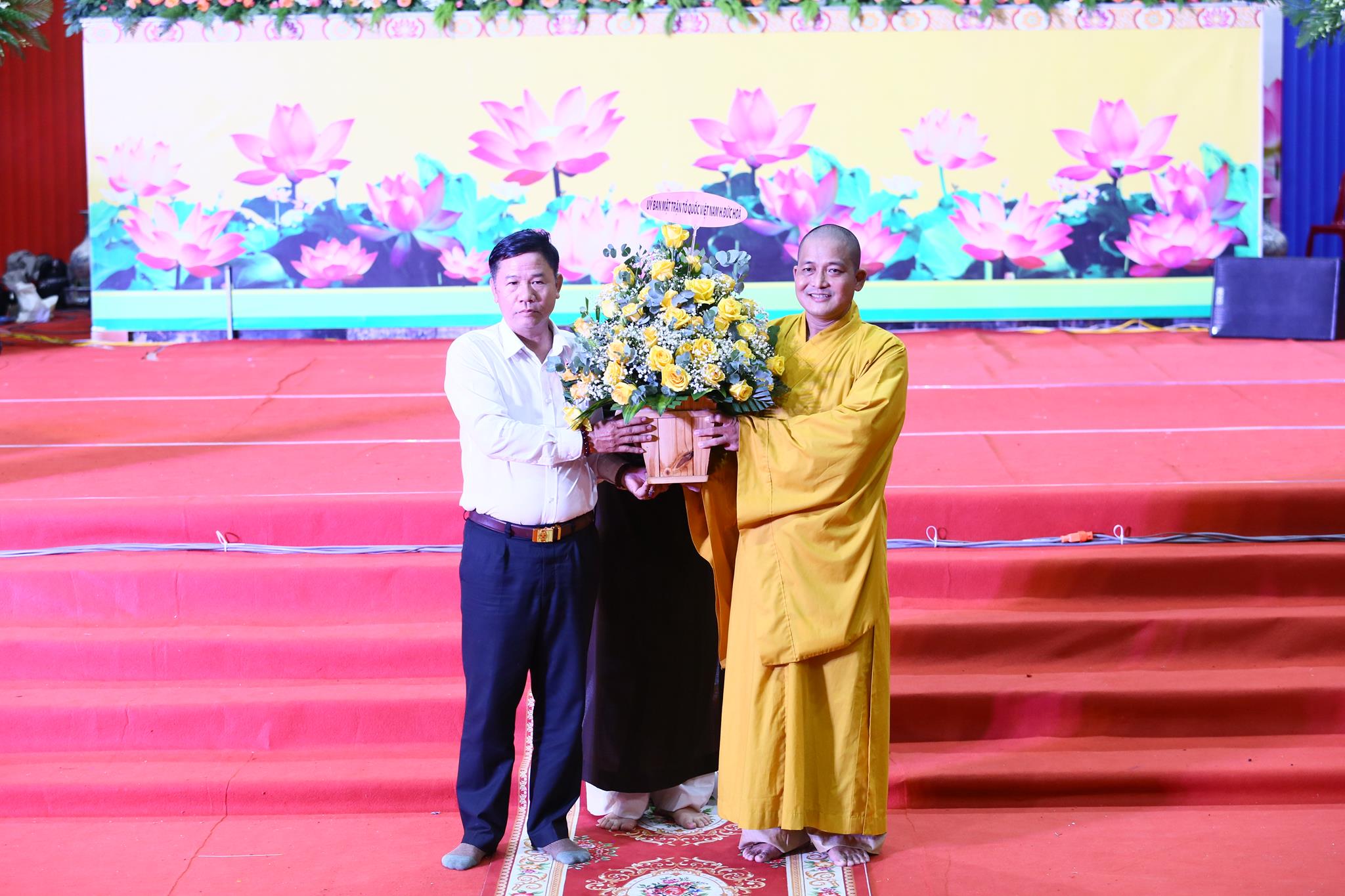 Quang lâm chứng minh và tham dự buổi lễ có: HT. Thích Minh Thiện – UV HĐTS, Phó ban Hoằng pháp TW, Trưởng ban Trị sự GHPGVN tỉnh Long An; TT. Thích Quảng Tâm – UV HĐTS, Phó ban Từ thiện Xã hội TW, Phó Trưởng ban Thường trực Ban Trị sự GHPGVN tỉnh Long An; TT. Thích Đức Hoàng – Phó BTS GHPGVN tỉnh Long An; ĐĐ. Thích Lệ Duyên – Phó ban kiêm Chánh Thư ký BTS GHPGVN tỉnh Long An; Chư tôn đức Ban Thường trực BTS GHPGVN tỉnh Long An, huyện Đức Hòa; Chư tôn đức Tăng ni đồng về tham dự.