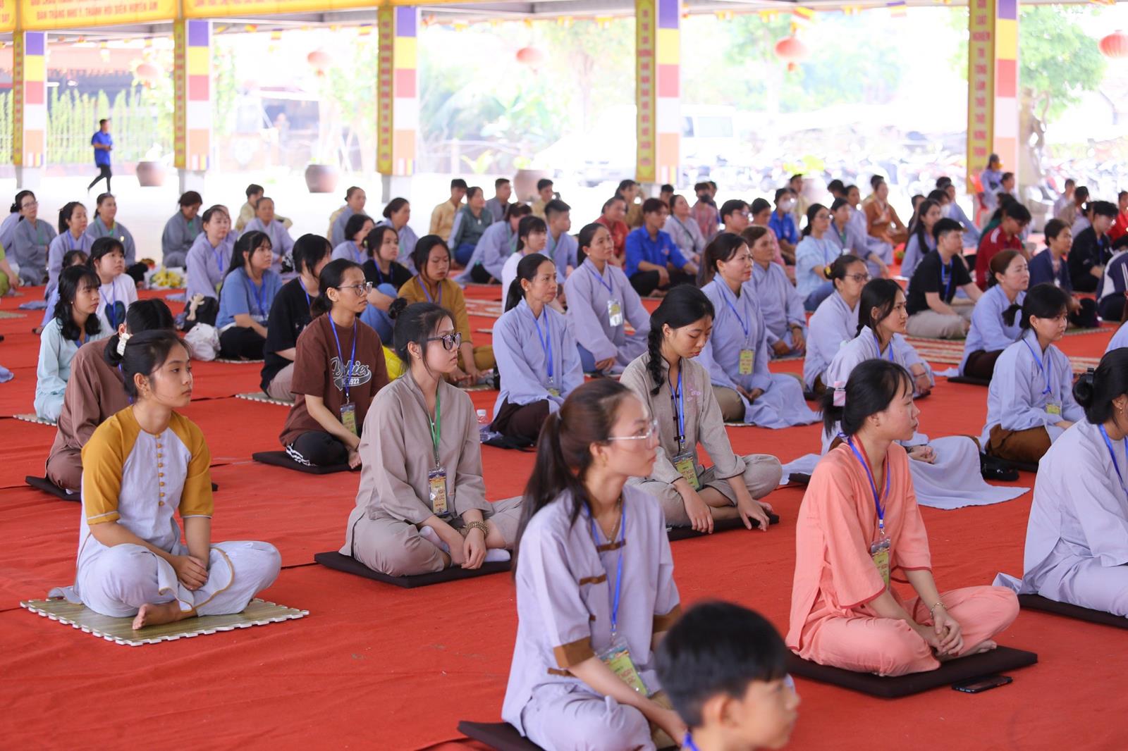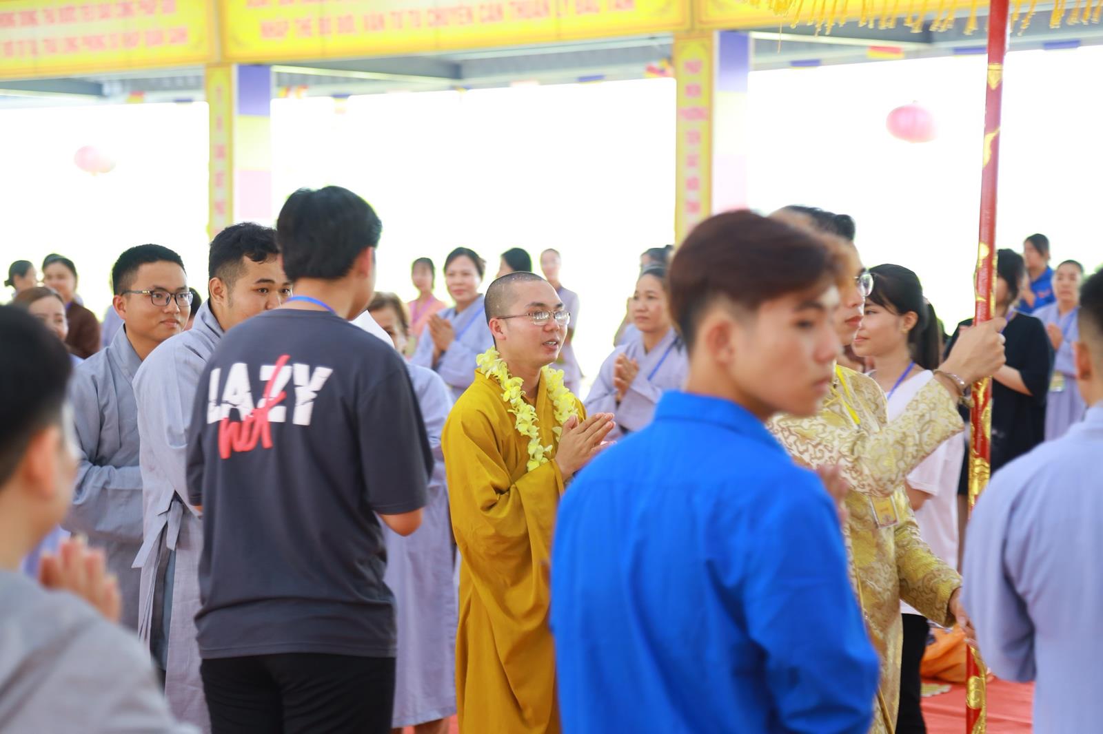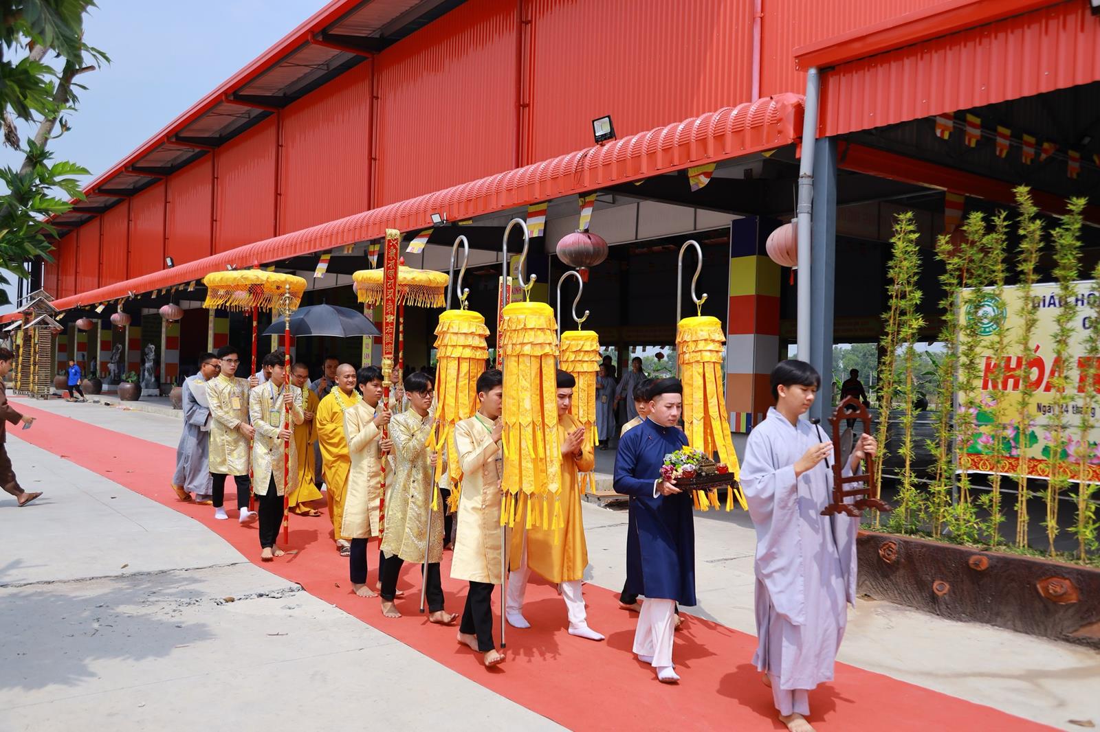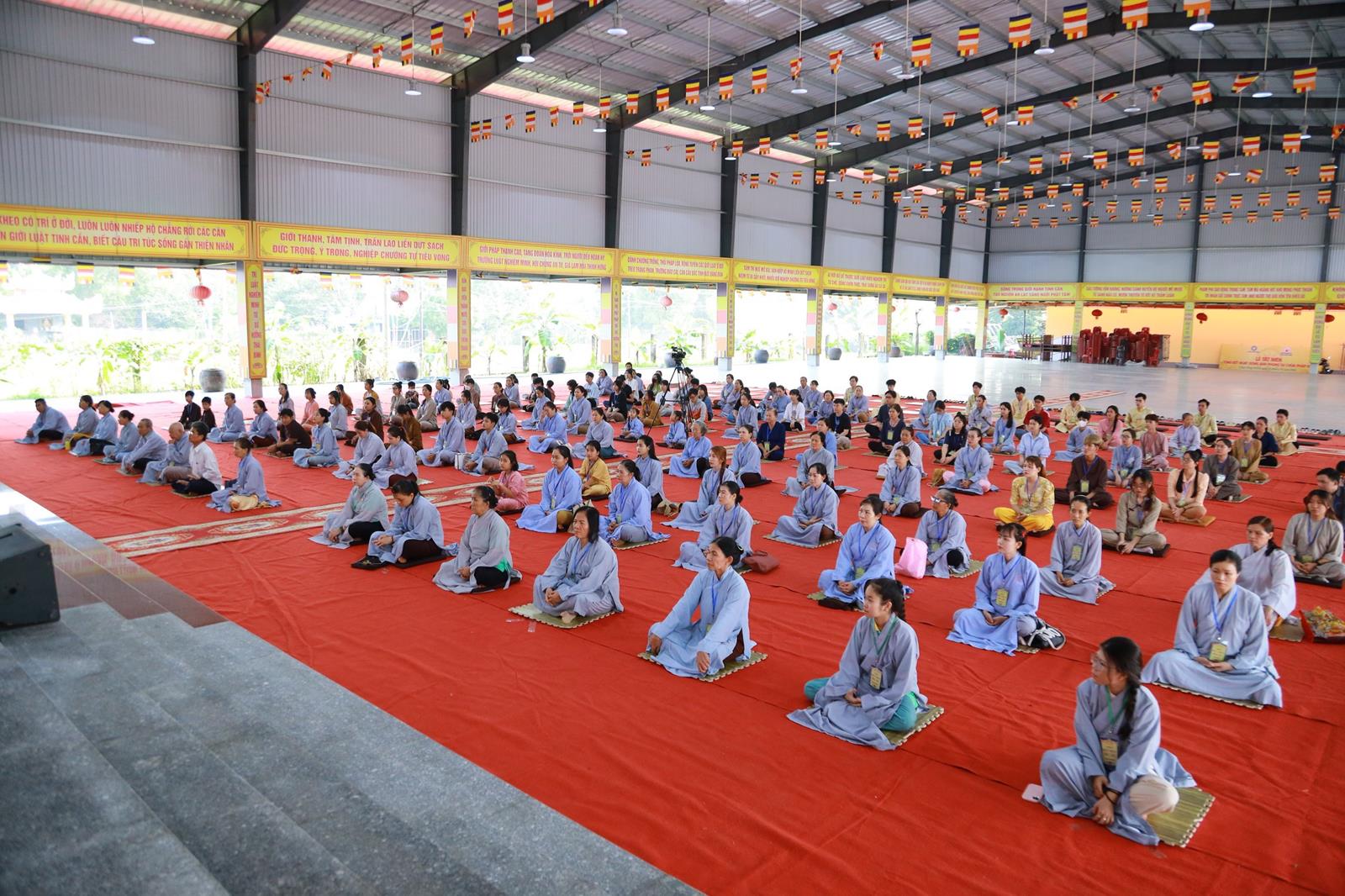 Sau khi cung thỉnh Đại đức giảng sư Thích Khải Tuấn hồi quy phương trượng, các khóa sinh tiếp tục thực hiện nghi lễ cúng ngọ. Sau đó khóa sinh vân tập về quá đường để thọ trai. Đại đức Thích Lệ Duyên – Phó Trưởng Ban kiêm Chánh Thư ký BTS GHPGVN tỉnh Long An, Trưởng BTS GHPGVN huyện Đức Hòa, Trưởng BTC khóa tu đã trực tiếp hướng dẫn các khóa sinh về các thời khóa tu tập, tụng niệm, nghi thức quá đường, kinh hành niệm Phật,…