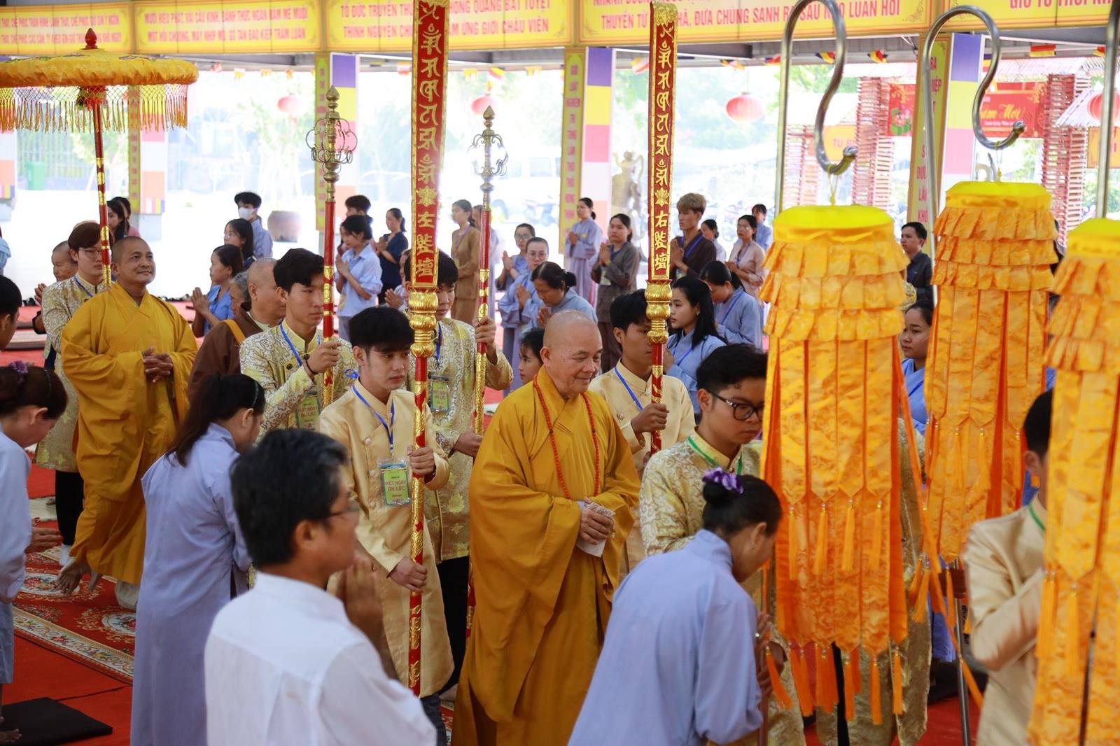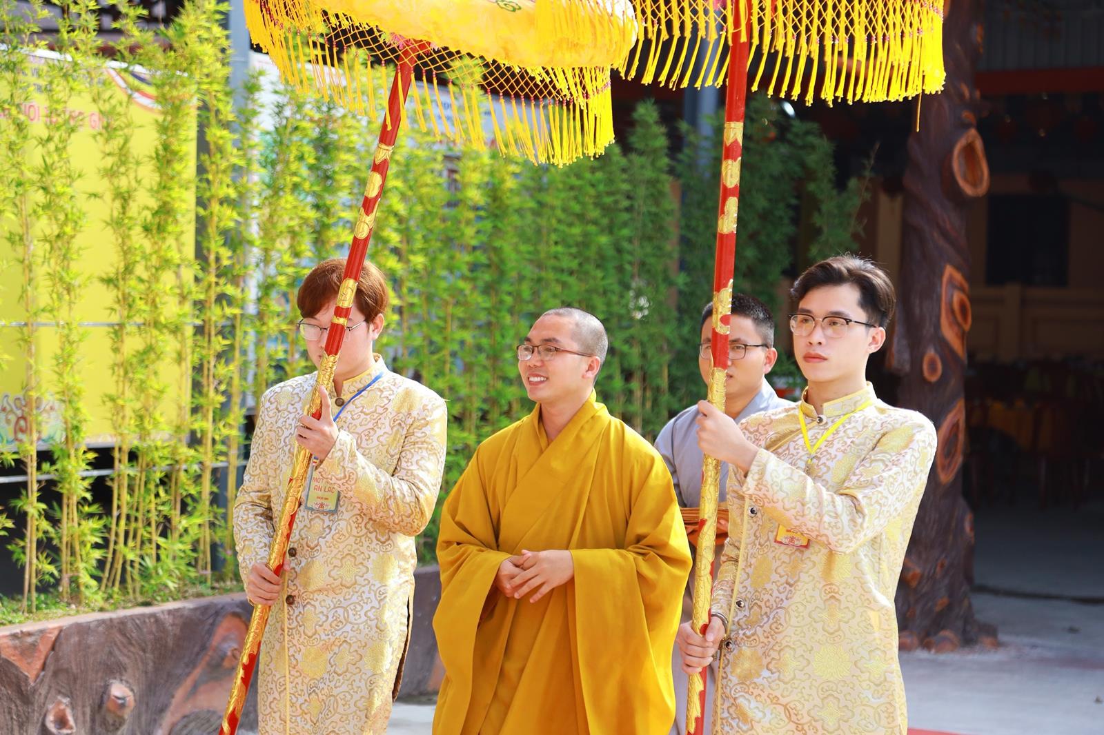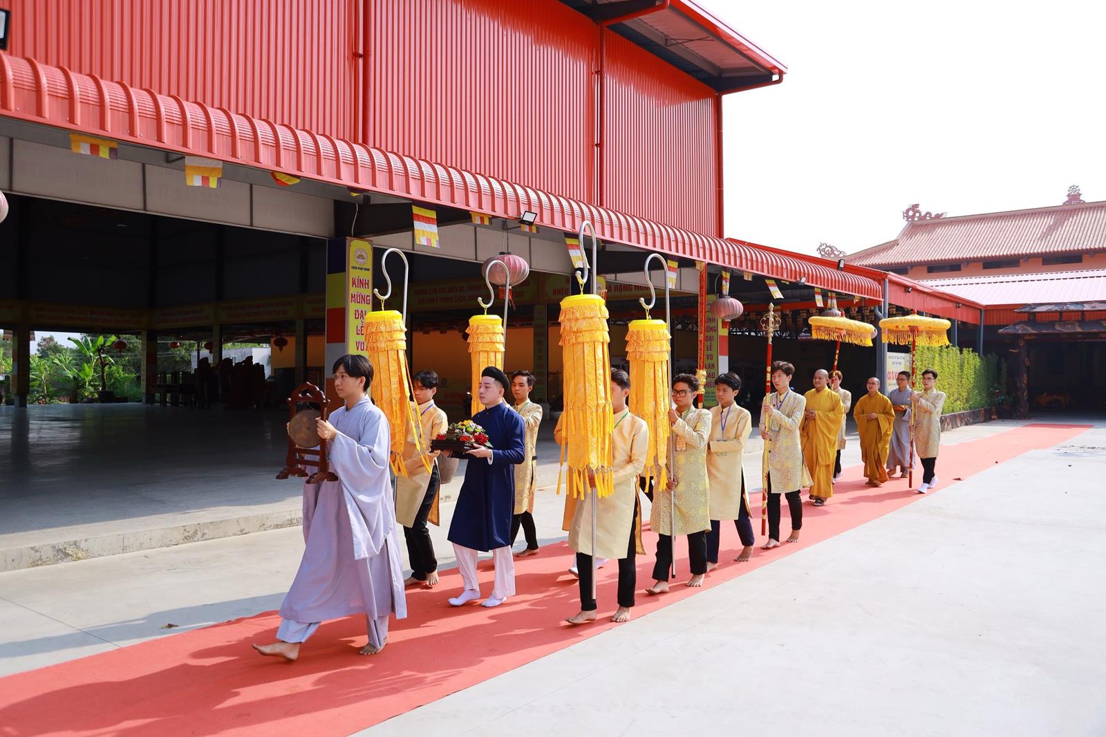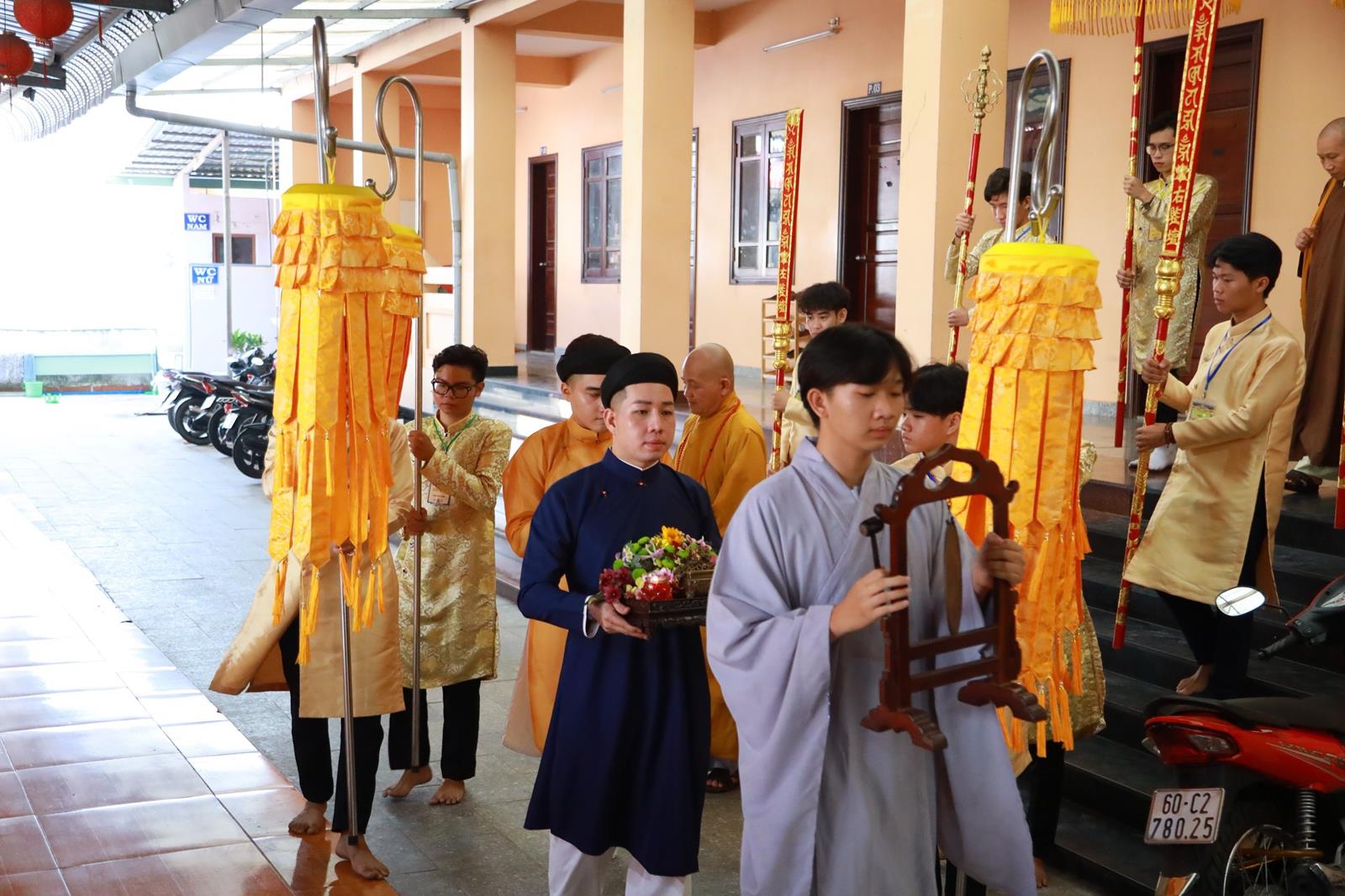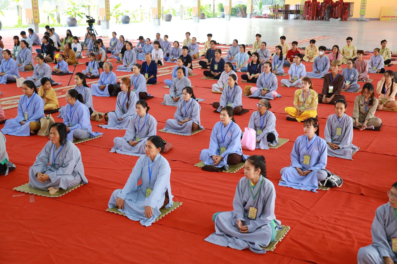 Sau khi cung thỉnh Đại đức giảng sư Thích Khải Tuấn hồi quy phương trượng, các khóa sinh tiếp tục thực hiện nghi lễ cúng ngọ. Sau đó khóa sinh vân tập về quá đường để thọ trai. Đại đức Thích Lệ Duyên – Phó Trưởng Ban kiêm Chánh Thư ký BTS GHPGVN tỉnh Long An, Trưởng BTS GHPGVN huyện Đức Hòa, Trưởng BTC khóa tu đã trực tiếp hướng dẫn các khóa sinh về các thời khóa tu tập, tụng niệm, nghi thức quá đường, kinh hành niệm Phật,…