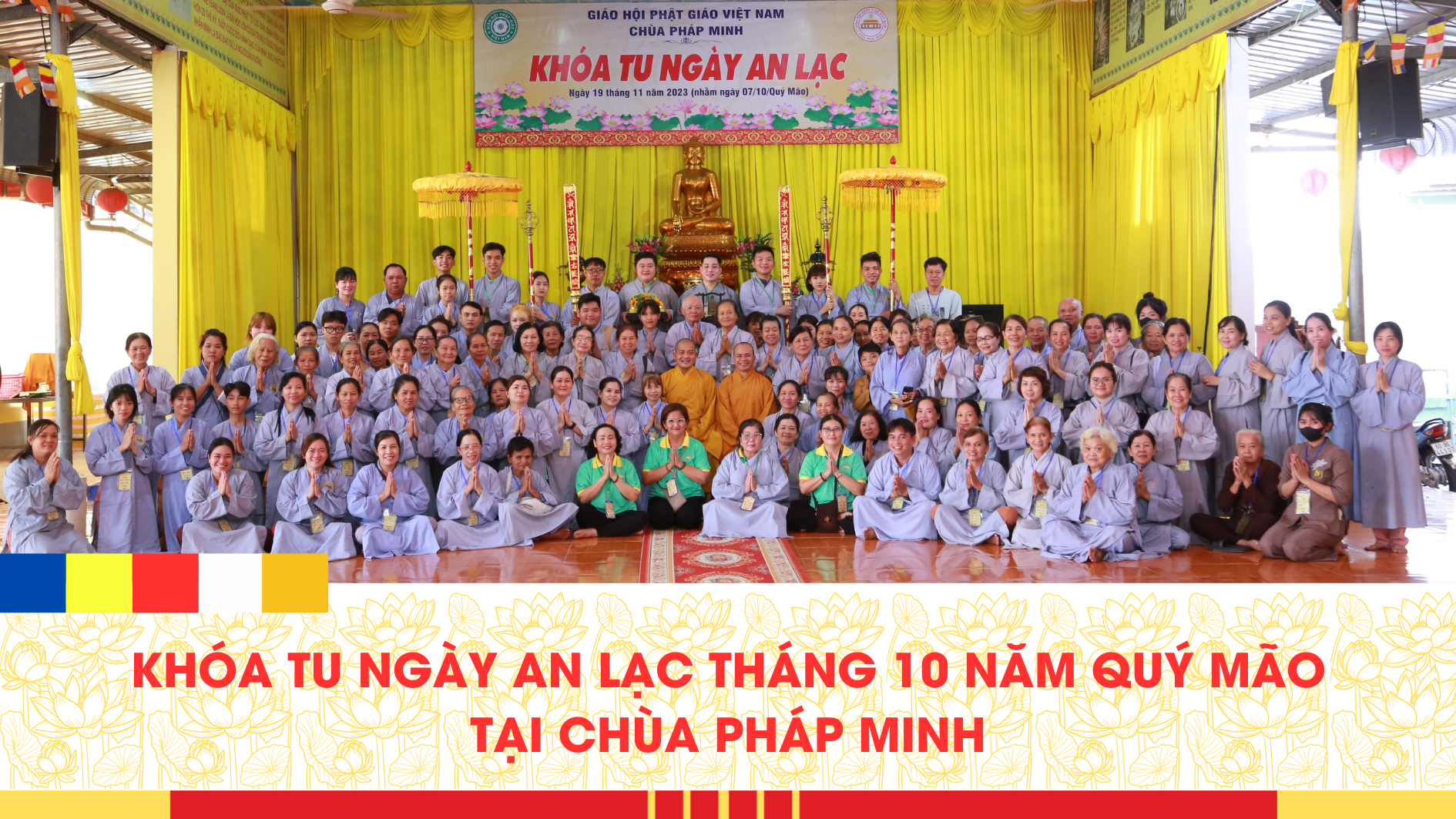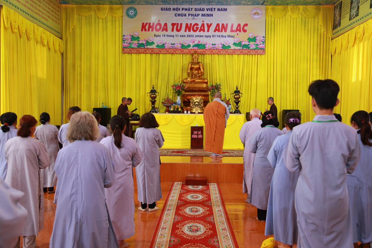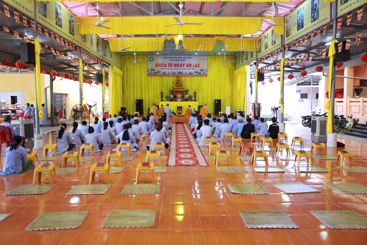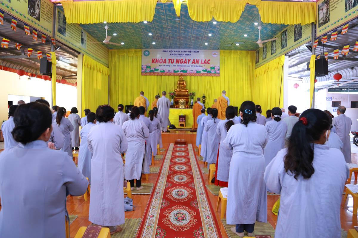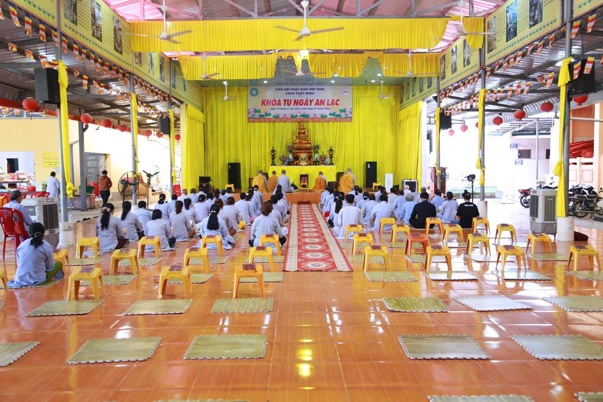 Sáng ngày 19/11/2023 (nhằm ngày 07/10/Quý Mão), tại chùa Pháp Minh (xã Mỹ Hạnh Nam, huyện Đức Hòa, tỉnh Long An) đã diễn ra khóa tu Ngày an lạc cho hơn 120 hành giả.