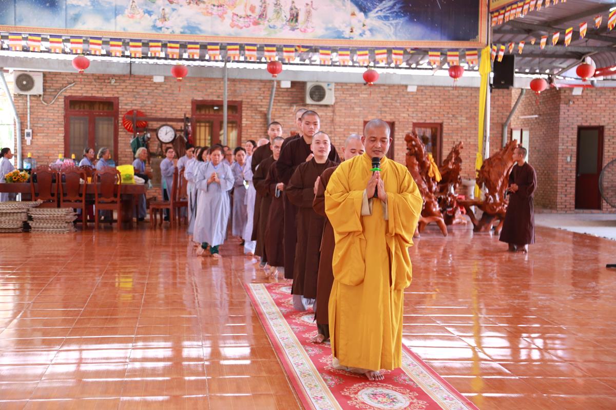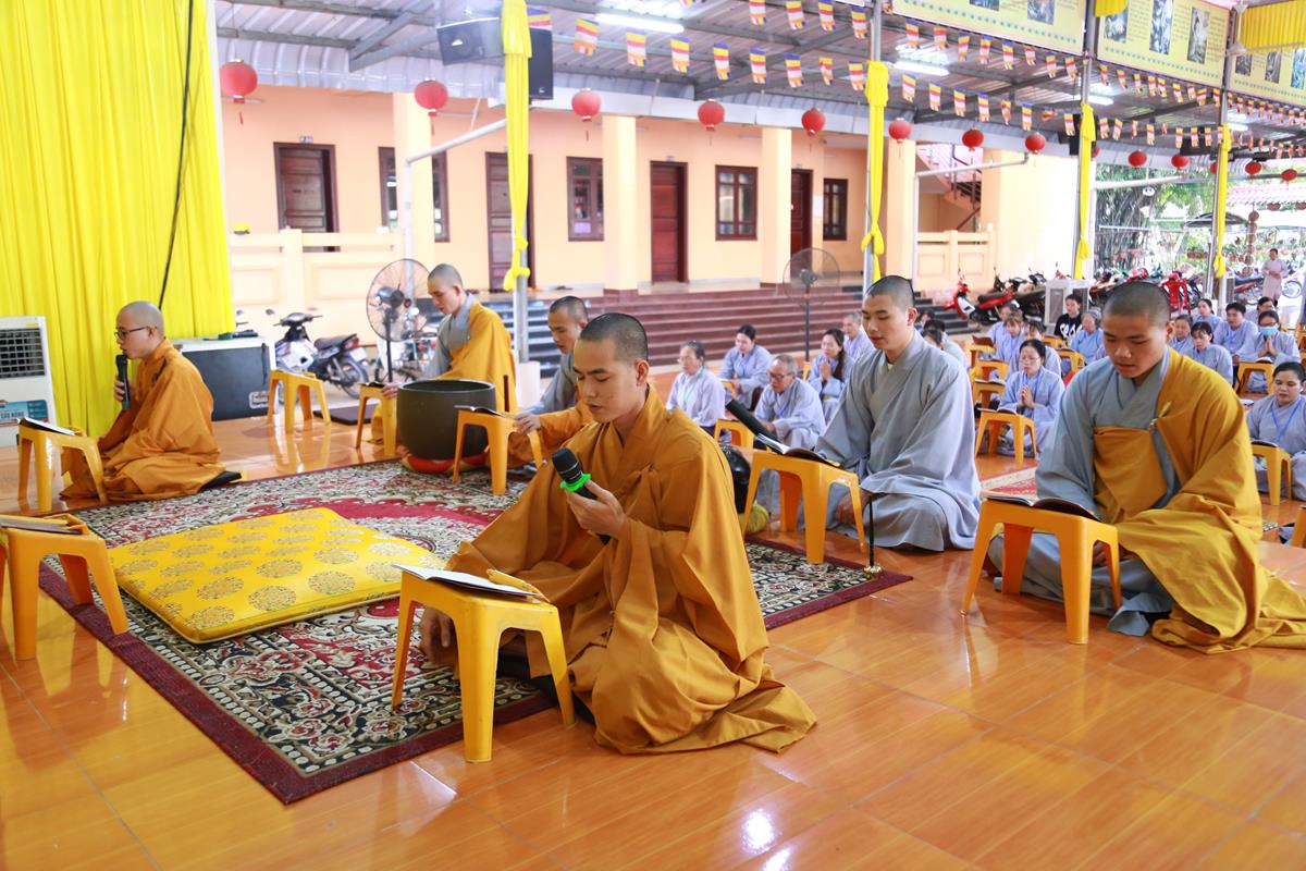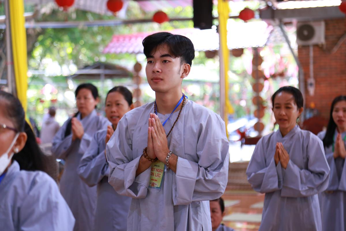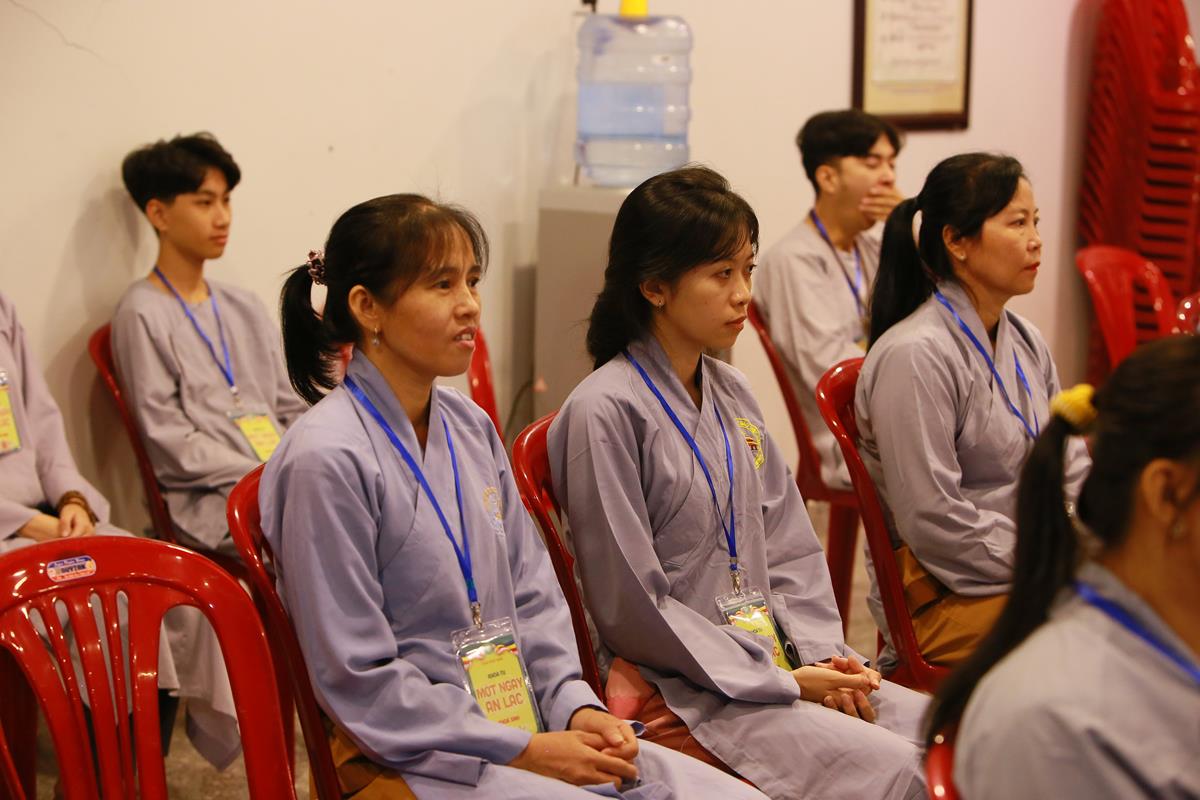 Mở đầu Khóa tu là Nghi thức Quy Y Tam Bảo. Khóa tu ngày an lạc do Đại đức Thích Lệ Duyên, Phó Trưởng ban kiêm Chánh Thư ký Ban Trị sự GHPGVN tỉnh Long An, Trưởng ban Trị sự GHPGVN huyện Đức Hòa, Trưởng ban Tổ chức thực hiện nghi thức Quy Y Tam Bảo, hướng dẫn các thời khóa tu tập, trì tụng kinh Dược Sư, lễ Phật, cúng ngọ, nghi thức quá đường, kinh hành niệm Phật…