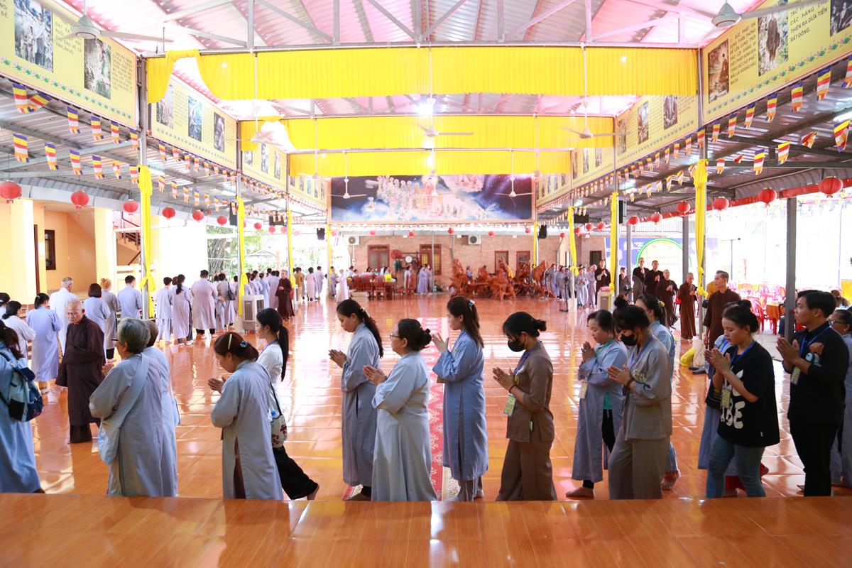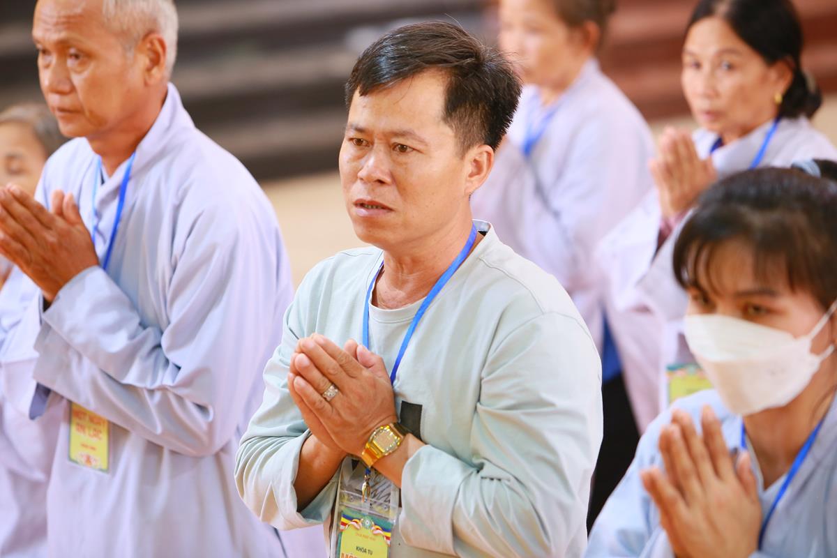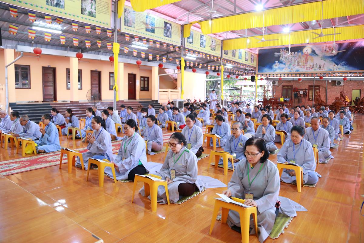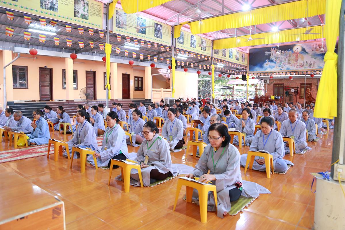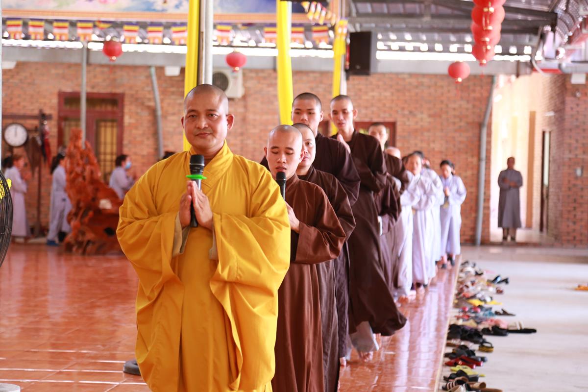 Mở đầu Khóa tu là Nghi thức Quy Y Tam Bảo. Khóa tu ngày an lạc do Đại đức Thích Lệ Duyên, Phó Trưởng ban kiêm Chánh Thư ký Ban Trị sự GHPGVN tỉnh Long An, Trưởng ban Trị sự GHPGVN huyện Đức Hòa, Trưởng ban Tổ chức thực hiện nghi thức Quy Y Tam Bảo, hướng dẫn các thời khóa tu tập, trì tụng kinh Dược Sư, lễ Phật, cúng ngọ, nghi thức quá đường, kinh hành niệm Phật…