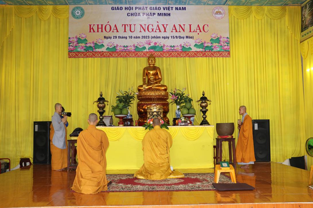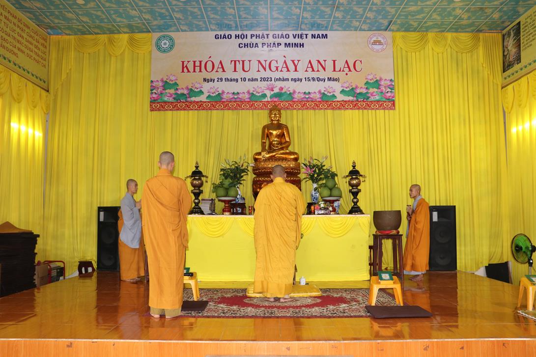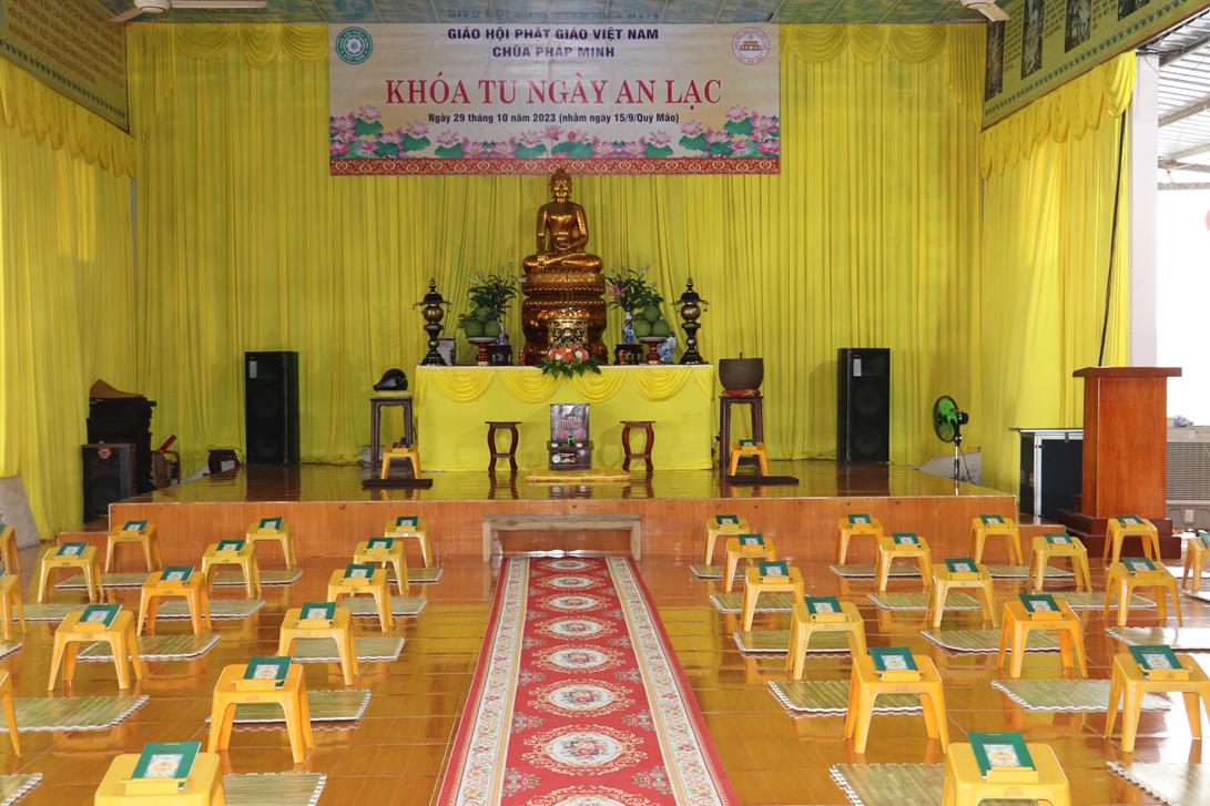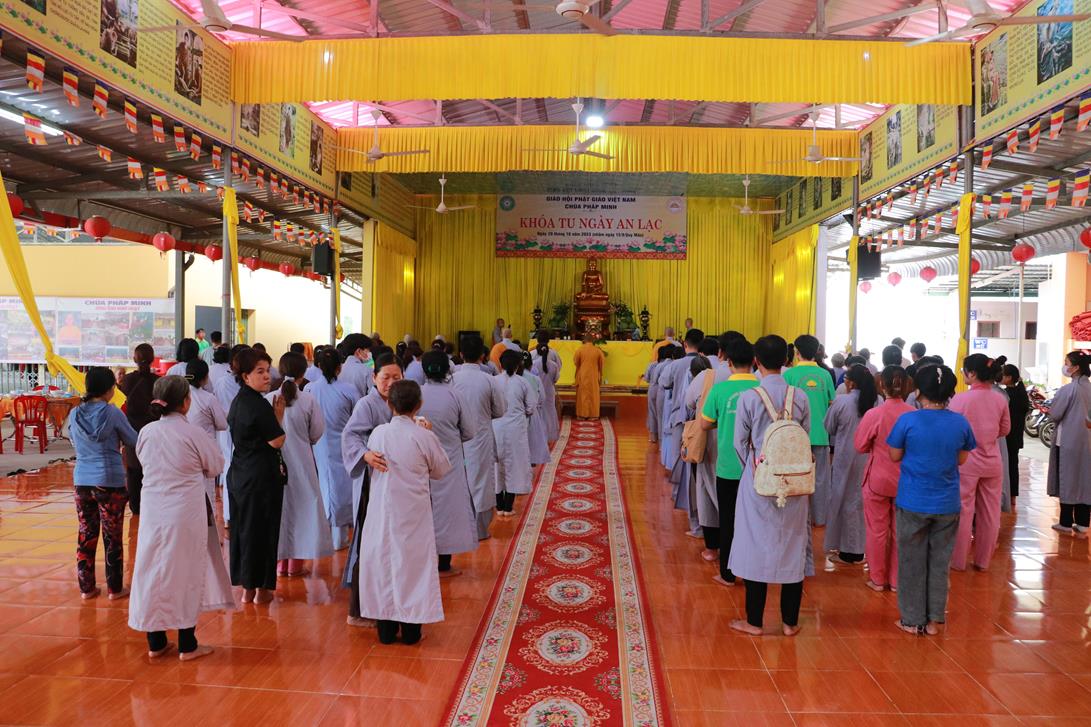 Sáng ngày 29 tháng 10 năm 2023 (nhằm ngày 15/9/Quý Mão), chùa Pháp Minh, xã Mỹ Hạnh Nam, huyện Đức Hòa tổ chức khóa tu Ngày an lạc cho hơn 100 Phật tử về tu tập.
