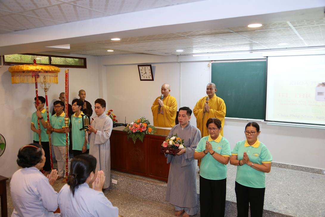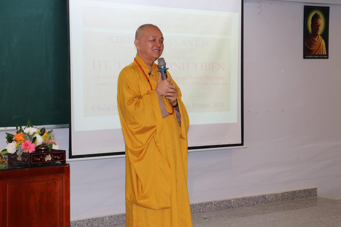 Khóa tu ngày an lạc vinh dự được cung nghinh Hòa thượng Thích Minh Thiện, Ủy viên Hội đồng Trị sự, Phó Trưởng ban Hoằng pháp TƯ, Trưởng ban Trị sự GHPGVN tỉnh Long An, Hiệu Trưởng Trường Trung cấp Phật học Long An quang lâm thuyết giảng, chia sẻ pháp thoại và giao lưu đến với quý Phật tử tham dự khóa tu. Hòa thượng nhấn mạnh đến vai trò của người Phật tử; đặc tính bình đẳng, từ bi, vô thường của giáo pháp Đức Phật. Đặc biệt, Hòa thượng khuyến khích quý Phật tử hãy ứng dụng lời dạy của Đức Phật vào trong cuộc sống để chuyển hóa những khổ đau, đem lại hạnh phúc thiết thực ngay trong cuộc sống hiện tại.
