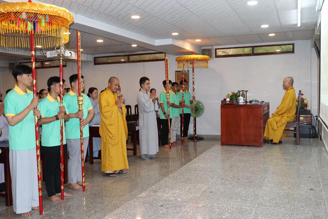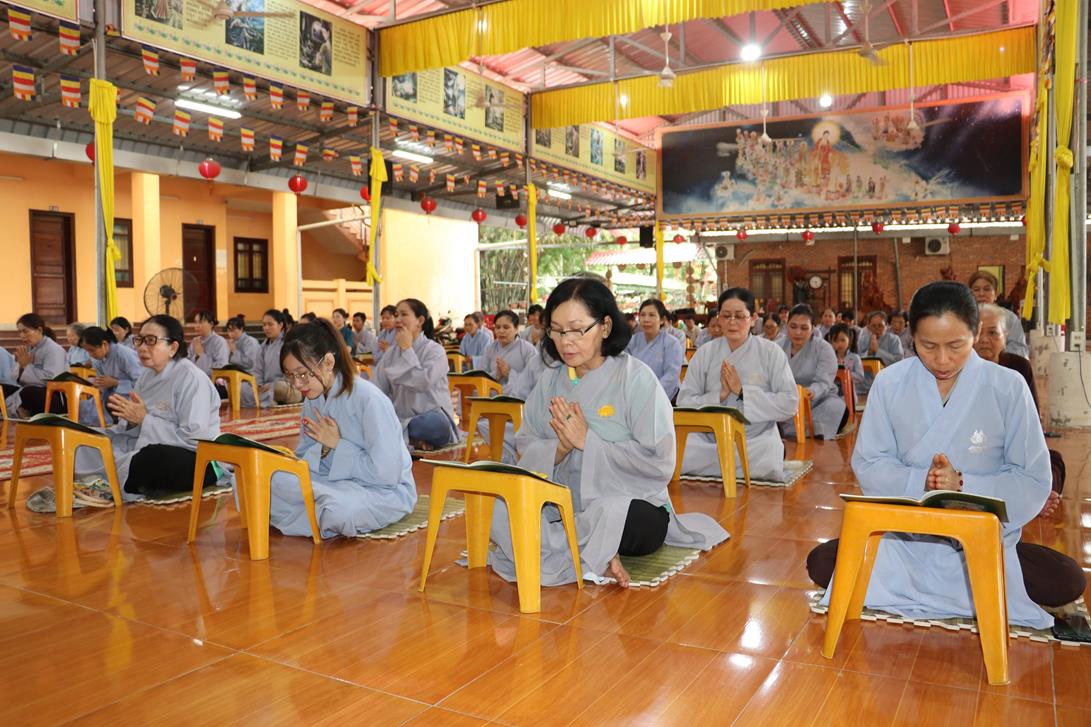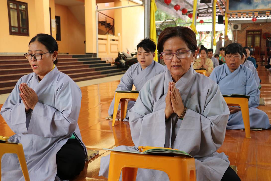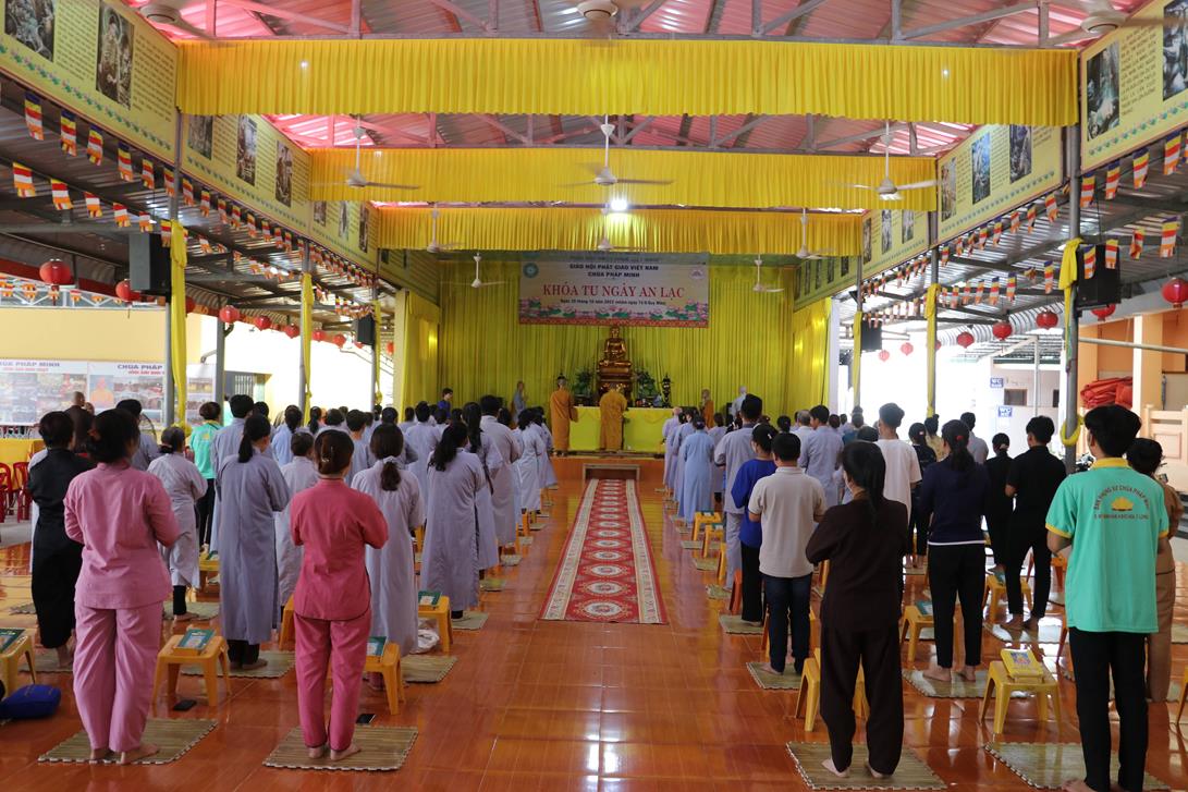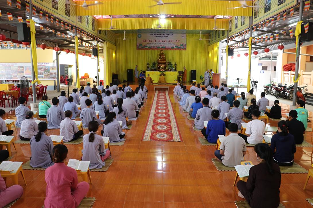 Khóa tu ngày an lạc do Đại đức Thích Lệ Duyên, Phó Trưởng ban kiêm Chánh Thư ký Ban Trị sự GHPGVN tỉnh Long An, Trưởng ban Trị sự GHPGVN huyện Đức Hòa, Trưởng ban Tổ chức hướng dẫn các thời khóa tu tập, trì tụng kinh Phổ môn, lễ Phật, cúng ngọ, nghi thức quá đường, kinh hành niệm Phật…
