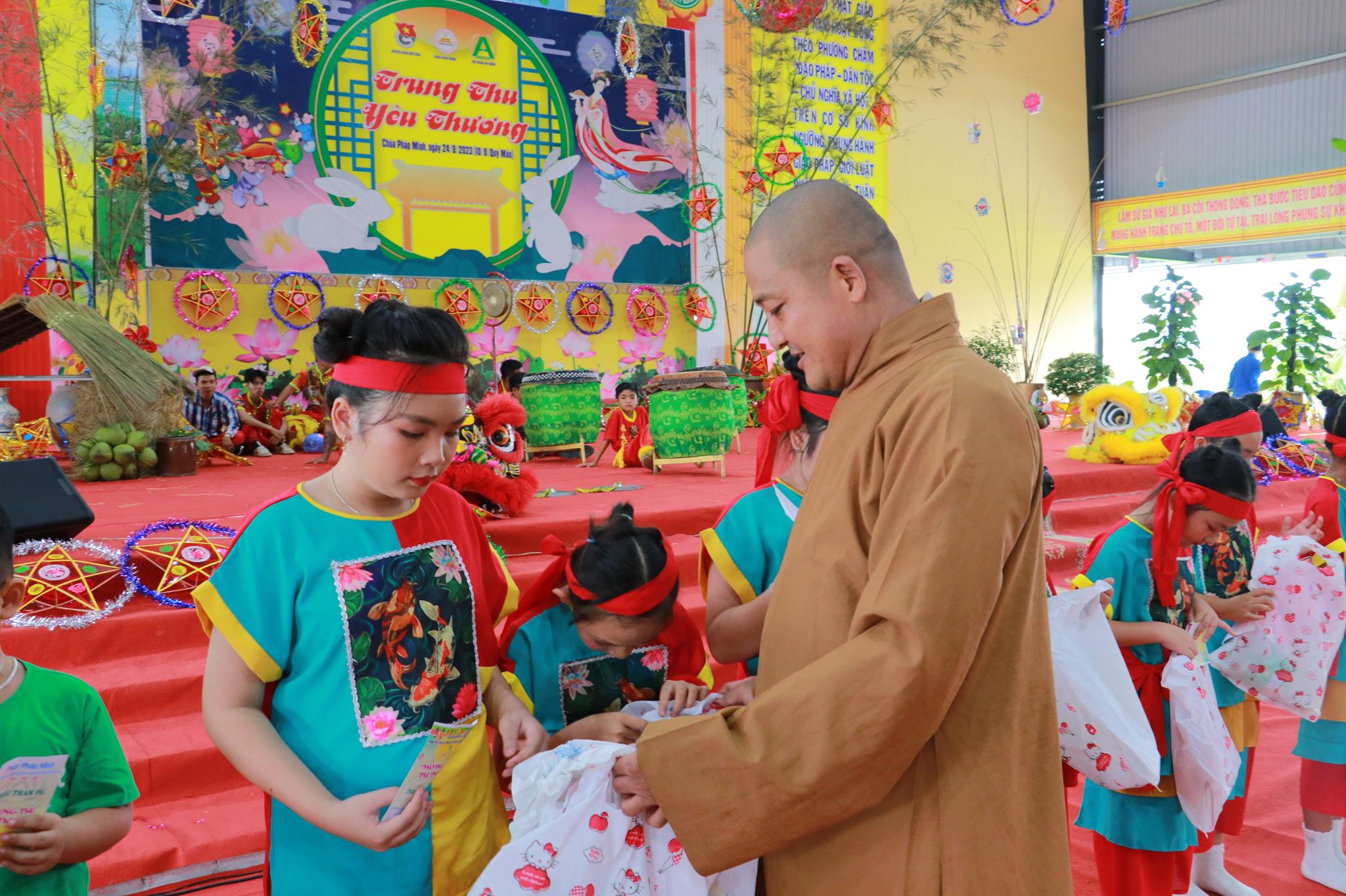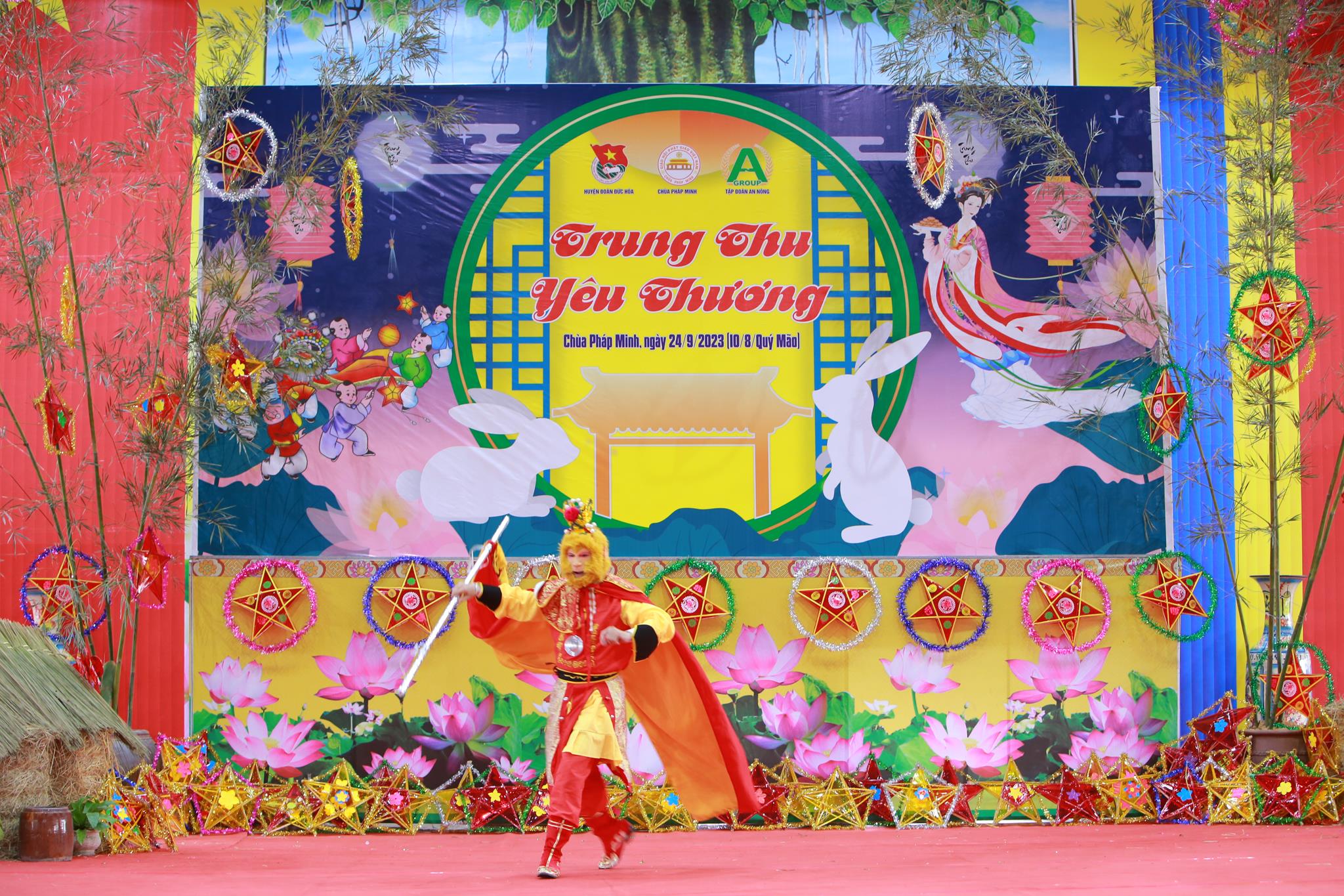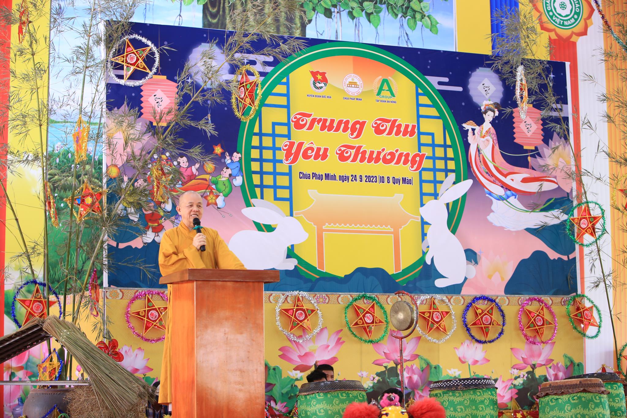 Với mục đích mang đến cho tất cả các em thiếu nhi huyện nhà có thể hòa chung với không khí vui tươi phấn khởi của thiếu nhi trong cả nước với một ngày hội nhiều niềm vui, đầm ấm và hạnh phúc, góp phần tạo sân chơi bổ ích, an toàn lành mạnh vui tươi phấn khởi, tạo điều kiện cho các em gặp gỡ, giao lưu nhân ngày tết Trung thu, Chùa Pháp Minh phối hợp huyện Đoàn Đức Hòa, tập đoàn An Nông tổ chức Chương trình “Trung Thu Yêu Thương” cho 1000 trẻ em vào ngày 24 tháng 9 năm 2023.