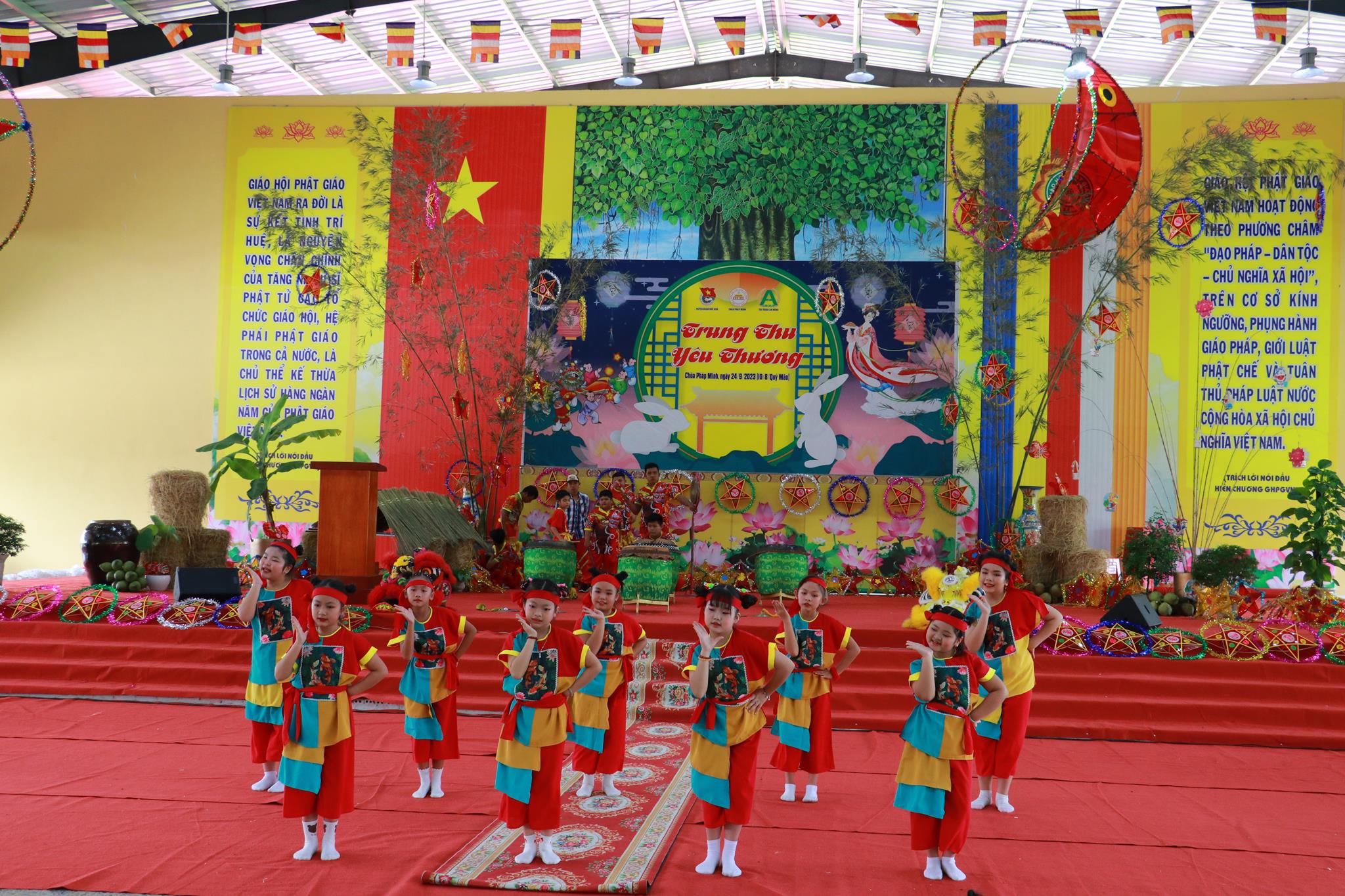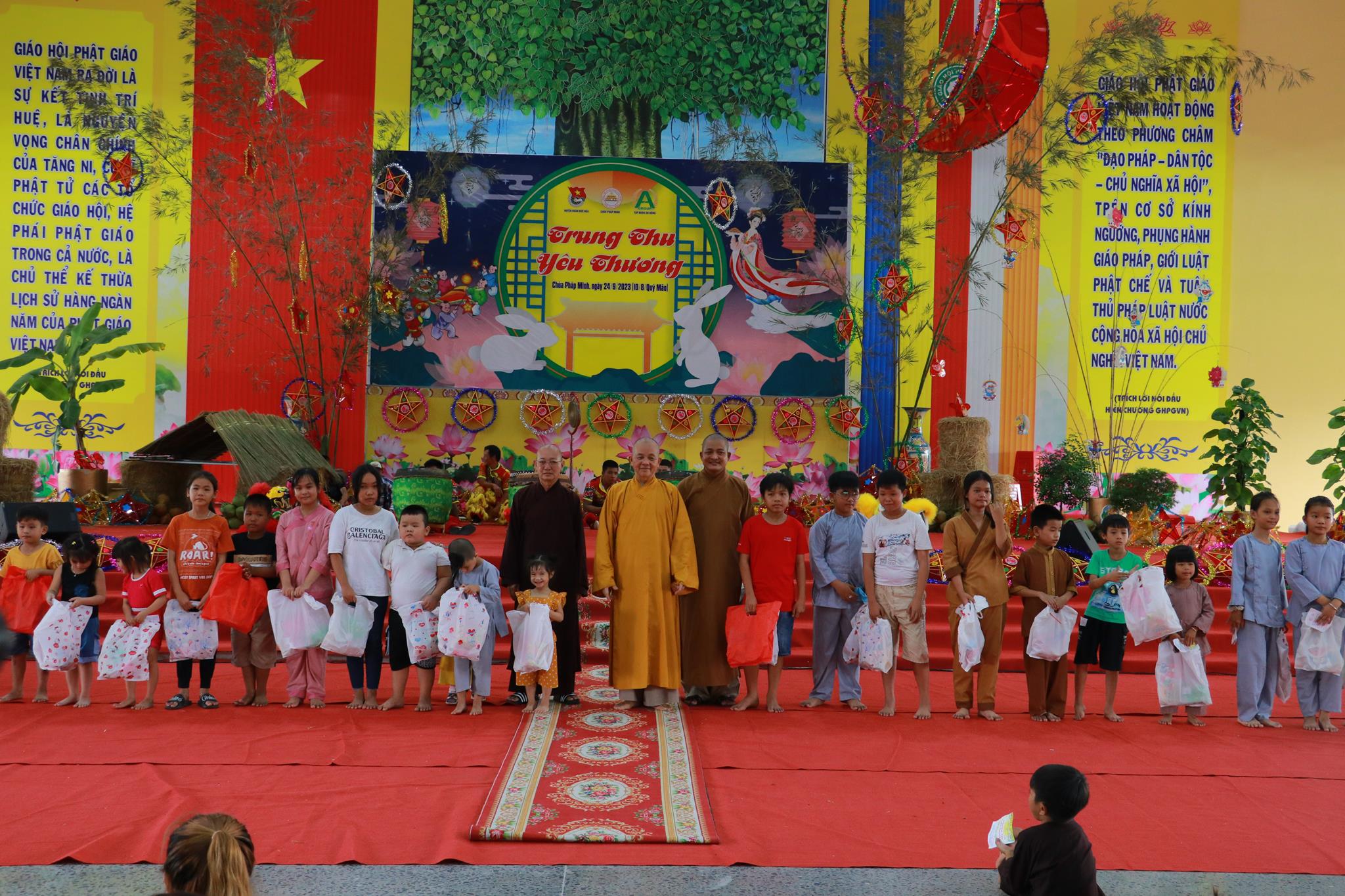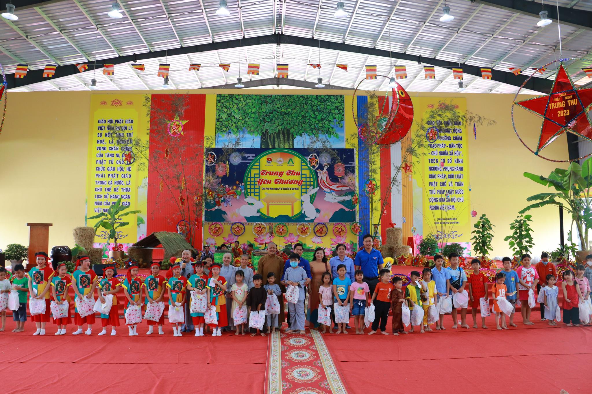 Với mục đích mang đến cho tất cả các em thiếu nhi huyện nhà có thể hòa chung với không khí vui tươi phấn khởi của thiếu nhi trong cả nước với một ngày hội nhiều niềm vui, đầm ấm và hạnh phúc, góp phần tạo sân chơi bổ ích, an toàn lành mạnh vui tươi phấn khởi, tạo điều kiện cho các em gặp gỡ, giao lưu nhân ngày tết Trung thu, Chùa Pháp Minh phối hợp huyện Đoàn Đức Hòa, tập đoàn An Nông tổ chức Chương trình “Trung Thu Yêu Thương” cho 1000 trẻ em vào ngày 24 tháng 9 năm 2023.