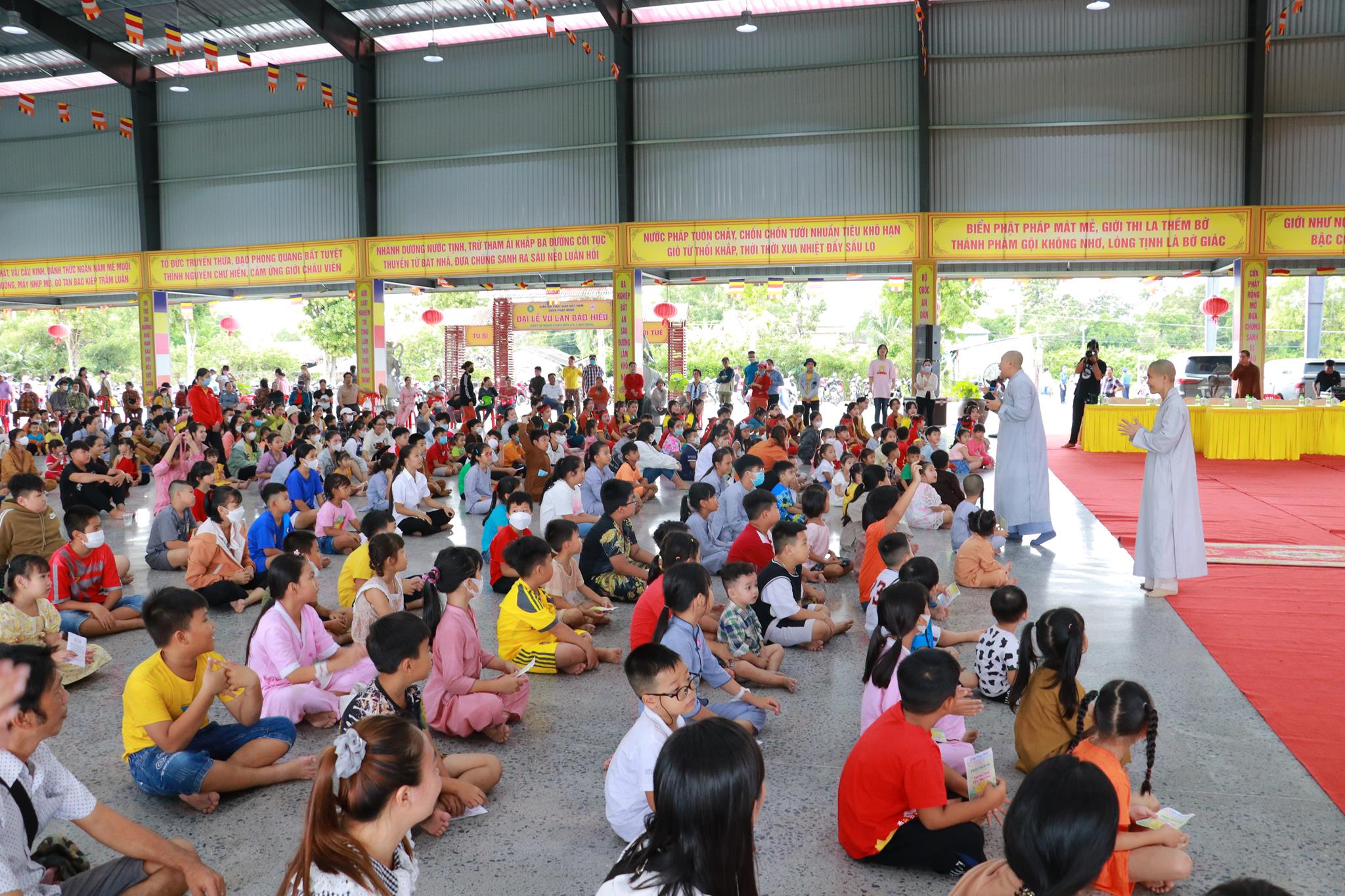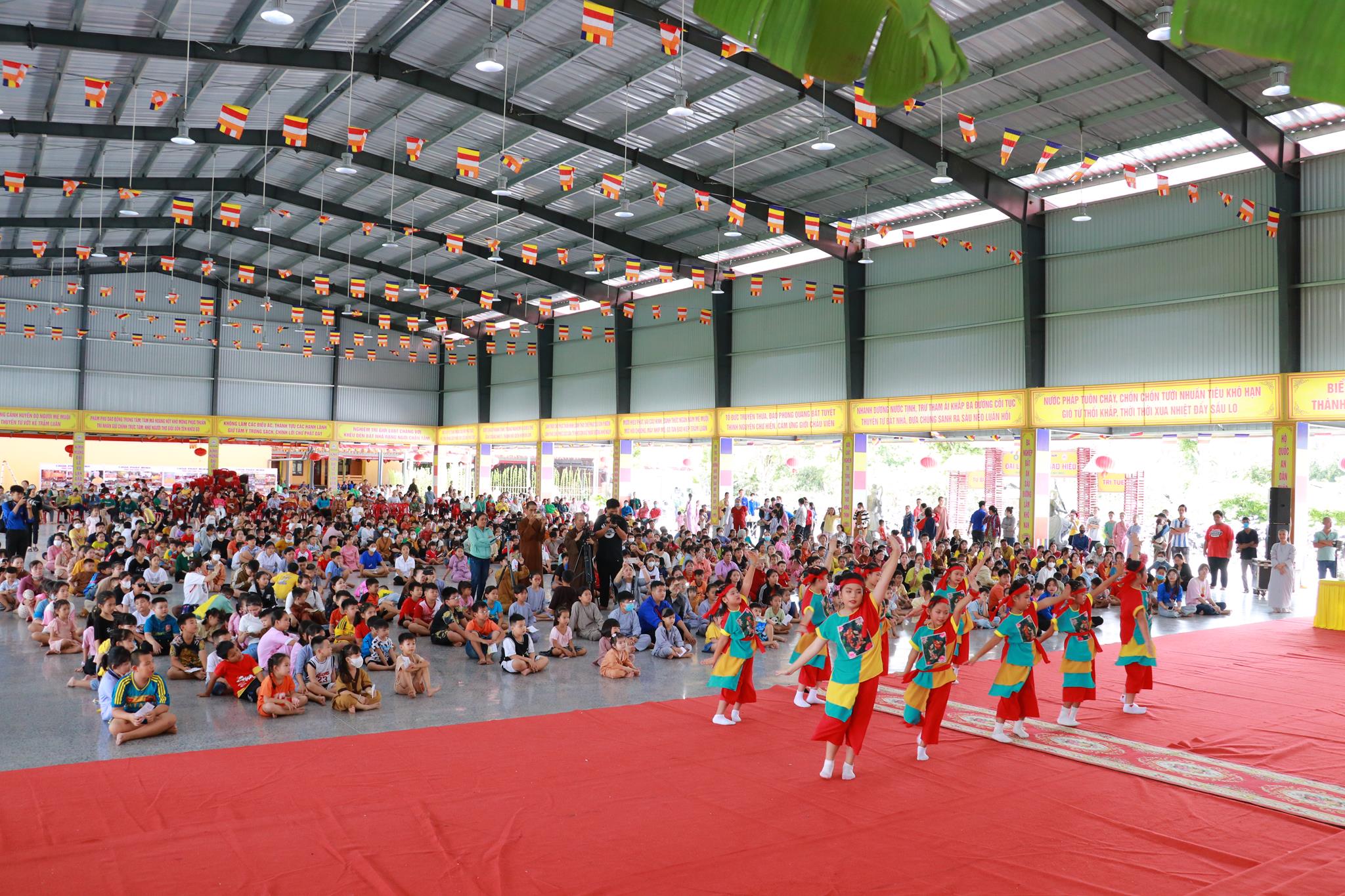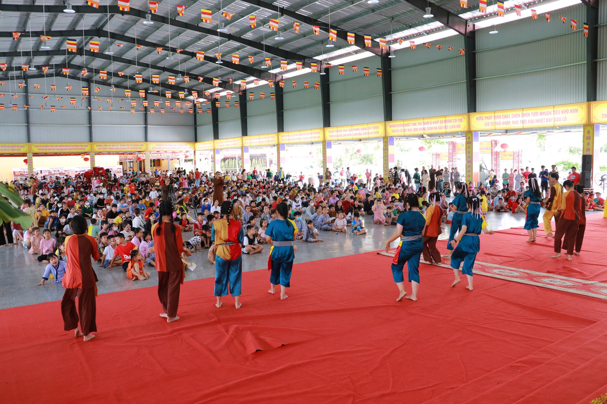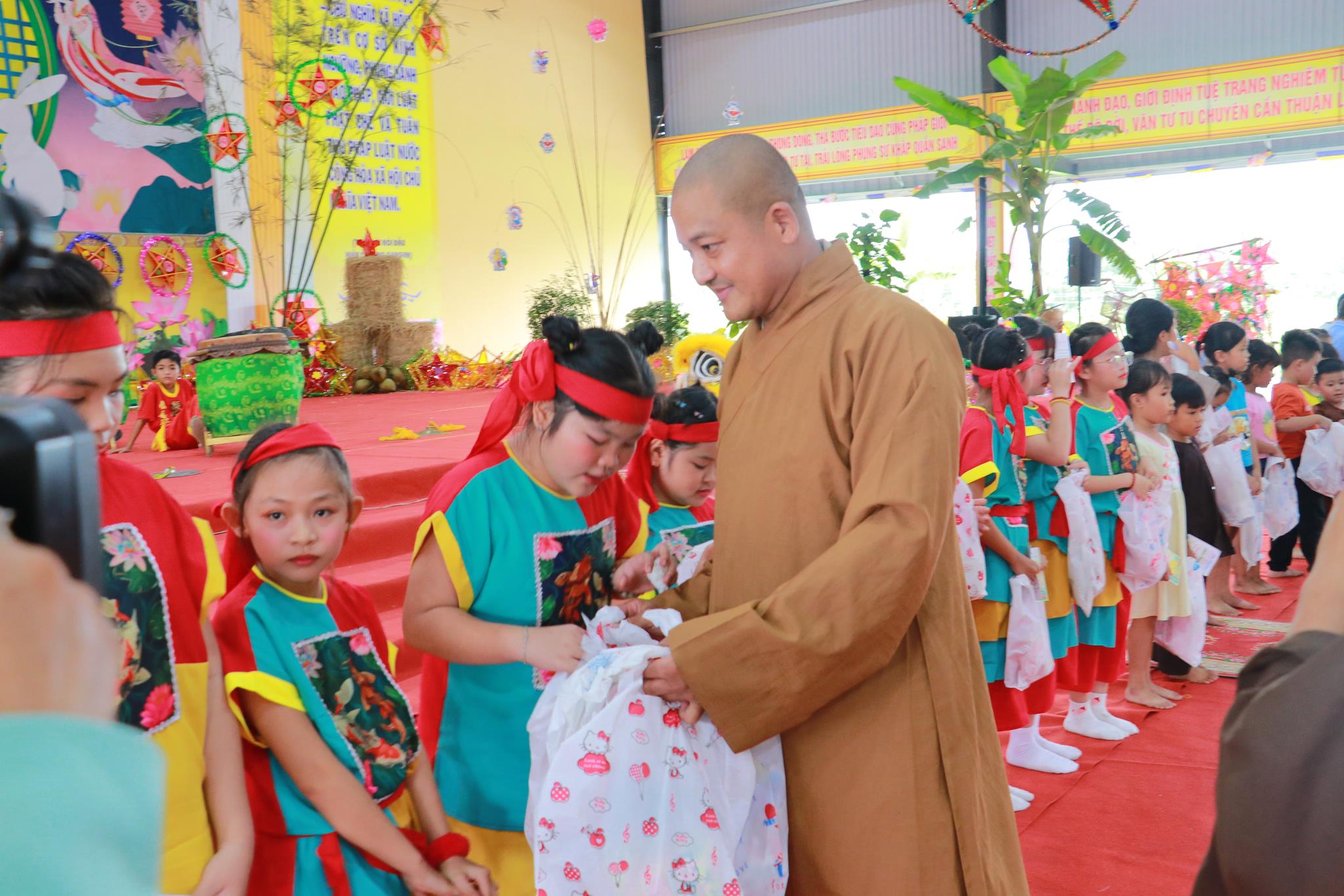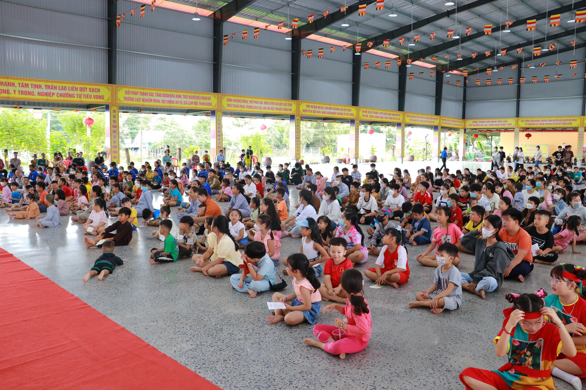 Trước khi chính thức khai mạc chương trình, các em nhỏ được thưởng thức các tiết mục văn nghệ do đoàn Tình ca Bắc Sơn, Ca sĩ Diệu Đan, Ca sĩ Lưu Minh Tuấn và các văn nghệ sĩ, Phật tử biểu diễn. Trong chương trình, Ban Tổ chức đã trao tặng 1000 phần quà đến các em học sinh tiểu học trên địa bàn huyện và tiệc Buffet chay với hơn 30 món ăn đa dạng.