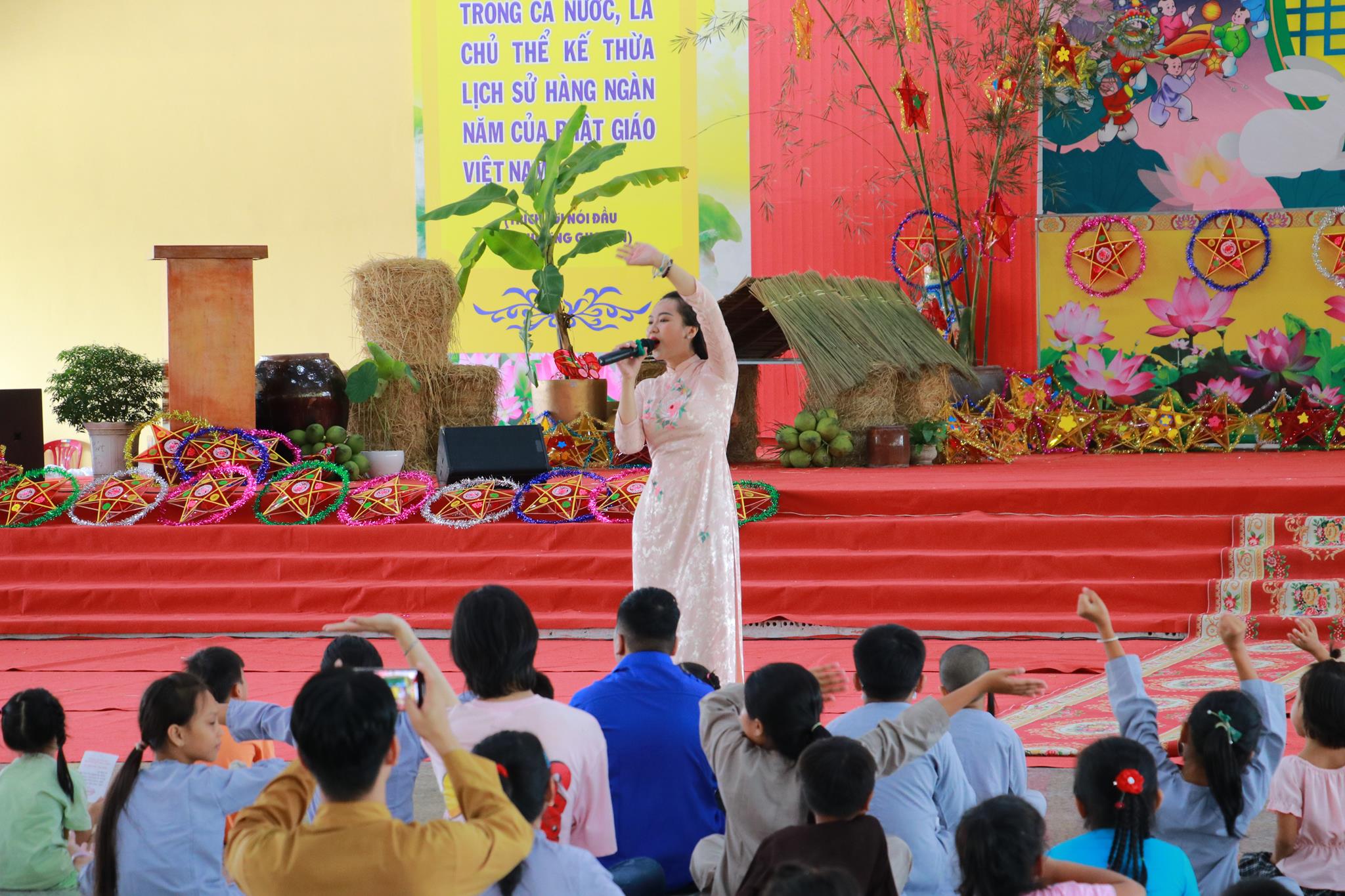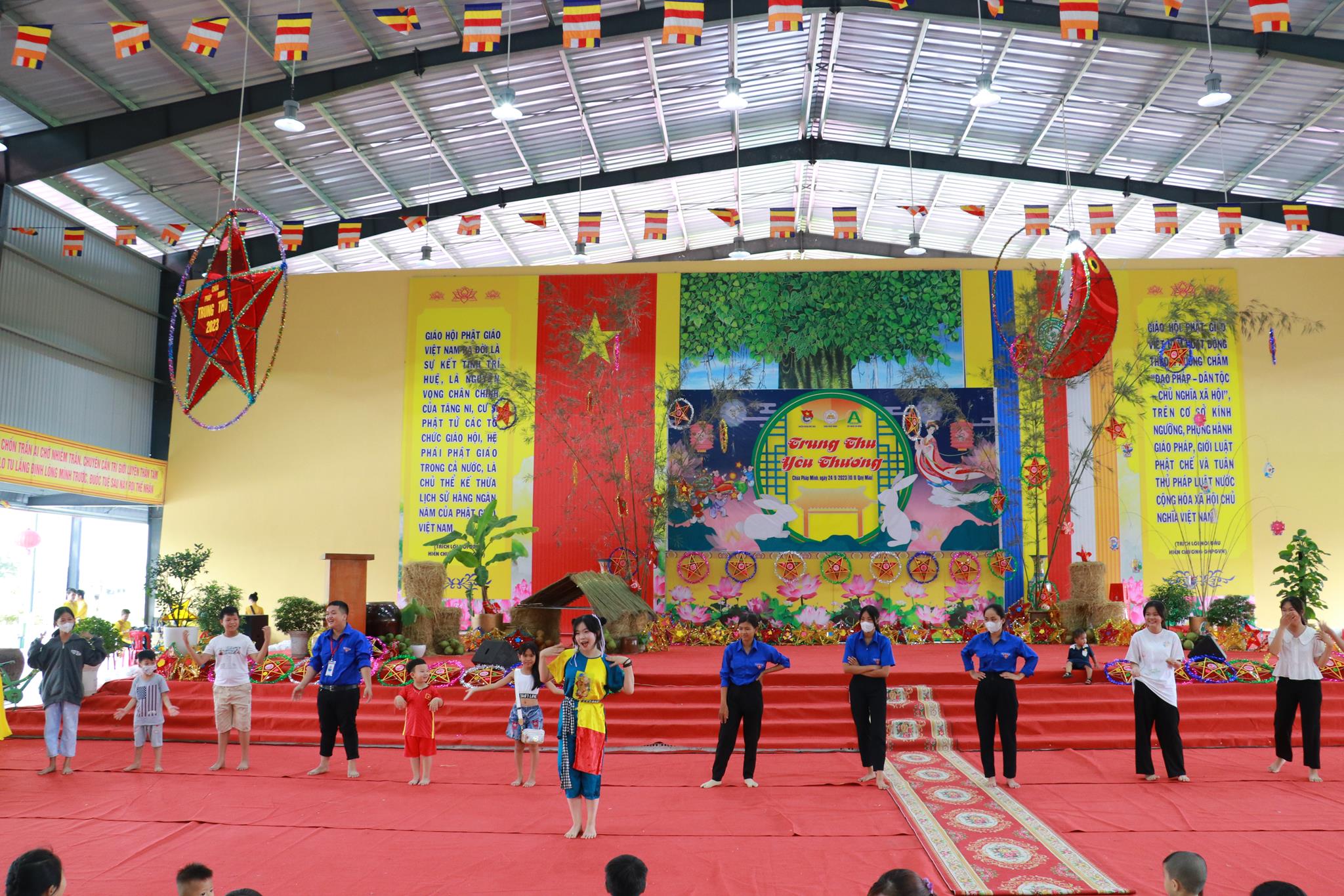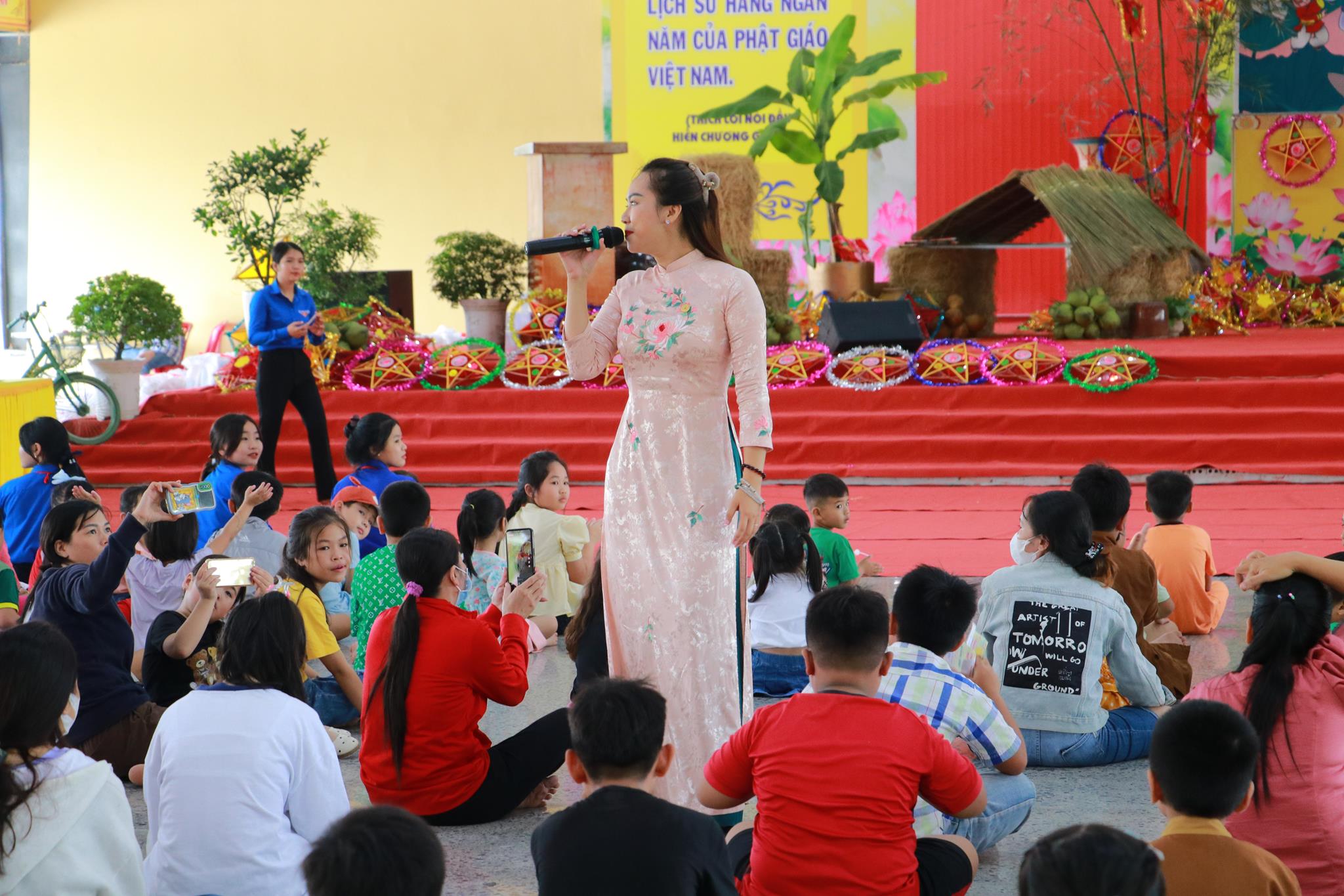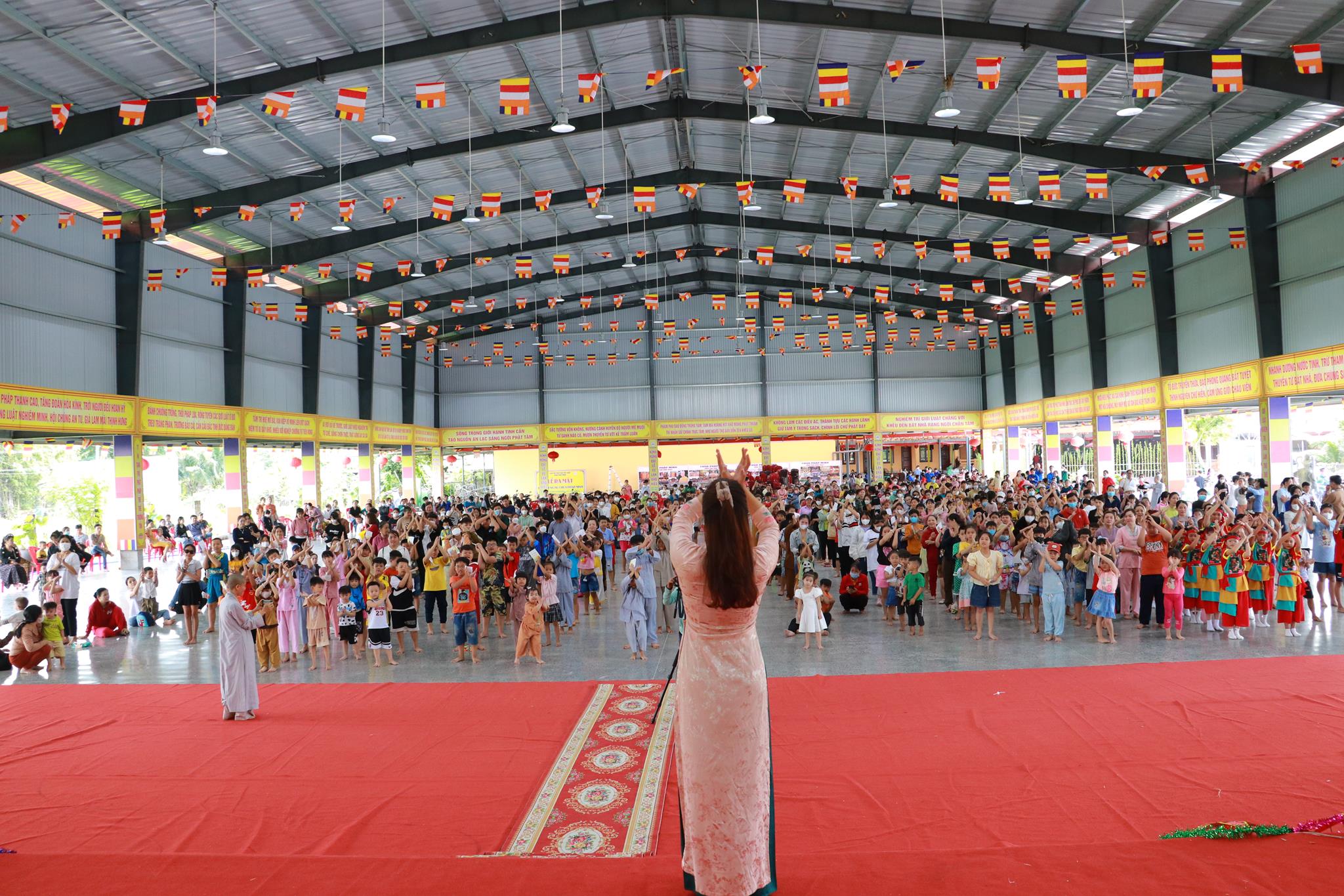 Trước khi chính thức khai mạc chương trình, các em nhỏ được thưởng thức các tiết mục văn nghệ do đoàn Tình ca Bắc Sơn, Ca sĩ Diệu Đan, Ca sĩ Lưu Minh Tuấn và các văn nghệ sĩ, Phật tử biểu diễn. Trong chương trình, Ban Tổ chức đã trao tặng 1000 phần quà đến các em học sinh tiểu học trên địa bàn huyện và tiệc Buffet chay với hơn 30 món ăn đa dạng.