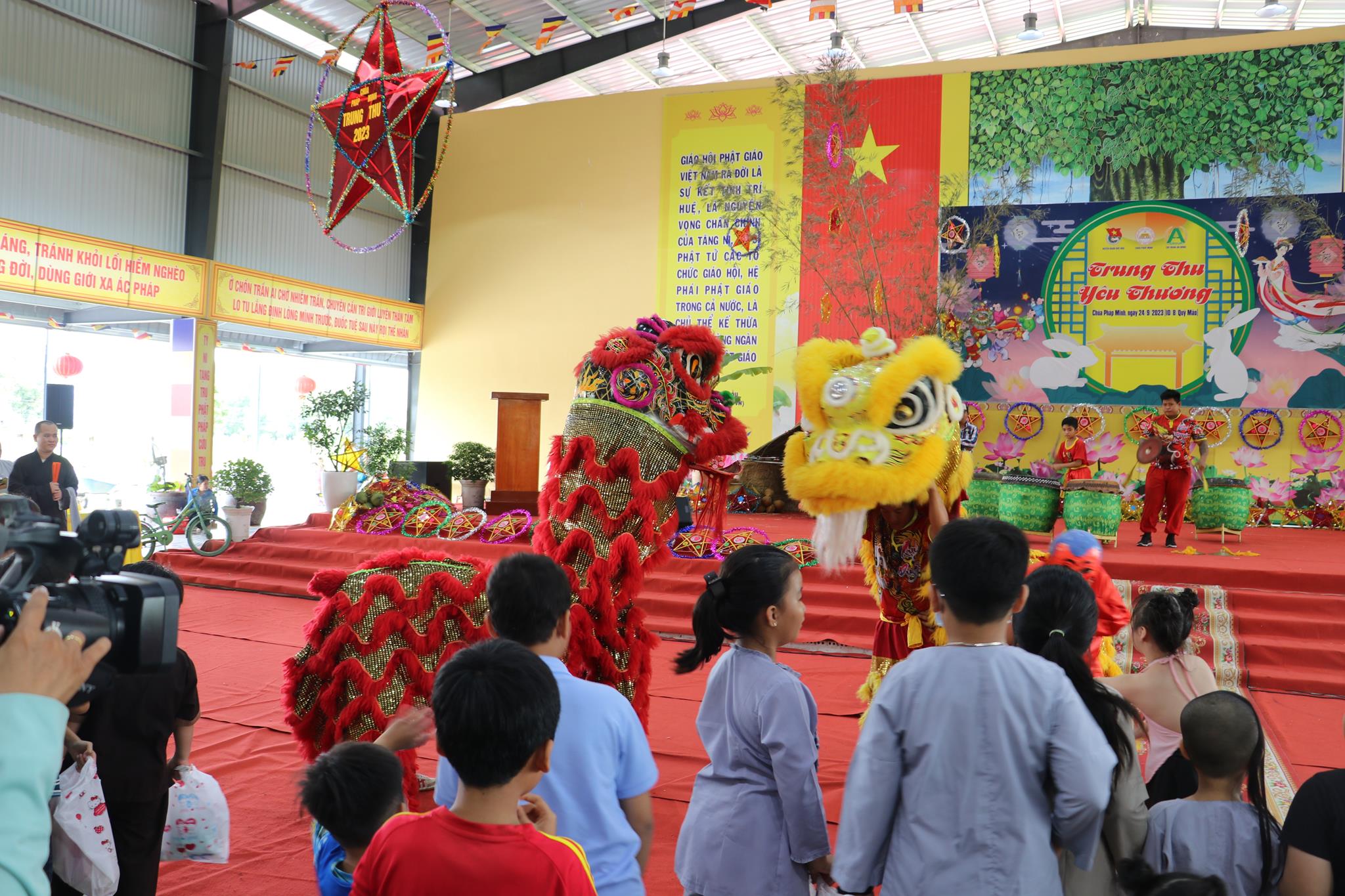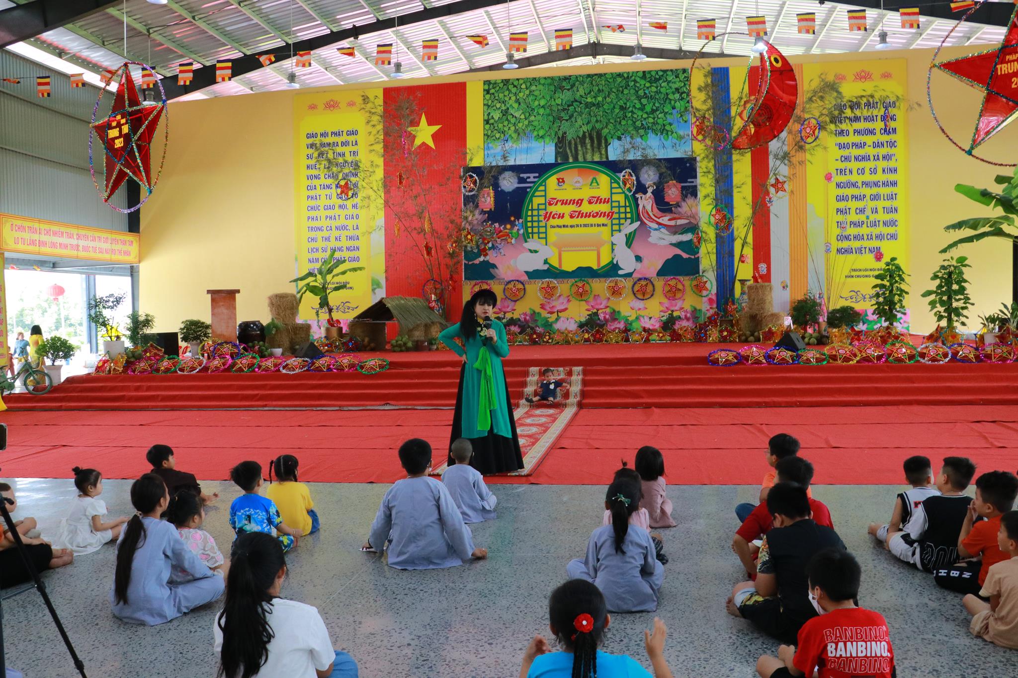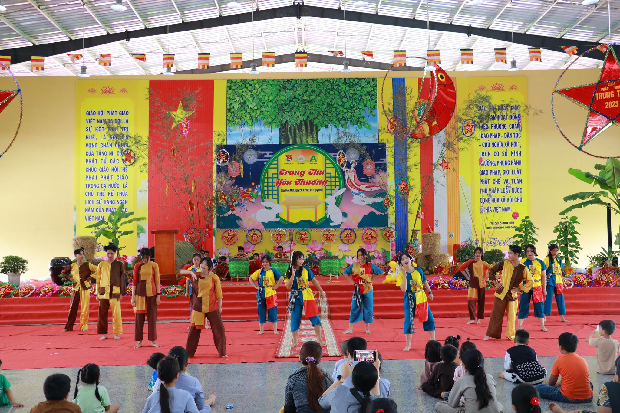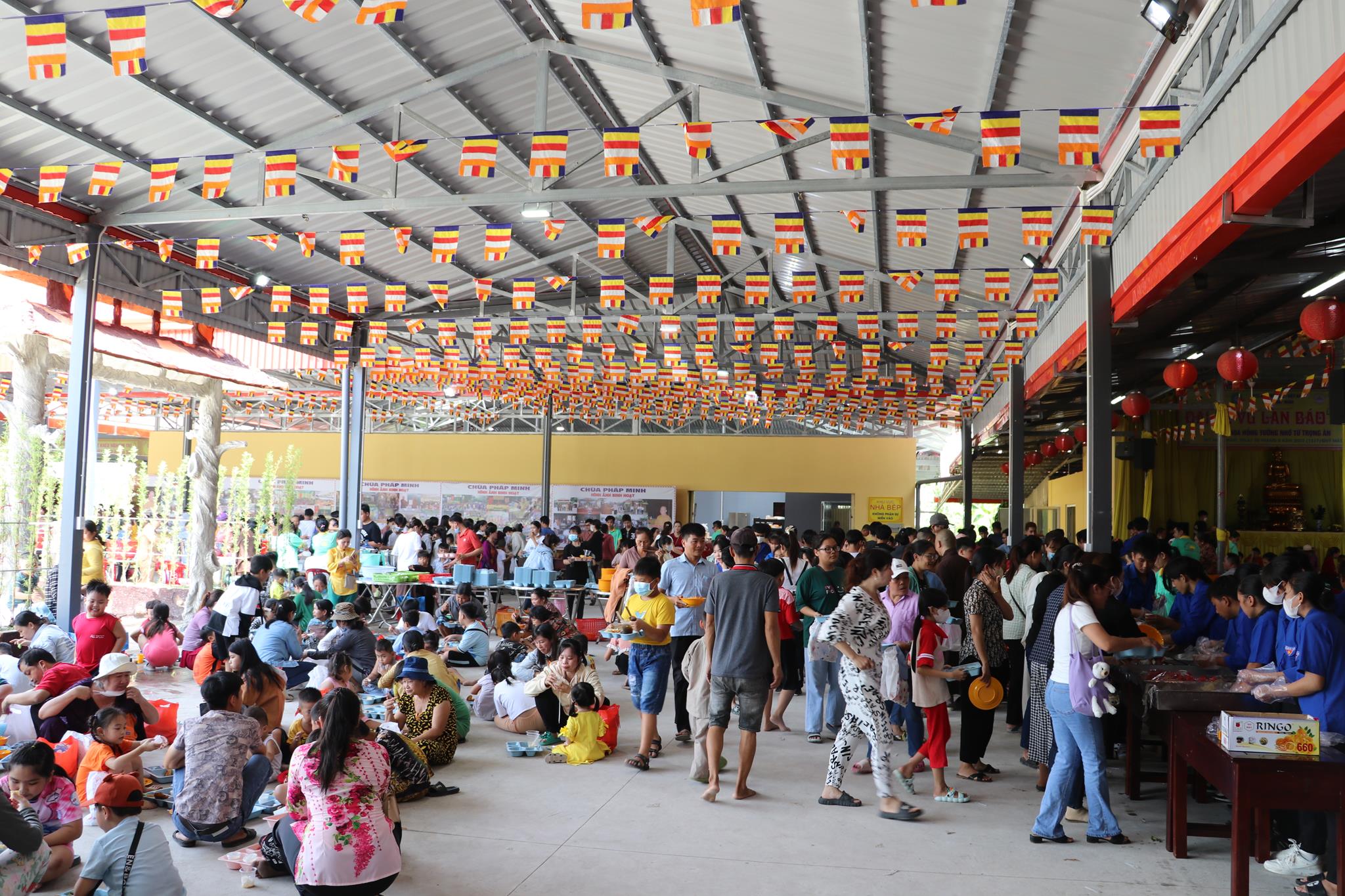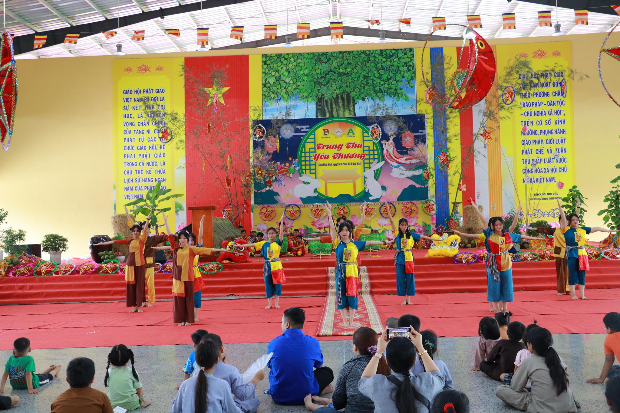 Trước khi chính thức khai mạc chương trình, các em nhỏ được thưởng thức các tiết mục văn nghệ do đoàn Tình ca Bắc Sơn, Ca sĩ Diệu Đan, Ca sĩ Lưu Minh Tuấn và các văn nghệ sĩ, Phật tử biểu diễn. Trong chương trình, Ban Tổ chức đã trao tặng 1000 phần quà đến các em học sinh tiểu học trên địa bàn huyện và tiệc Buffet chay với hơn 30 món ăn đa dạng.