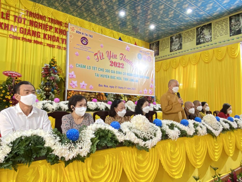 Sáng ngày 21/01/2022 (nhằm ngày 19/12/Tân Sửu) chùa Pháp Minh, ấp Giồng Lớn, xã Mỹ Hạnh Nam, huyện Đức Hòa, tỉnh Long An trao tặng 300 phần quà cho đồng bào có hoàn cảnh khó khăn tại huyện Đức Hòa vui xuân đón tết Nhâm Dần năm 2022.