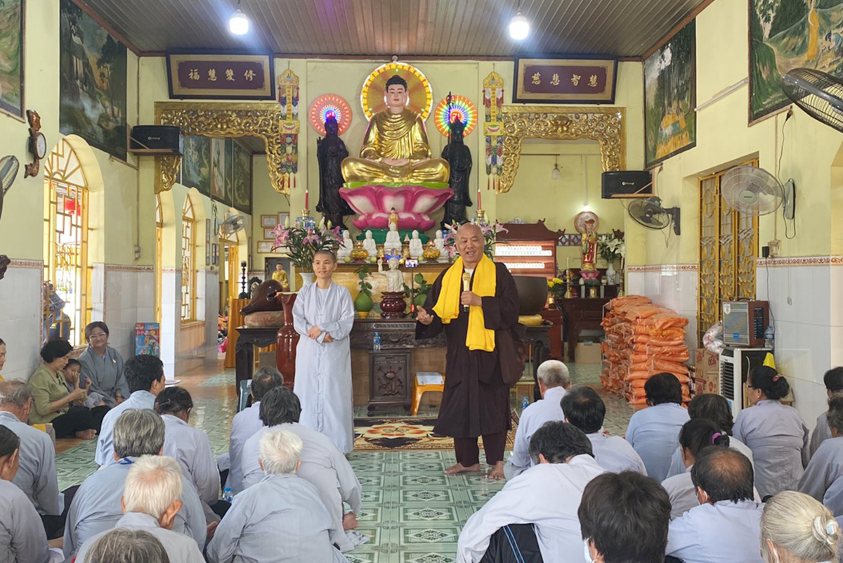 Tại buổi trao tặng quà, Hòa thượng trưởng đoàn đã gửi lời chúc tốt đẹp đến quý bà con Khiếm thị cũng như gửi lời cảm ơn đến quý lãnh đạo Chính quyền địa phương nhân dịp mừng xuân Giáp Thìn 2024. Hòa thượng tri ân đến quý mạnh thường quân đã hỗ trợ tích cực nhằm mang niềm vui đến mọi người trong những ngày giáp tết. Với việc làm thiện lành, tinh thần từ bi, của đạo Phật đem lại yêu thương tích cực theo phương châm “Phụng sự chúng sinh, thiết thực cúng dường chư Phật”. Mong rằng truyền thống tốt đẹp của mùa Xuân là sum họp gia đình, nhận được món quà đầu năm sẽ tiếp động lực cho mọi người có cuộc sống tích cực hơn góp phần giàu mạnh quê hương, đất nước.