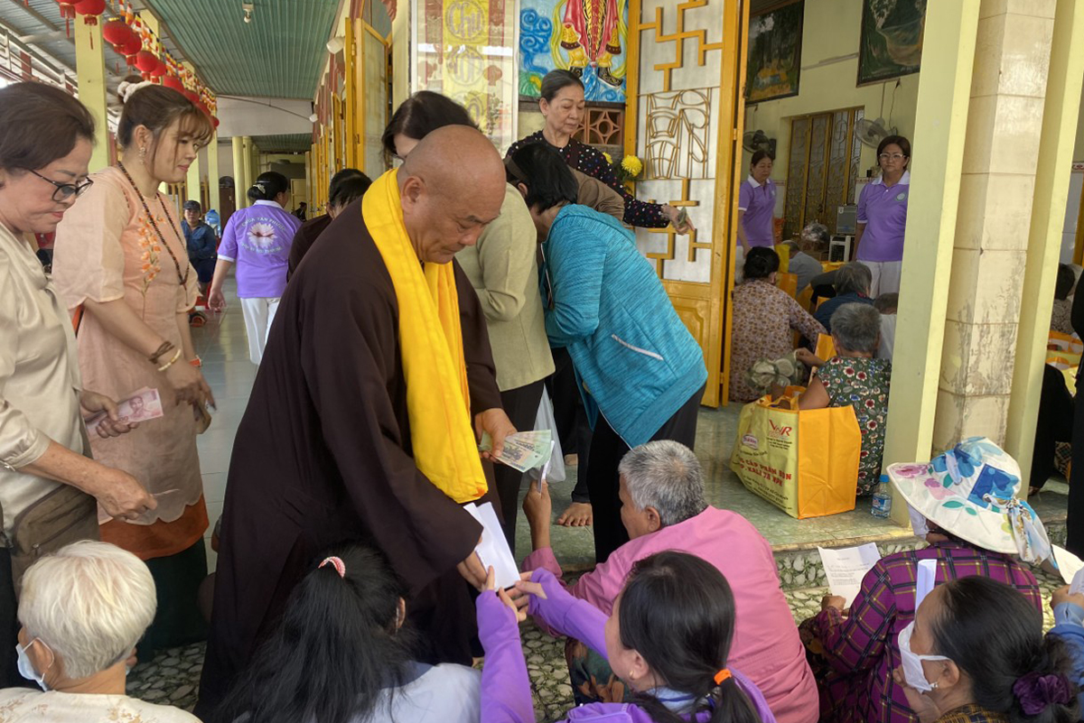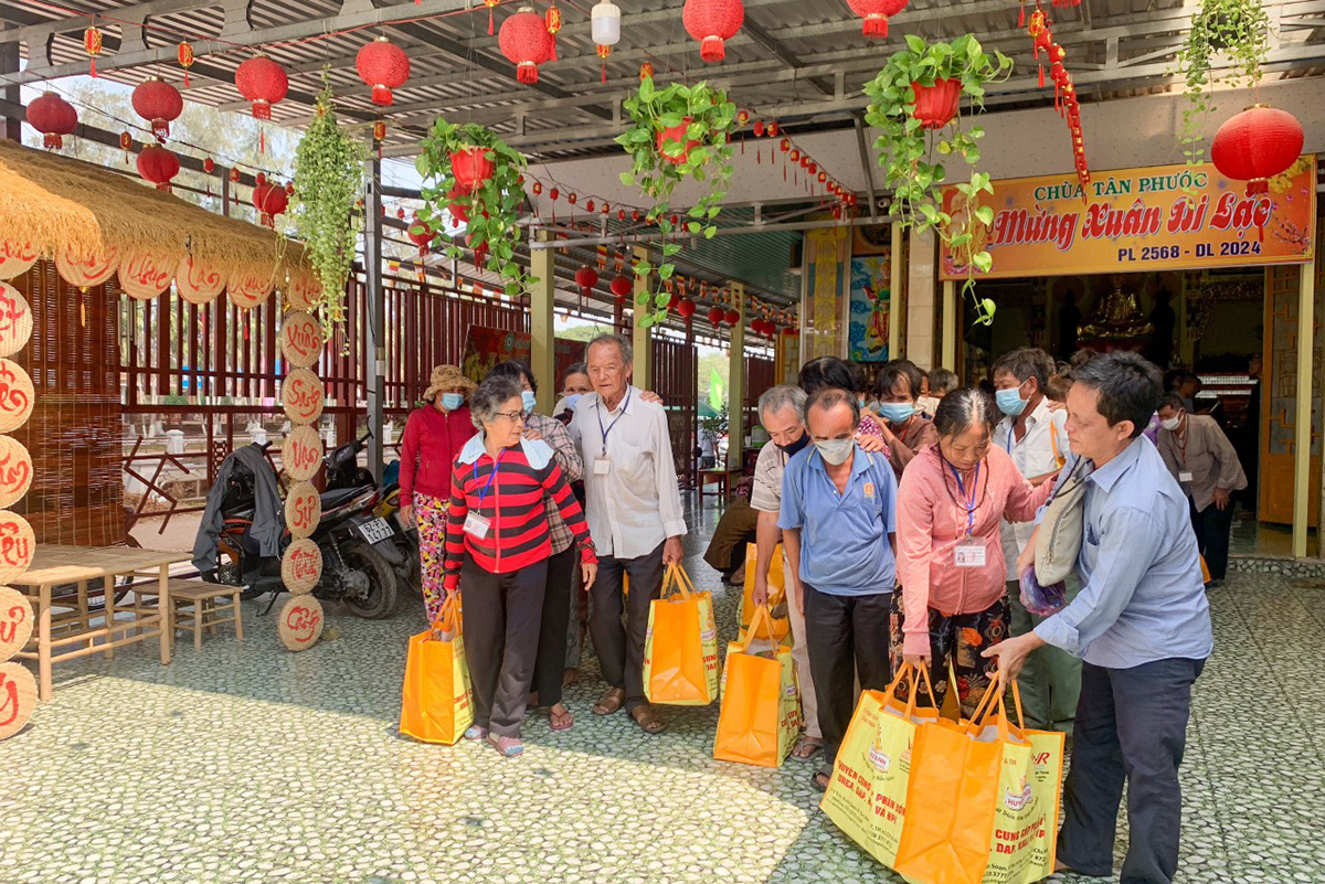 Sáng ngày 27/01/2024, chùa Tân Phước, thị trấn Hậu Nghĩa, huyện Đức Hòa đã phối hợp UBND, UB MTTQVN thị trấn Hậu Nghĩa, trao, tặng 120 phần quà đến bà con hội Khiếm thị.