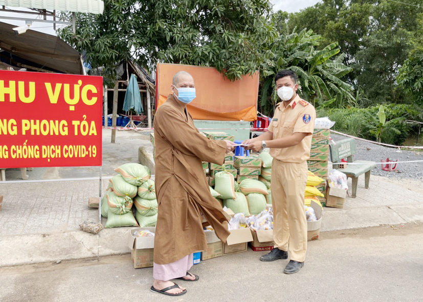 Đức Hoà: Chùa  Vạn Linh hỗ trợ quà cho các khu phong tỏa, cách ly dịch covid-19