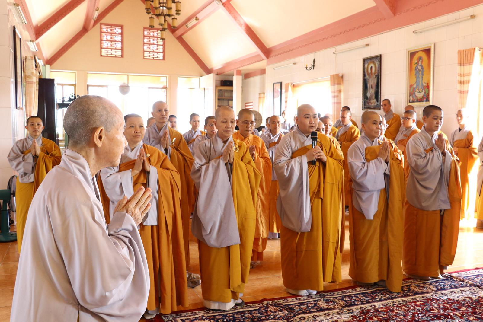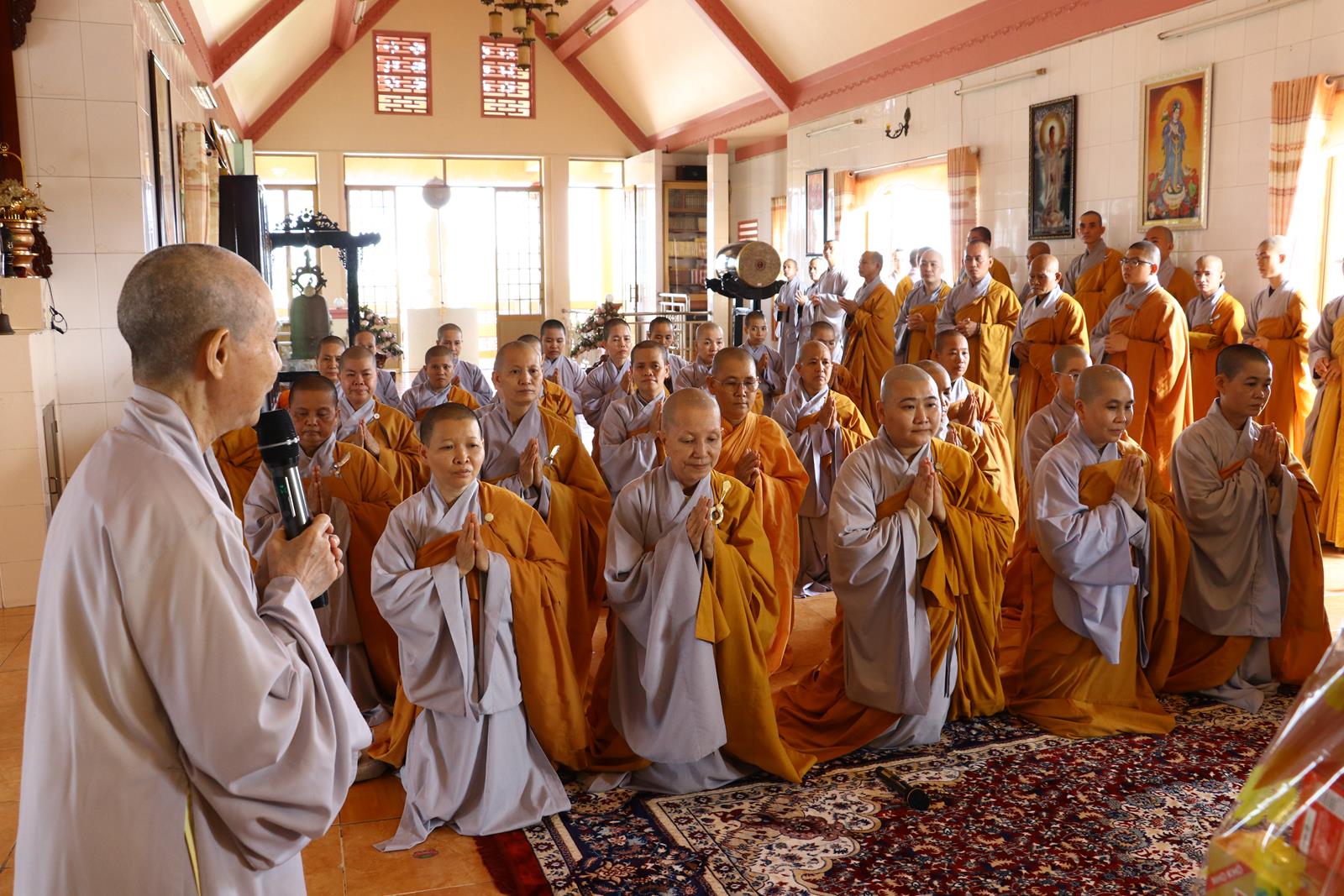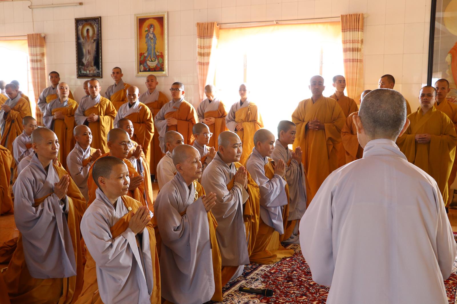 Tại mỗi trú xứ, phái đoàn được lắng nghe lời tán thán sự thành tựu Phật sự của huyện nhà trong năm qua. Chư tôn đức đã chỉ dạy và chia sẻ nhiều kinh nghiệm quý báu trong quá trình làm Phật sự tại hai huyện Đức Hòa và Đức Huệ.