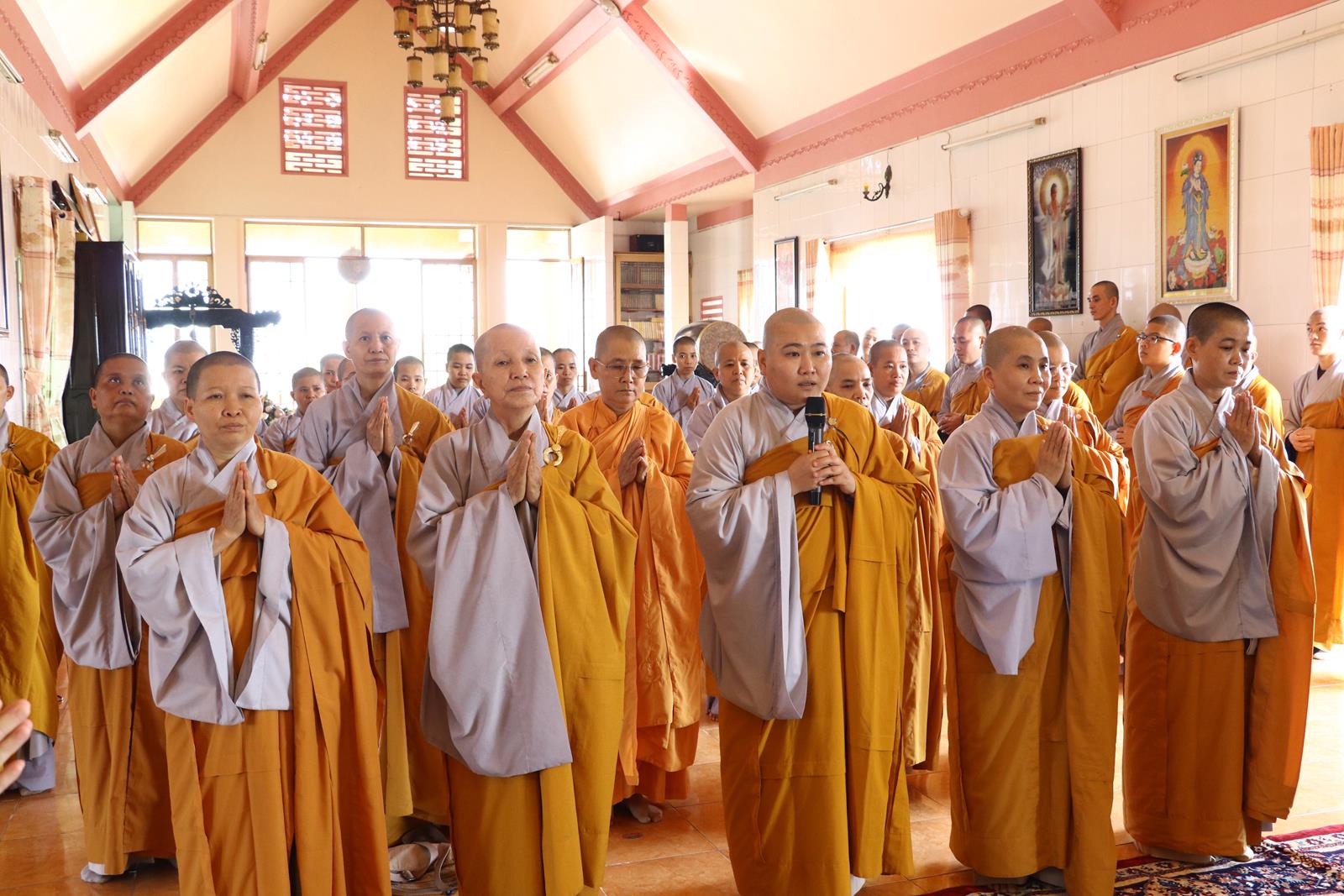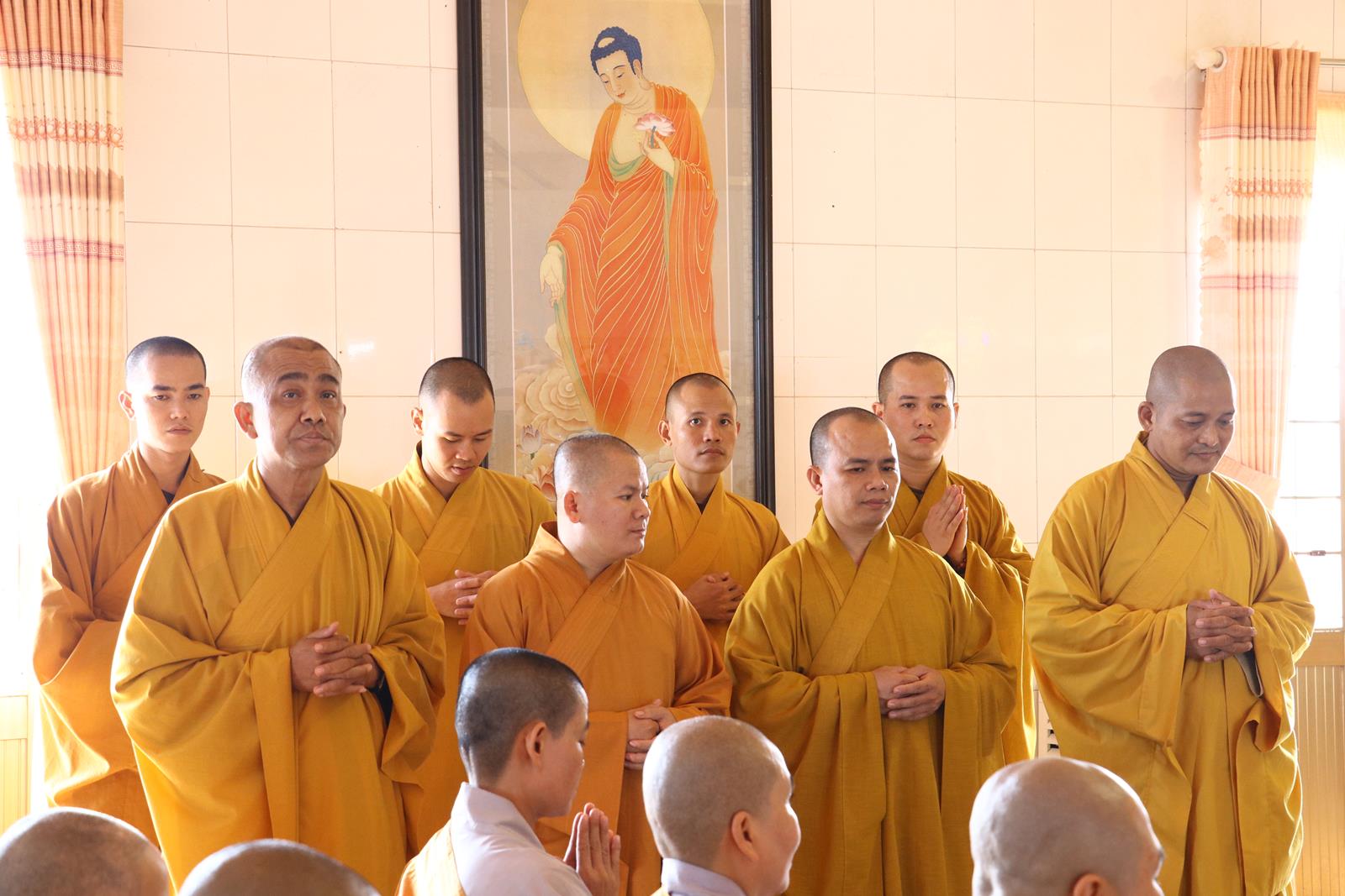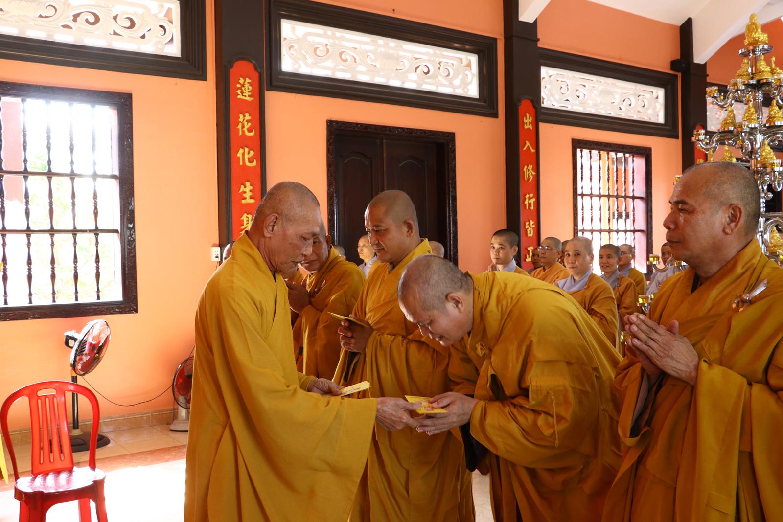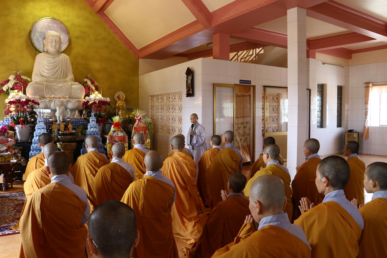 Tại mỗi trú xứ, phái đoàn được lắng nghe lời tán thán sự thành tựu Phật sự của huyện nhà trong năm qua. Chư tôn đức đã chỉ dạy và chia sẻ nhiều kinh nghiệm quý báu trong quá trình làm Phật sự tại hai huyện Đức Hòa và Đức Huệ.