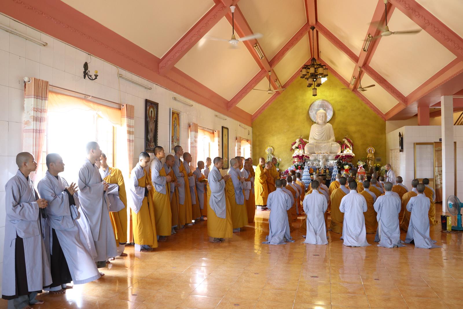 Dịp này, phái đoàn đã đến vấn an sức khỏe, đảnh lễ Tam bảo các trú xứ: Chùa Thiên Khánh: Trưởng lão Hòa thượng Thích Thiện Huệ – Thành viên HĐCM, Chứng minh BTS GHPGVN tỉnh Long An; chùa Thiên Châu: HT. Thích Minh Thiện – UV HĐTS, Phó ban Hoằng pháp TW, Trưởng BTS GHPGVN tỉnh Long An; Chùa Long Thạnh: Thượng tọa Thích Quảng Tâm – UV HĐTS, Phó Trưởng ban Thường trực BTS GHPGVN tỉnh; Chùa Vĩnh Phong: NT. TN. Tuệ Đăng – Phó BTS GHPGVN tỉnh, Trưởng Phân ban Ni giới GHPGVN tỉnh.