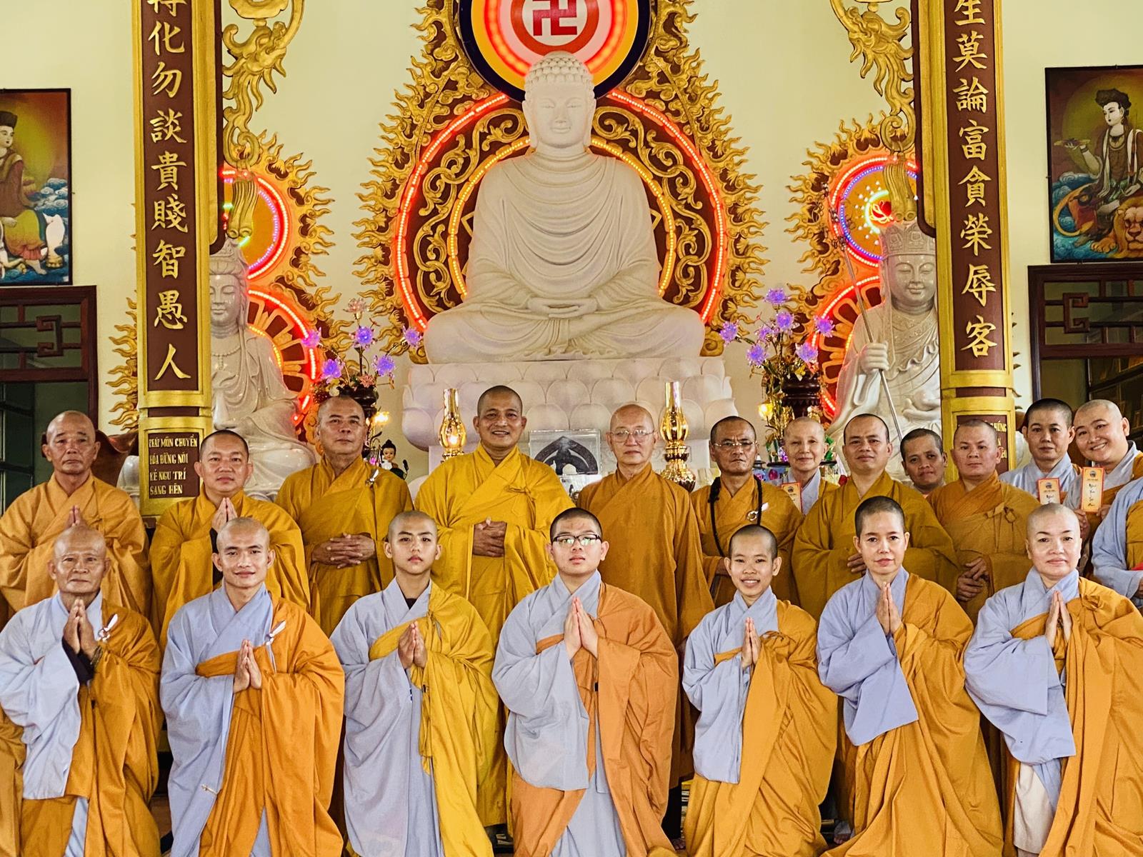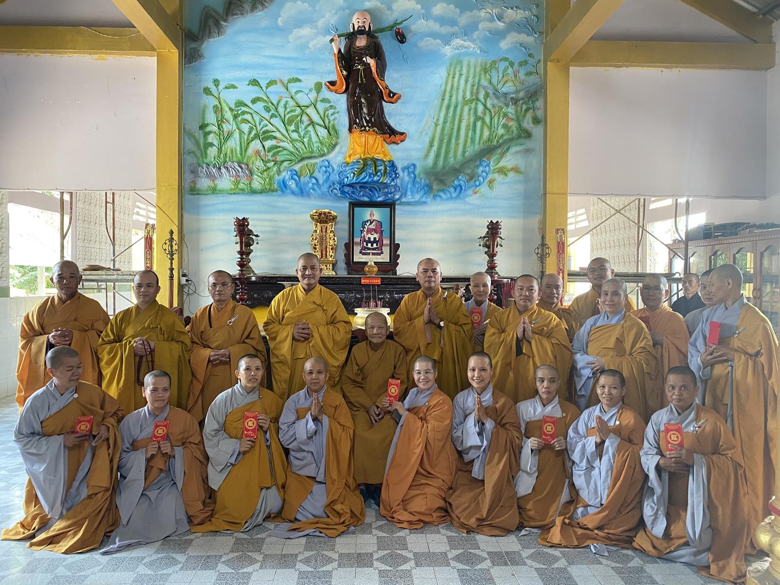 Sáng ngày 01/02/2024 (nhằm ngày 22/12/Quý Mão), Ban Trị sự GHPGVN huyện Đức Hòa, huyện Đức Huệ, Ban Chủ nhiệm và Tăng ni sinh Lớp SCPH Long An, Chư ni huyện Đức Hòa, Ban Phụng sự chùa Pháp Minh vân tập về các trú xứ khánh tuế chúc xuân đến Chư tôn đức Ban Chứng minh, Ban Thường trực Phật giáo tỉnh Long An.