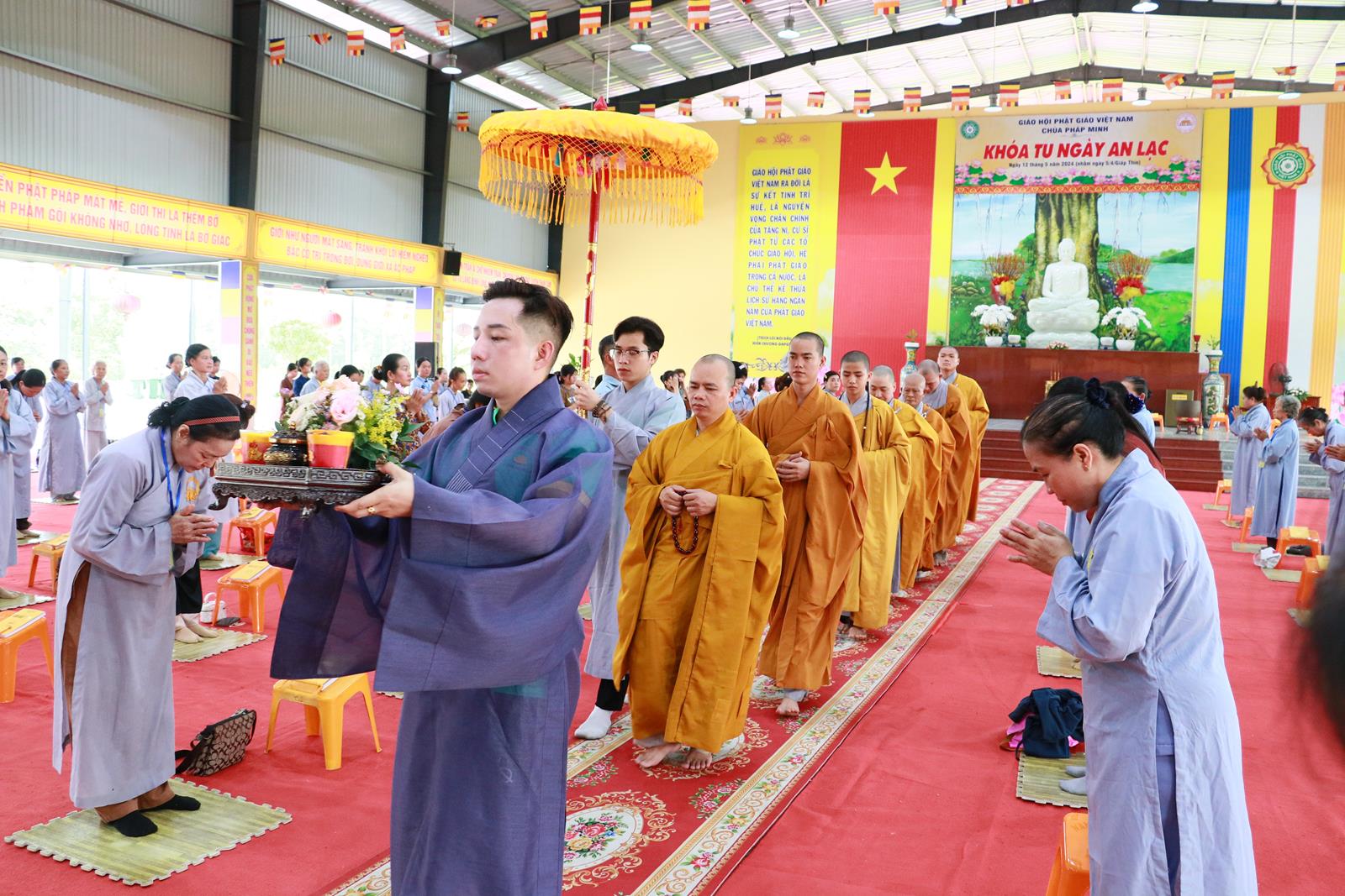 Chương trình khóa tu được diễn ra với các nội dung: Thực hành Thiền tọa, Thính pháp, nghi thức ăn cơm trong chánh niệm, kinh hành niệm Phật,.. dưới sự hướng dẫn trực tiếp của Đại đức Thích Lệ Duyên – Phó ban kiêm Chánh Thư ký BTS GHPGVN tỉnh Long An, Trưởng BTS GHPGVN huyện Đức Hòa và Đại đức Thích Thiện Lâm – Giảng viên HVPGVN tại TP. HCM, Giáo thọ Trường Sơ Trung cấp Phật học Long An.