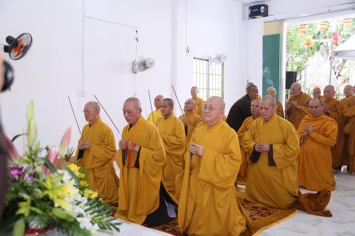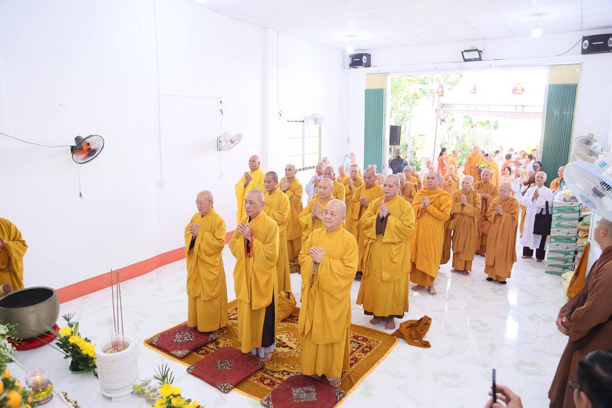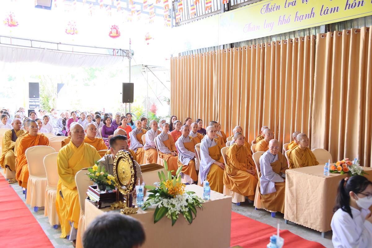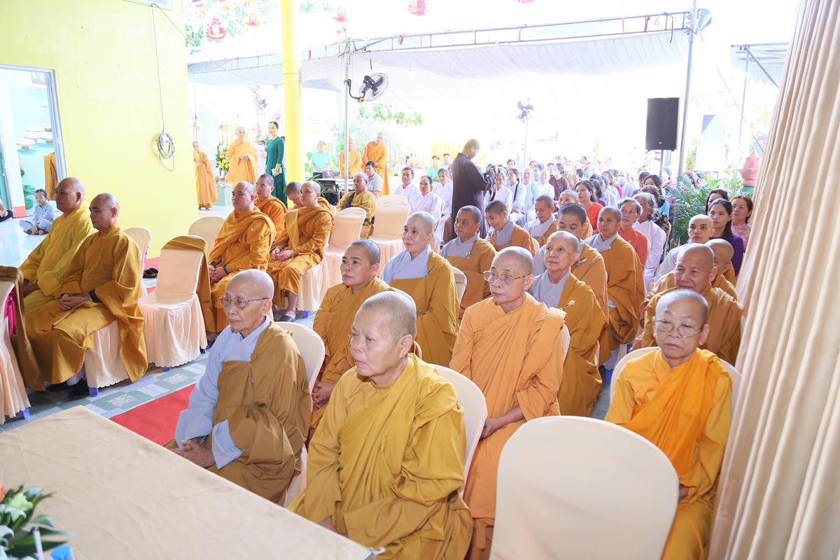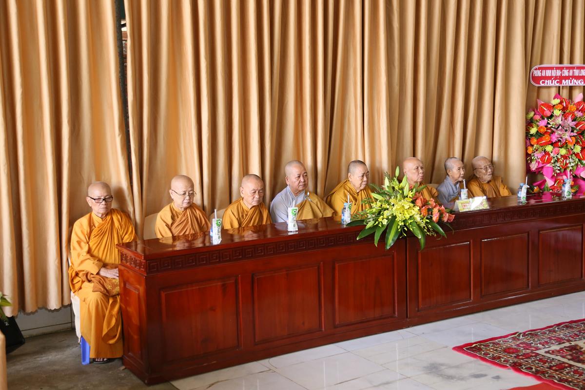 Quang lâm chứng minh và tham dự buổi lễ có: Hòa thượng Thích Thiện Huệ – Thành viên HĐCM, Chứng minh BTS GHPGVN tỉnh Long An; Hòa thượng Thích Minh Thiện – UV HĐTS, Phó ban Hoằng pháp TƯ, Trưởng BTS GHPGVN tỉnh Long An, Chứng minh BTS GHPGVN huyện Đức Hòa; Thượng tọa Thích Quảng Tâm – UV HĐTS, Phó Trưởng ban Thường trực BTS GHPGVN tỉnh Long An; Thượng tọa Thích Đức Hoàng – Phó BTS GHPGVN tỉnh Long An; Đại đức Thích Lệ Duyên – Phó ban kiêm Chánh Thư ký BTS GHPGVN tỉnh Long An, Trưởng BTS GHPGVN huyện Đức Hòa; Đại đức Thích Thiện Danh – Phó Thư ký kiêm Chánh Văn phòng BTS GHPGVN tỉnh Long An; Thượng tọa Thích Phước Cường – Trưởng ban Nghi lễ GHPGVN tỉnh Long An; Thượng tọa Thích Nhuận Thành – Trưởng ban Kinh tế Tài chính GHPGVN tỉnh Long An; Thượng tọa Thích Minh Trung – Phó Trưởng ban thường trực BTS GHPGVN huyện Đức Hòa; Đại đức Thích Thiện An – Trưởng BTS GHPGVN huyện Đức Huệ; Đại đức Thích Thiện Trực – Phó BTS GHPGVN huyện Đức Hòa; Ni trưởng Thích nữ Tuệ Đăng – Phó BTS, Trưởng Phân ban Ni giới GHPGVN tỉnh Long An; Ni trưởng Thích nữ Chiêu Liên – Giáo phẩm Thường trực Ni giới Hệ phái Khất sĩ; Ni trưởng Thích nữ Tuấn Liên – Giáo phẩm Thường trực Ni giới Hệ phái Khất sĩ, Trưởng ban Kiểm soát Tổ đình Ngọc Phương; Ni trưởng Thích Nữ Gương Liên – Phó BTS GHPGVN tỉnh Long An; Ni trưởng Thích nữ Như Tâm – Phó ban kiêm Thủ quỹ BTS GHPGVN tỉnh Long An; chư tôn đức Thường trực BTS GHPGVN tỉnh Long An, huyện Đức Hòa; chư tôn đức Tịnh xá Trung Tâm; chư tôn đức Ni giới Hệ phái Khất sĩ; chư tôn đức Tăng Ni đồng về tham dự buổi lễ.
