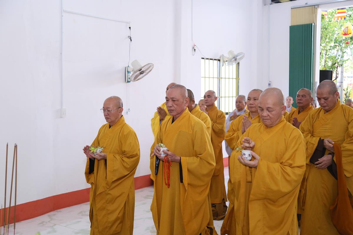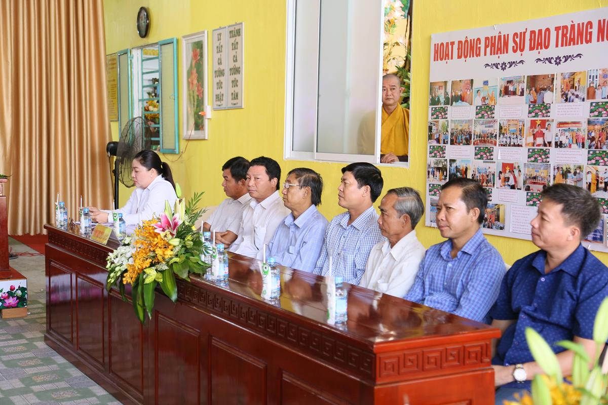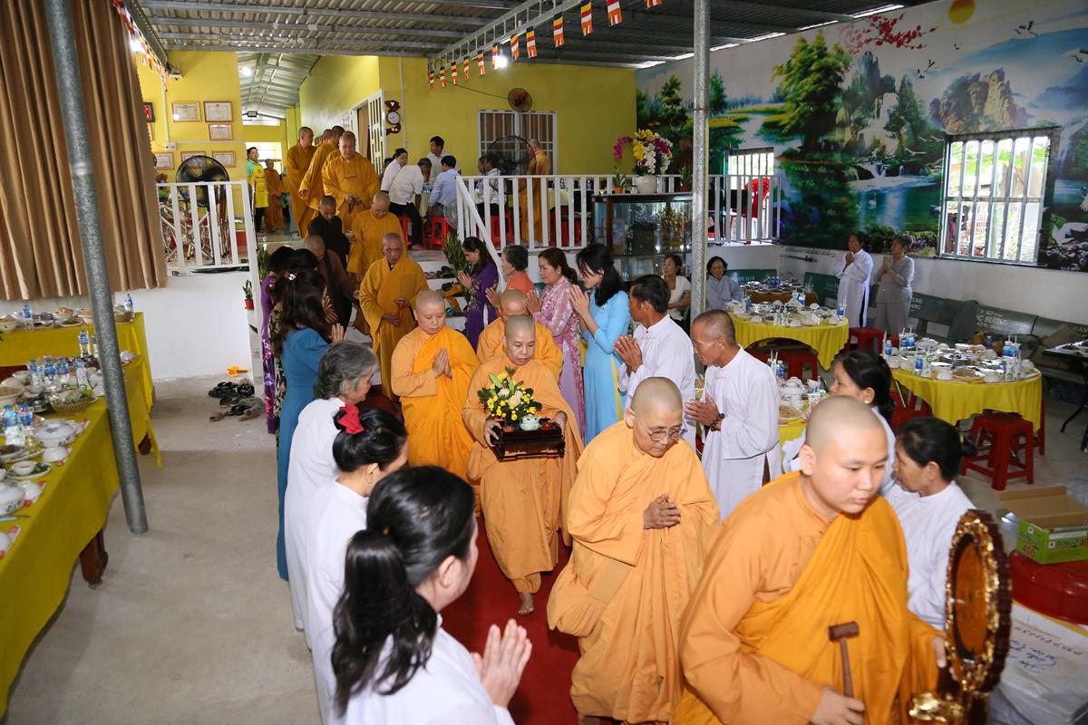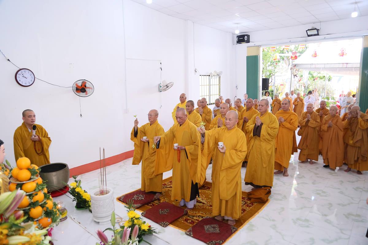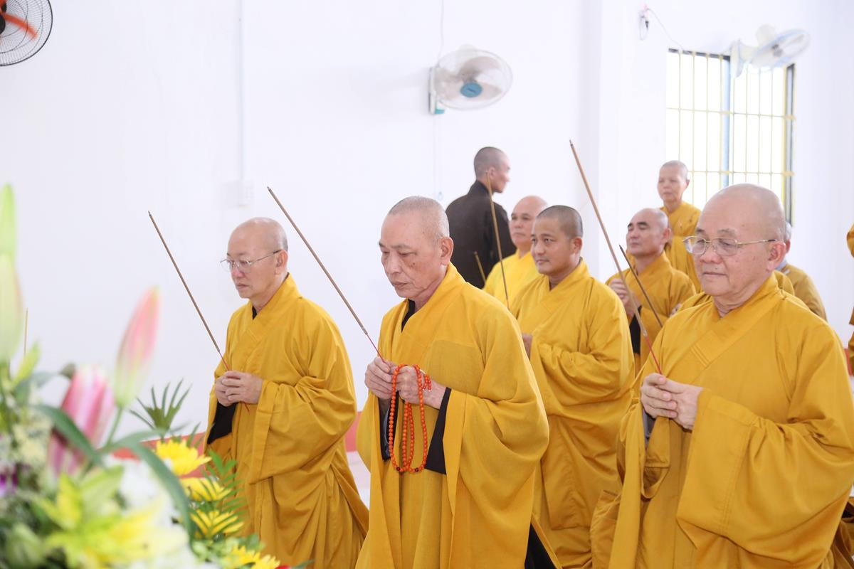 Quang lâm chứng minh và tham dự buổi lễ có: Hòa thượng Thích Thiện Huệ – Thành viên HĐCM, Chứng minh BTS GHPGVN tỉnh Long An; Hòa thượng Thích Minh Thiện – UV HĐTS, Phó ban Hoằng pháp TƯ, Trưởng BTS GHPGVN tỉnh Long An, Chứng minh BTS GHPGVN huyện Đức Hòa; Thượng tọa Thích Quảng Tâm – UV HĐTS, Phó Trưởng ban Thường trực BTS GHPGVN tỉnh Long An; Thượng tọa Thích Đức Hoàng – Phó BTS GHPGVN tỉnh Long An; Đại đức Thích Lệ Duyên – Phó ban kiêm Chánh Thư ký BTS GHPGVN tỉnh Long An, Trưởng BTS GHPGVN huyện Đức Hòa; Đại đức Thích Thiện Danh – Phó Thư ký kiêm Chánh Văn phòng BTS GHPGVN tỉnh Long An; Thượng tọa Thích Phước Cường – Trưởng ban Nghi lễ GHPGVN tỉnh Long An; Thượng tọa Thích Nhuận Thành – Trưởng ban Kinh tế Tài chính GHPGVN tỉnh Long An; Thượng tọa Thích Minh Trung – Phó Trưởng ban thường trực BTS GHPGVN huyện Đức Hòa; Đại đức Thích Thiện An – Trưởng BTS GHPGVN huyện Đức Huệ; Đại đức Thích Thiện Trực – Phó BTS GHPGVN huyện Đức Hòa; Ni trưởng Thích nữ Tuệ Đăng – Phó BTS, Trưởng Phân ban Ni giới GHPGVN tỉnh Long An; Ni trưởng Thích nữ Chiêu Liên – Giáo phẩm Thường trực Ni giới Hệ phái Khất sĩ; Ni trưởng Thích nữ Tuấn Liên – Giáo phẩm Thường trực Ni giới Hệ phái Khất sĩ, Trưởng ban Kiểm soát Tổ đình Ngọc Phương; Ni trưởng Thích Nữ Gương Liên – Phó BTS GHPGVN tỉnh Long An; Ni trưởng Thích nữ Như Tâm – Phó ban kiêm Thủ quỹ BTS GHPGVN tỉnh Long An; chư tôn đức Thường trực BTS GHPGVN tỉnh Long An, huyện Đức Hòa; chư tôn đức Tịnh xá Trung Tâm; chư tôn đức Ni giới Hệ phái Khất sĩ; chư tôn đức Tăng Ni đồng về tham dự buổi lễ.