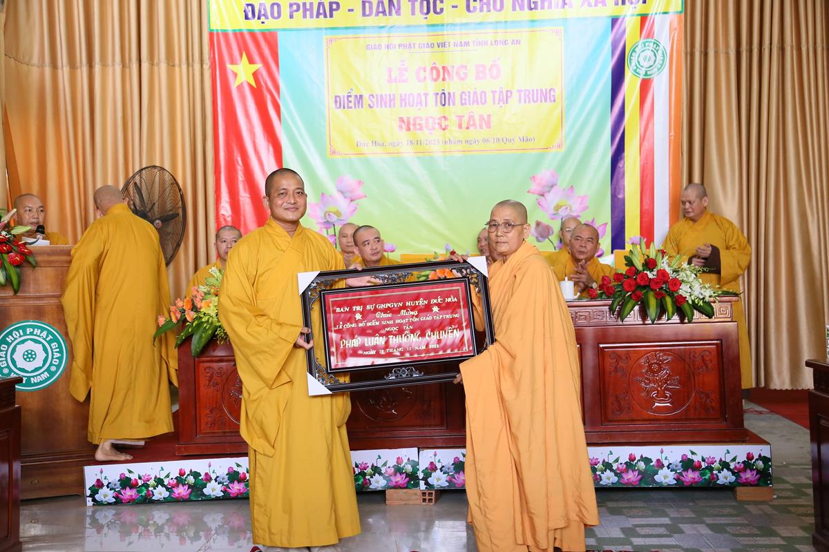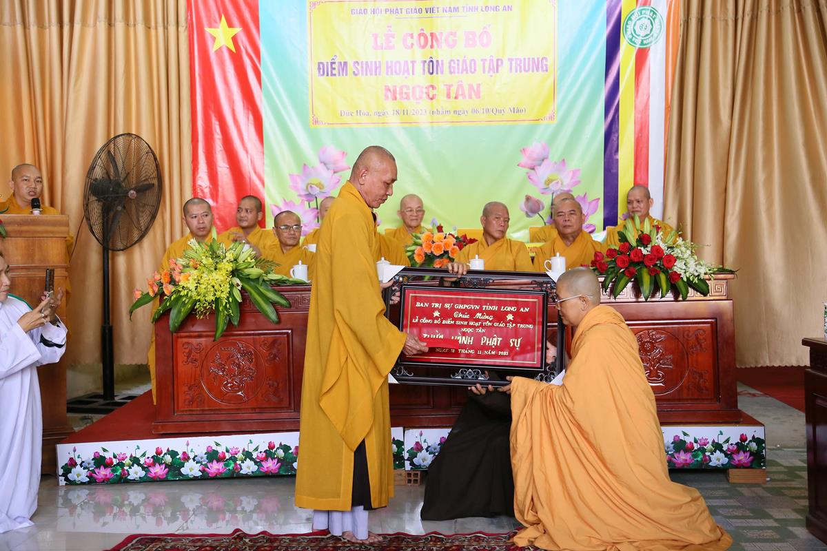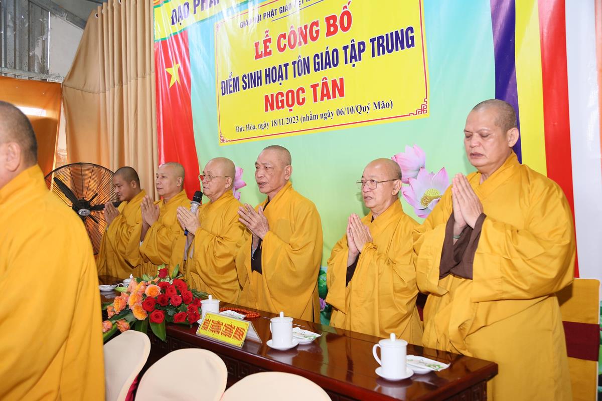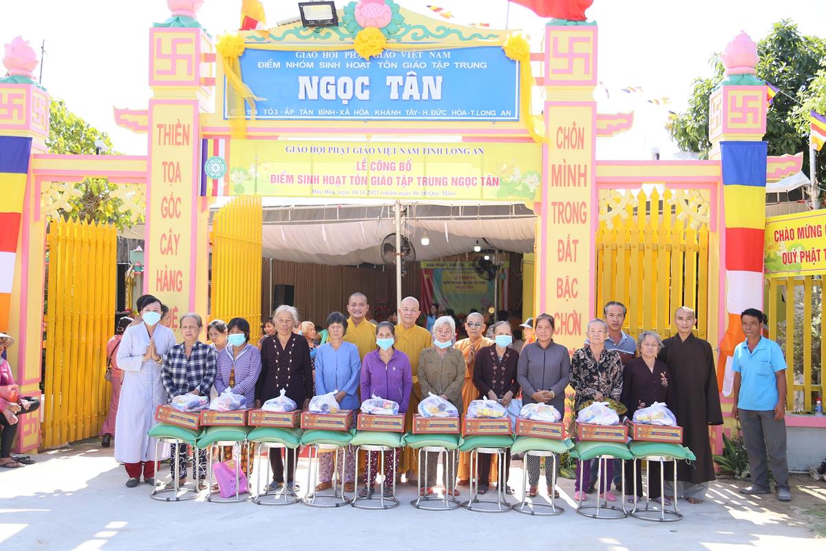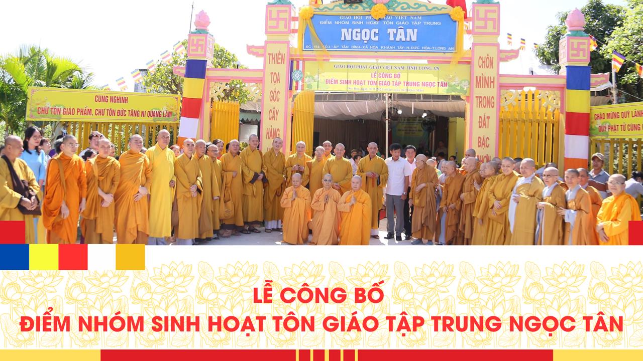 Sáng ngày 18/11/2023 (06/10/Quý Mão), Ban Trị sự GHPGVN tỉnh Long An phối hợp BTS GHPGVN huyện Đức Hòa và lãnh đạo chính quyền các cấp long trọng tổ chức Lễ Công Bố Điểm Nhóm Sinh Hoạt Tôn Giáo Tập Trung Ngọc Tân tọa lạc tổ 3, ấp Tân Bình, xã Hoà Khánh Tây, huyện Đức Hoà, tỉnh Long An.