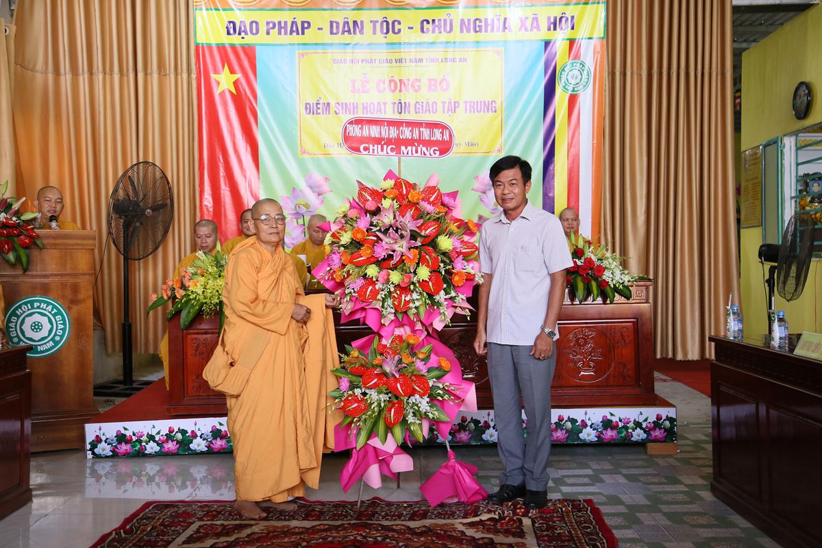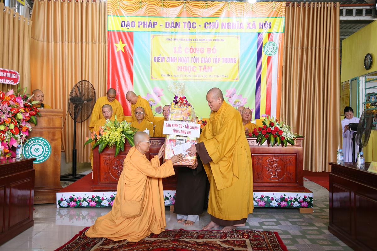 Buổi lễ đón nhận nhiều khánh vàng, lẵng hoa và phần quà cao quý từ: Hòa thượng Thích Thiện Huệ, Hòa thượng Thích Minh Thiện, Ban Trị sự GHPGVN tỉnh Long An, Ban Kinh tế Tài chính GHPGVN tỉnh Long An, Ban Trị sự GHPGVN huyện Đức Hòa, Ban Trị sự GHPGVN huyện Đức Huệ, Phòng An ninh Nội địa Công an tỉnh Long An, Lãnh đạo chính quyền huyện Đức Hòa, Tịnh xá Trung Tâm, Tịnh xá Ngọc Tâm, Chùa Vĩnh Phong, Tổ đình Linh Nguyên, chùa Đức Huy, chùa Linh Pháp, Linh Nguyên Ni Tự, chùa Long Thành, chùa Bồ Đề, chùa Tân Phước, Tịnh thất An Lạc,…