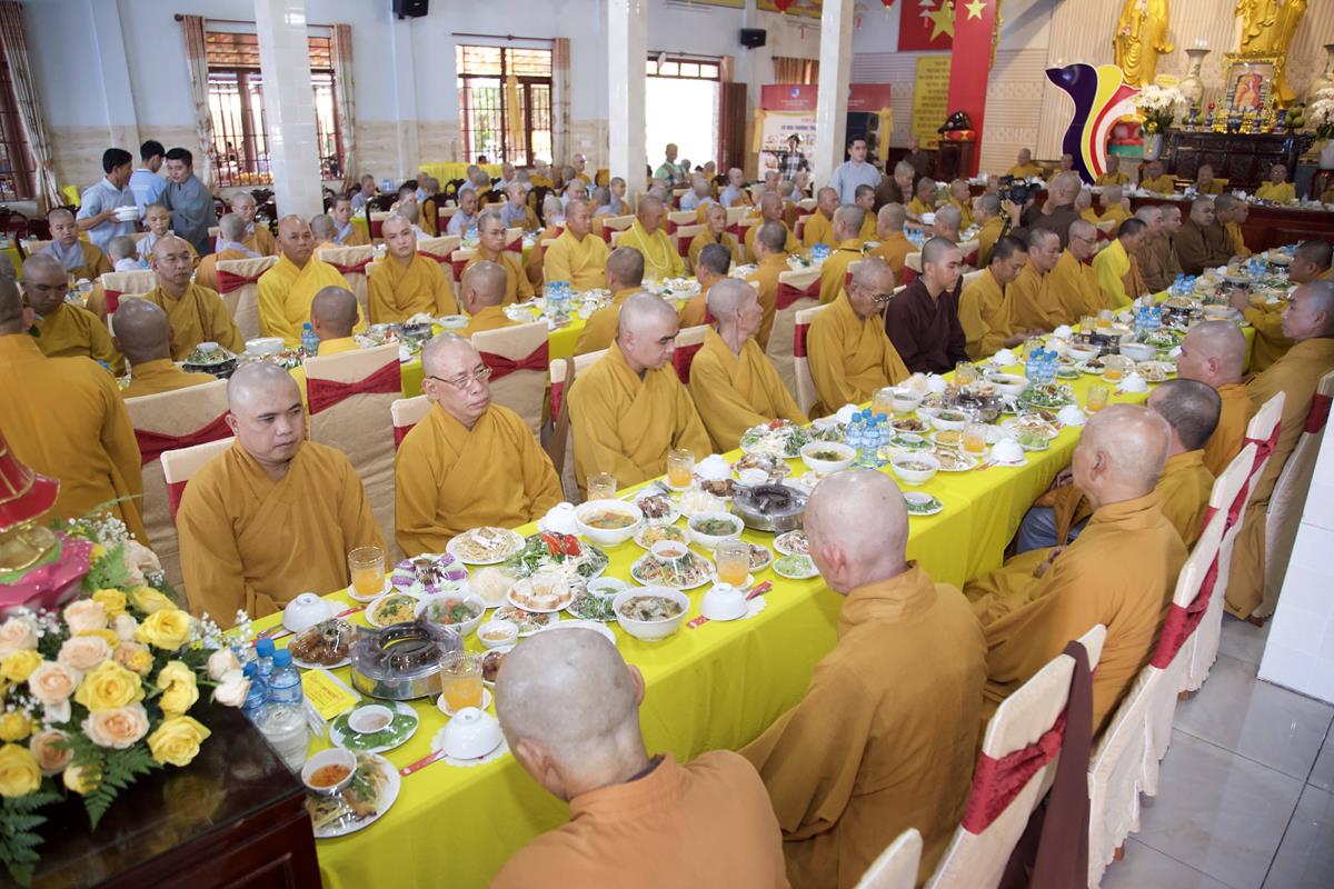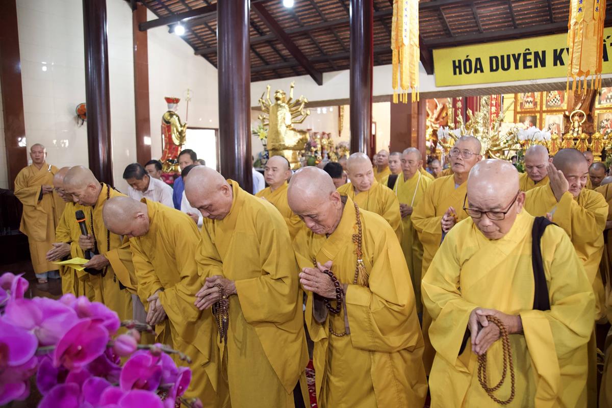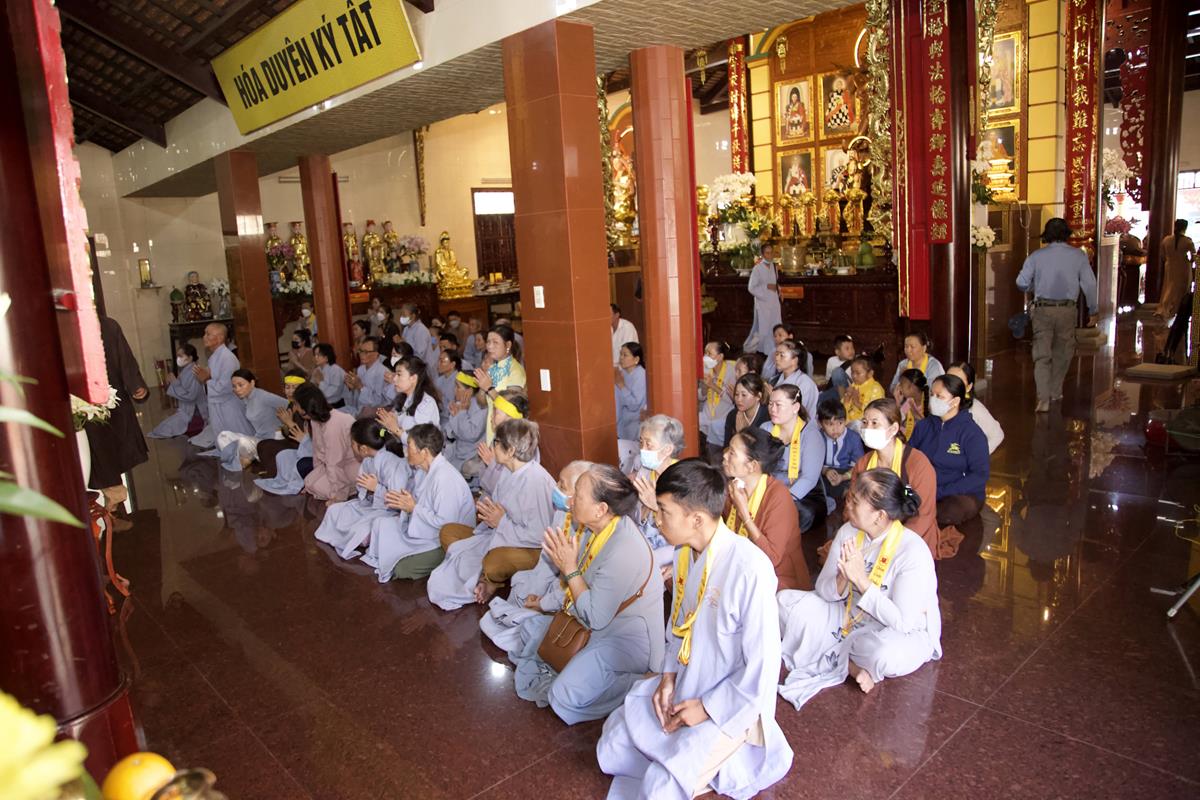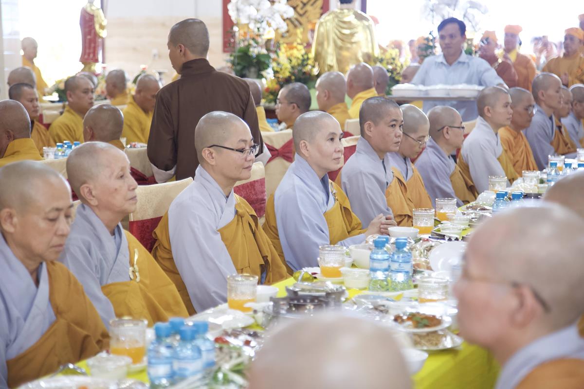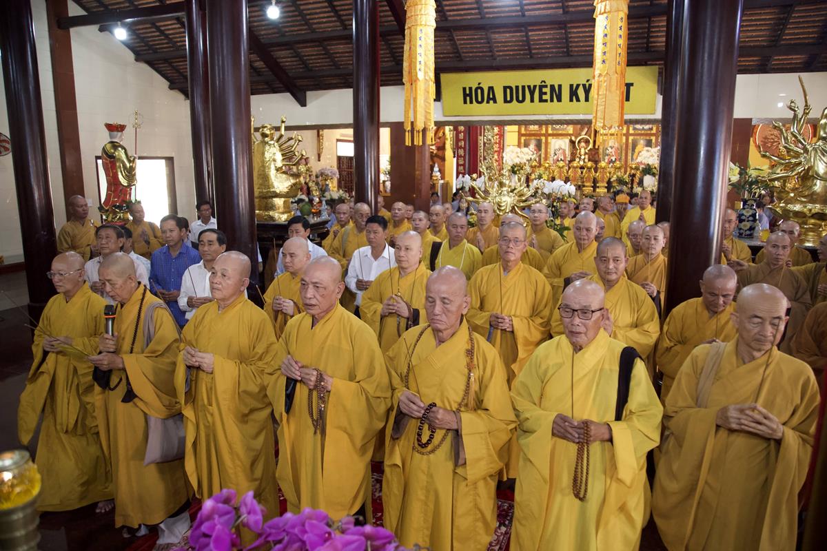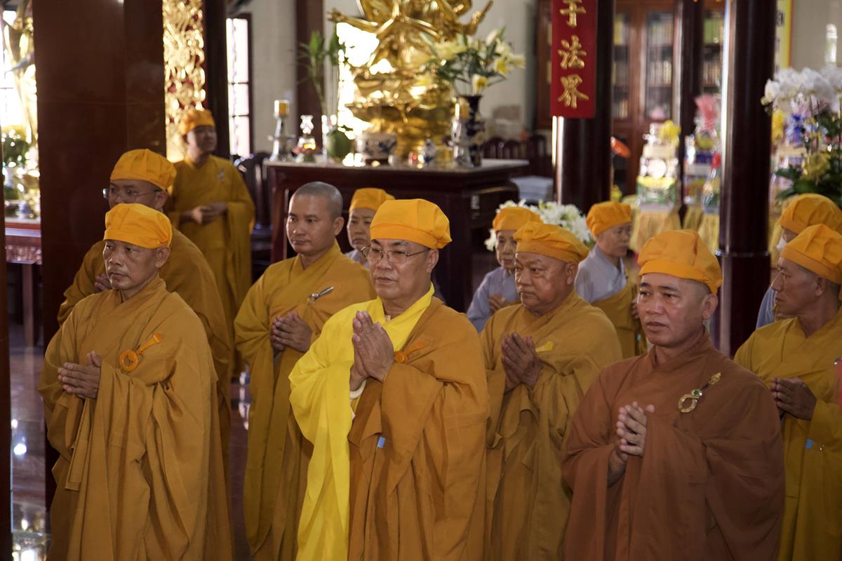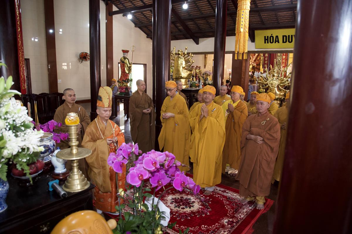 Chư Tôn đức Ban Trị sự GHPGVN tỉnh Long An, Ban Trị sự GHPGVN huyện Đức Hòa, huyện Đức Huệ cùng chư Tôn đức sơn môn pháp phái Tổ đình Linh Nguyên, đại diện các cấp lãnh đạo chính quyền quang lâm Giác linh đường thắp hương tưởng niệm công đức một đời cống hiến cho Đạo pháp – Dân tộc của cố Hóa thượng sau đó quang lâm về Trai đường chứng minh khóa lễ cúng dường trai tăng.
