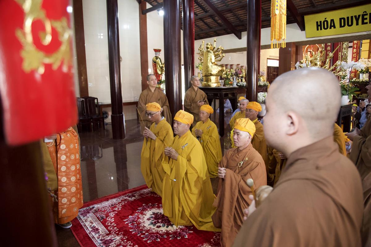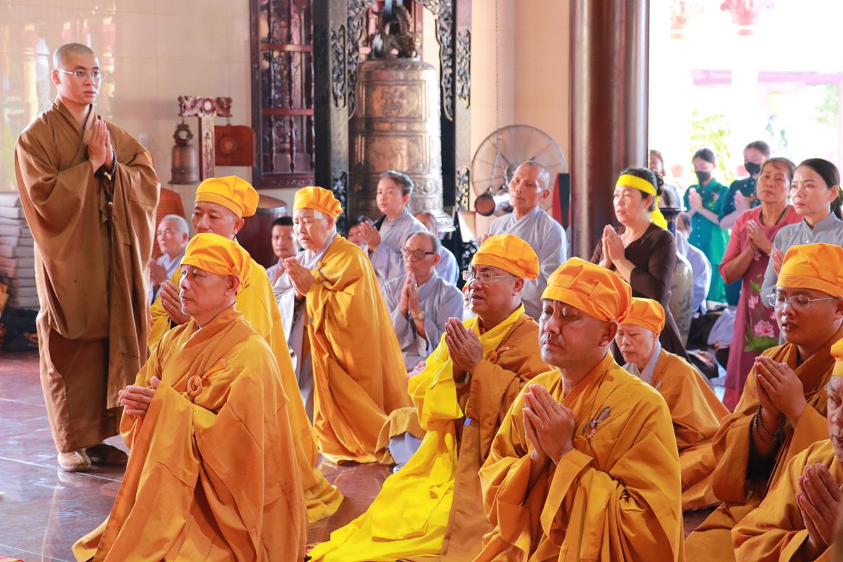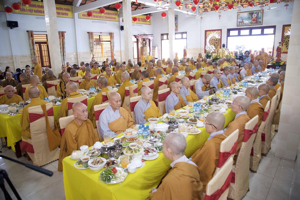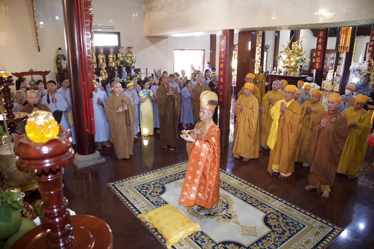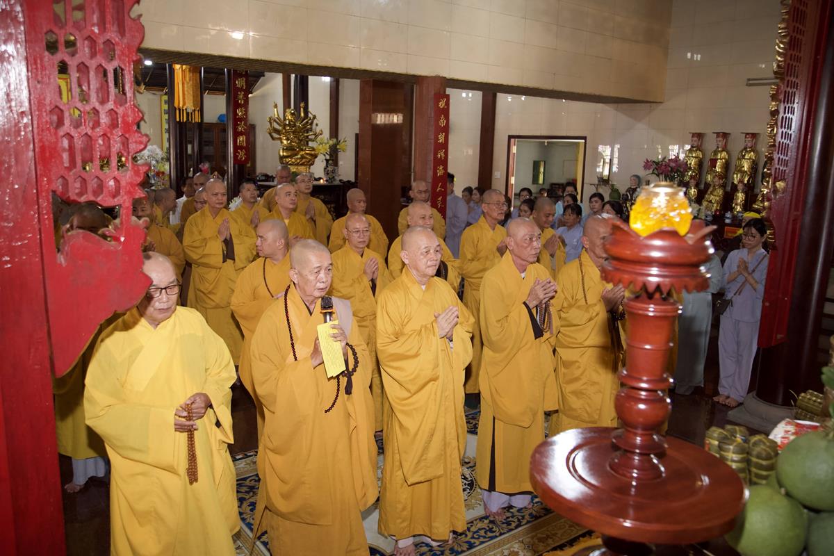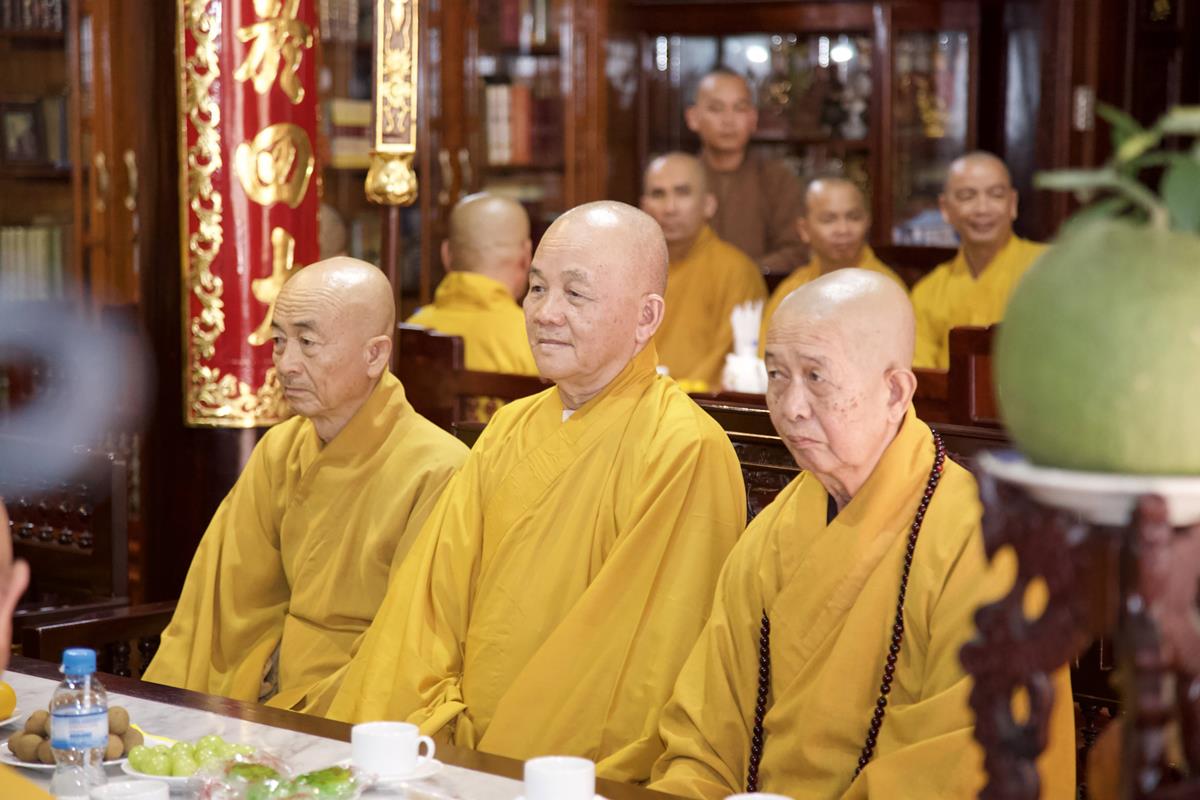 Chư Tôn đức Ban Trị sự GHPGVN tỉnh Long An, Ban Trị sự GHPGVN huyện Đức Hòa, huyện Đức Huệ cùng chư Tôn đức sơn môn pháp phái Tổ đình Linh Nguyên, đại diện các cấp lãnh đạo chính quyền quang lâm Giác linh đường thắp hương tưởng niệm công đức một đời cống hiến cho Đạo pháp – Dân tộc của cố Hóa thượng sau đó quang lâm về Trai đường chứng minh khóa lễ cúng dường trai tăng.