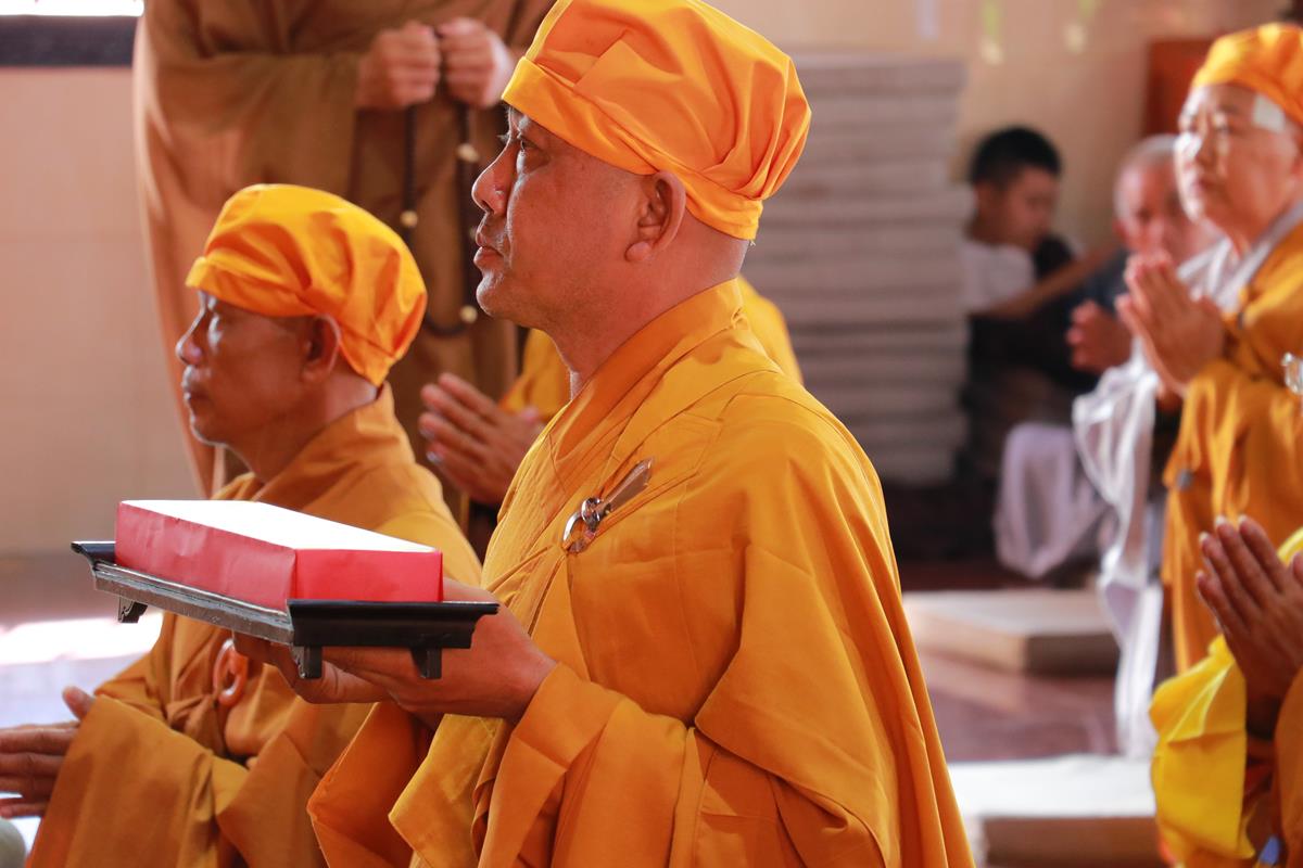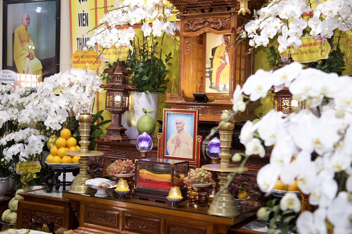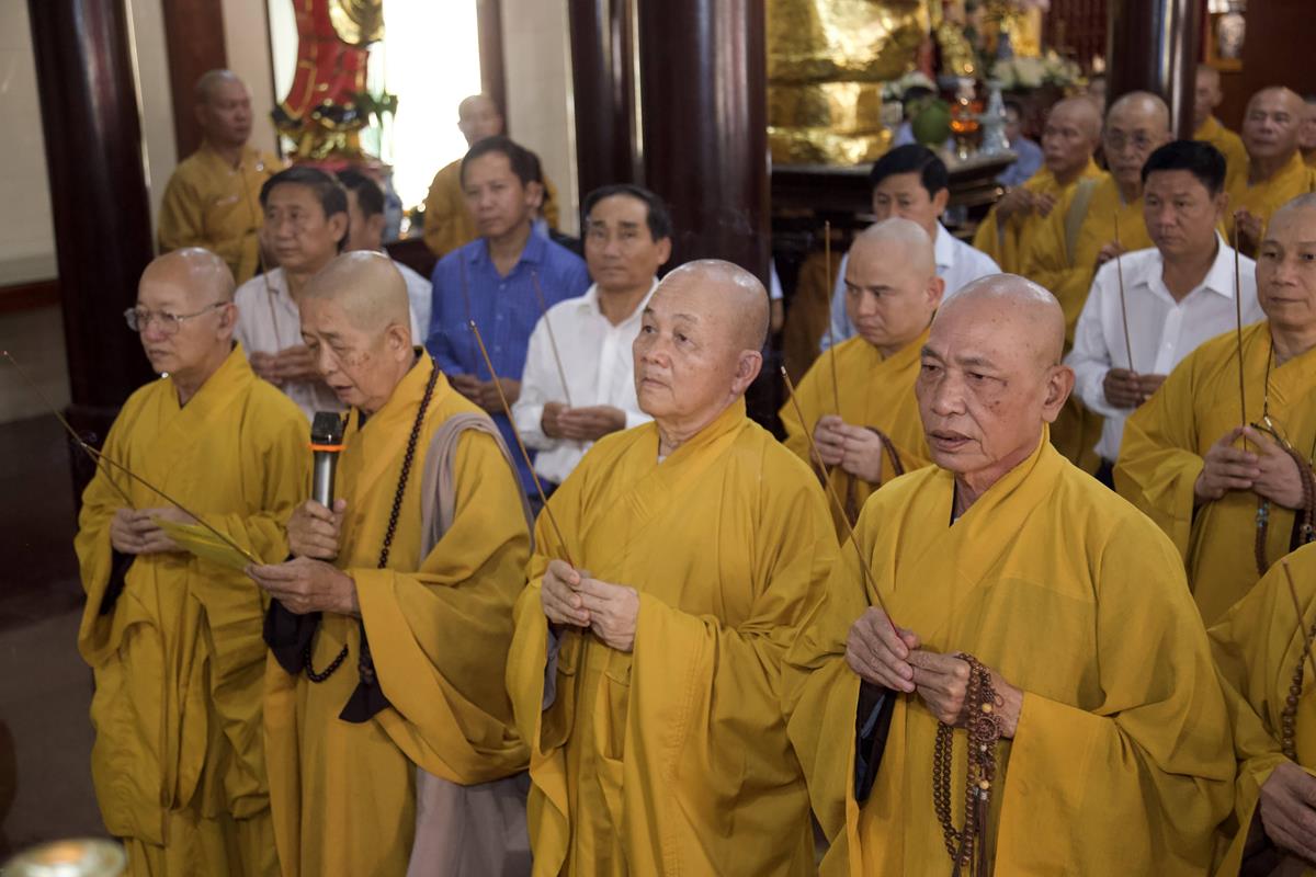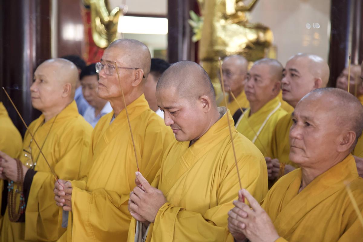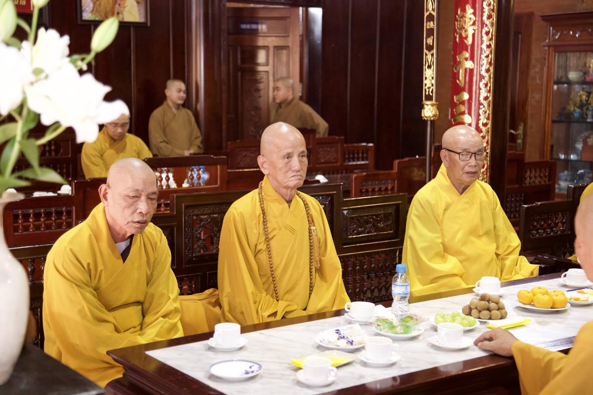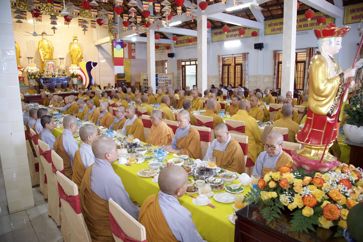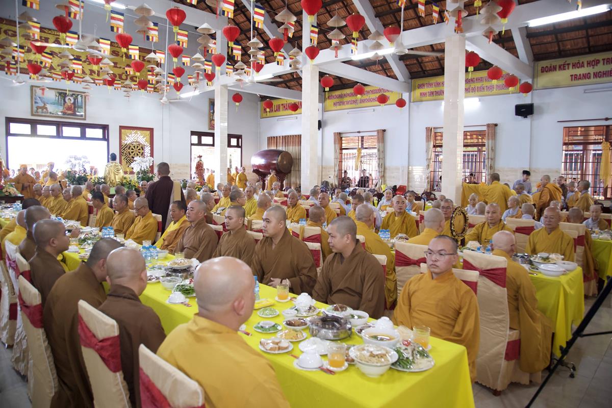 Chư Tôn đức Ban Trị sự GHPGVN tỉnh Long An, Ban Trị sự GHPGVN huyện Đức Hòa, huyện Đức Huệ cùng chư Tôn đức sơn môn pháp phái Tổ đình Linh Nguyên, đại diện các cấp lãnh đạo chính quyền quang lâm Giác linh đường thắp hương tưởng niệm công đức một đời cống hiến cho Đạo pháp – Dân tộc của cố Hóa thượng sau đó quang lâm về Trai đường chứng minh khóa lễ cúng dường trai tăng.