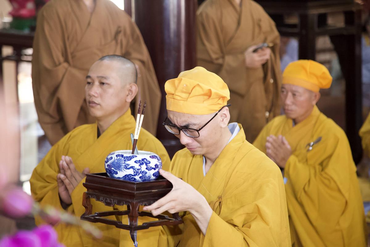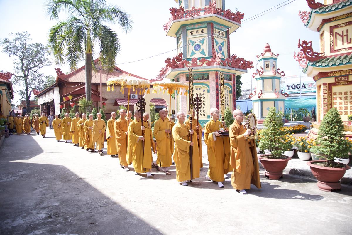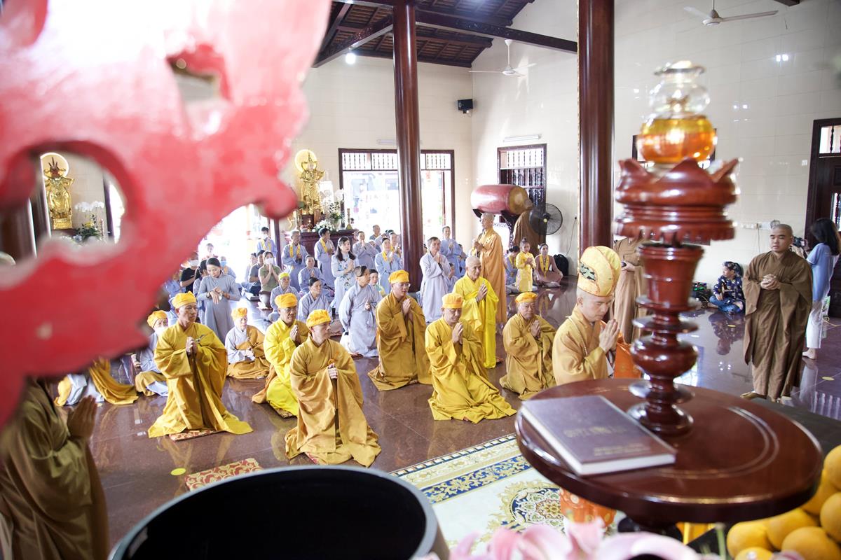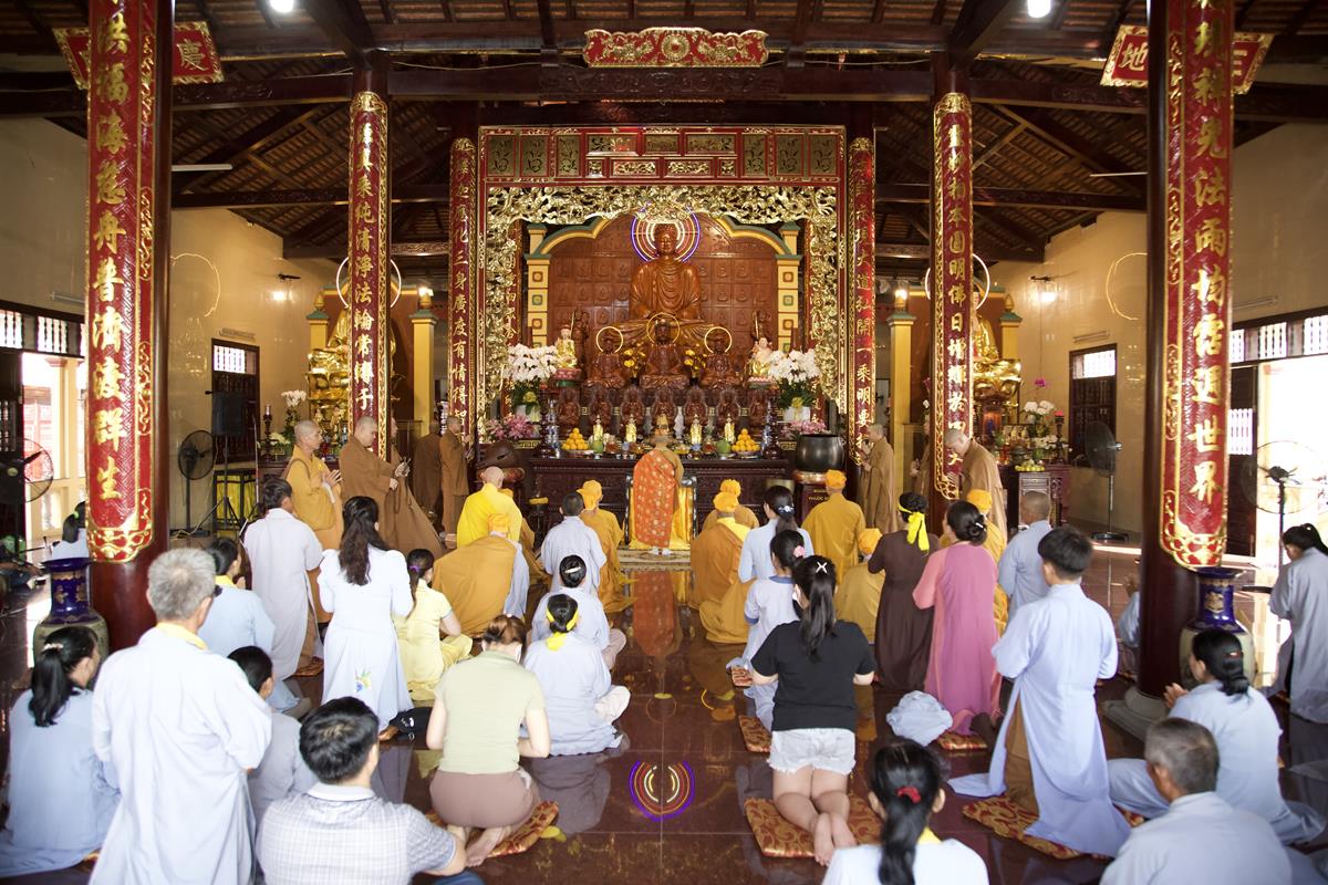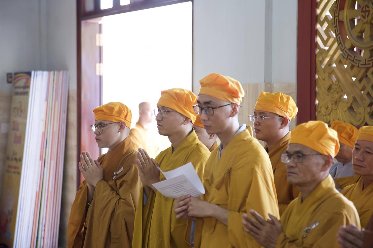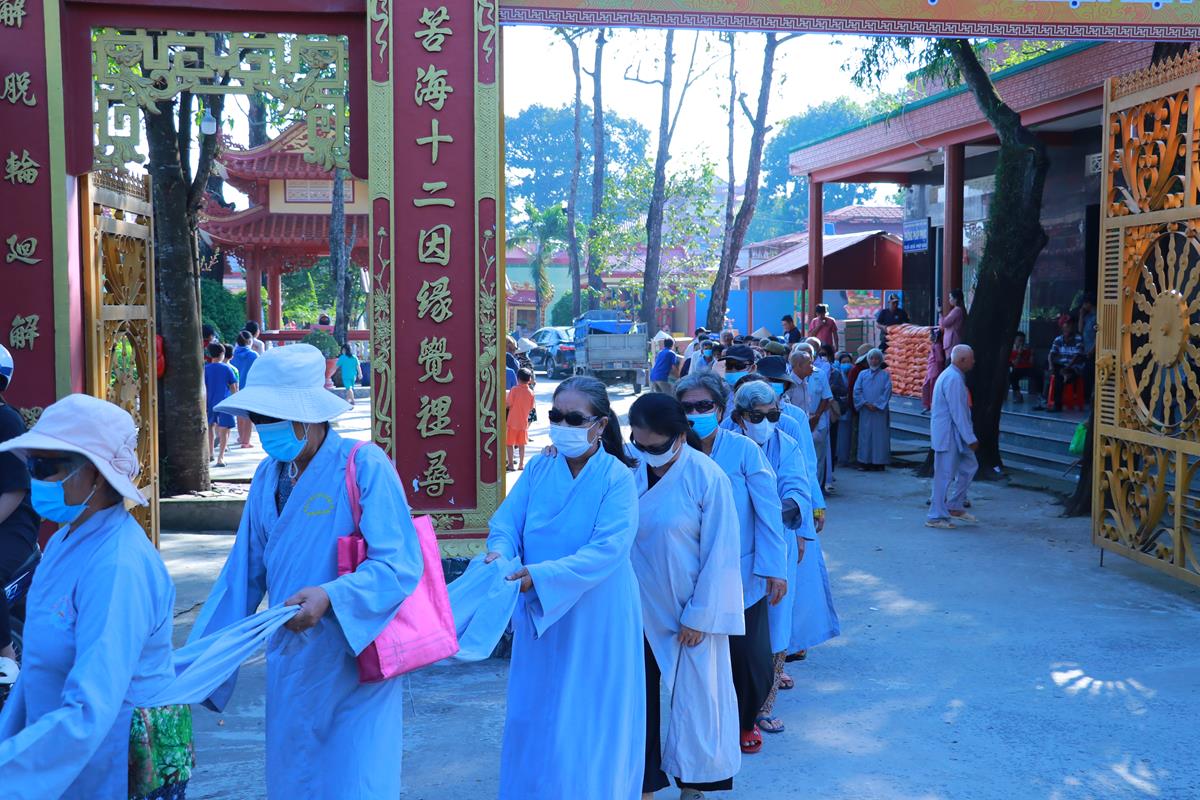 Chư Tôn đức Ban Trị sự GHPGVN tỉnh Long An, Ban Trị sự GHPGVN huyện Đức Hòa, huyện Đức Huệ cùng chư Tôn đức sơn môn pháp phái Tổ đình Linh Nguyên, đại diện các cấp lãnh đạo chính quyền quang lâm Giác linh đường thắp hương tưởng niệm công đức một đời cống hiến cho Đạo pháp – Dân tộc của cố Hóa thượng sau đó quang lâm về Trai đường chứng minh khóa lễ cúng dường trai tăng.