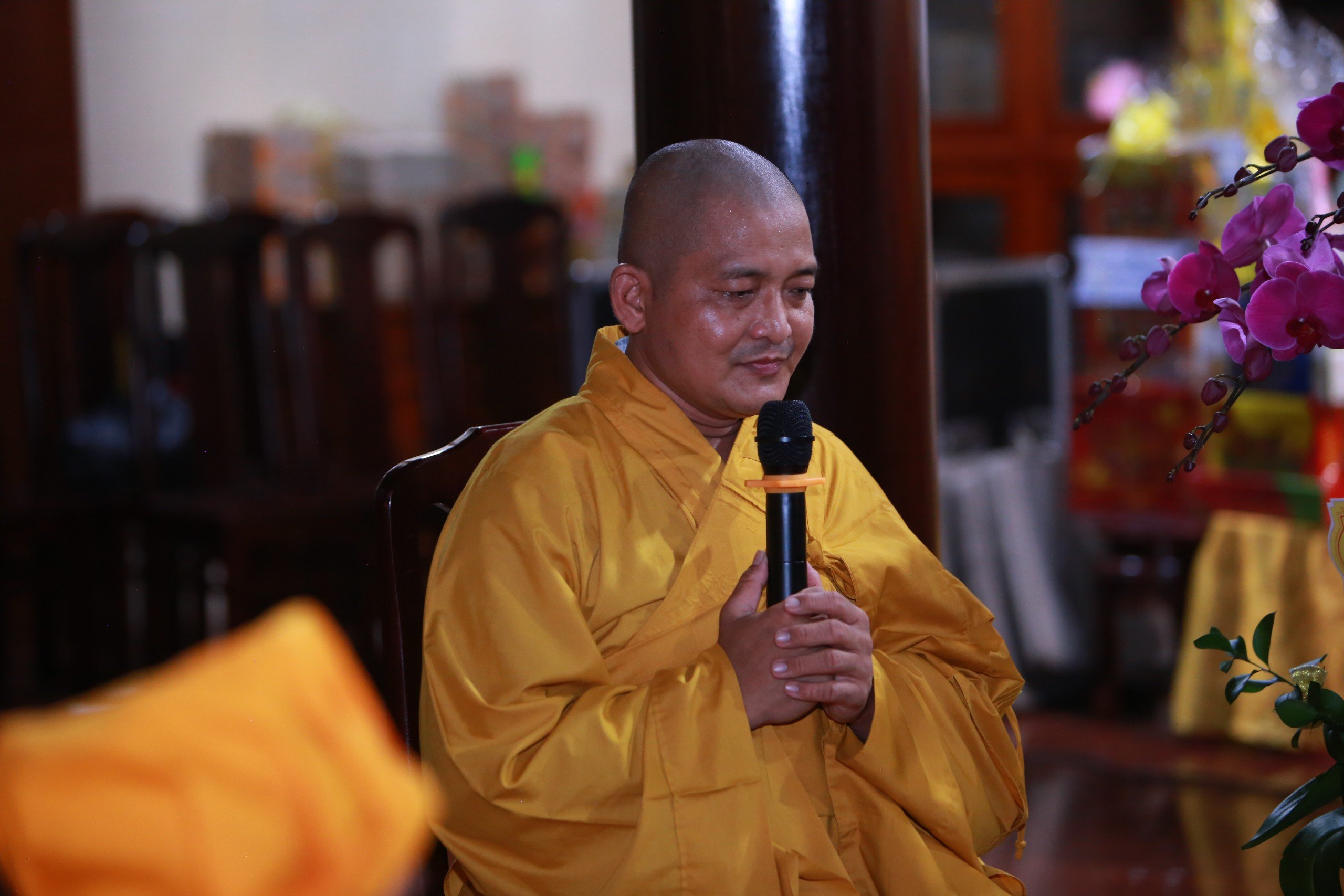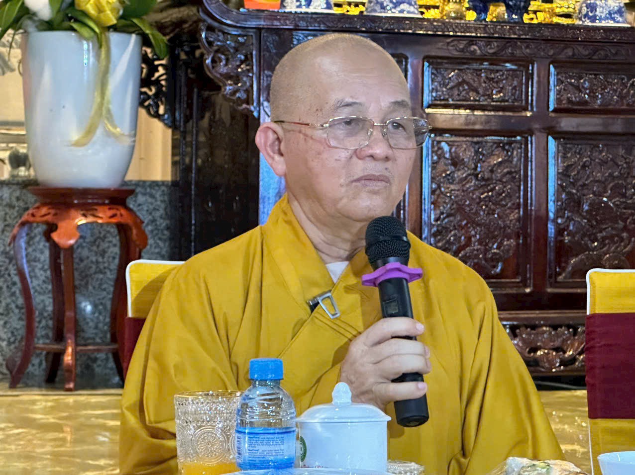 Đại đức Thích Lệ Duyên – Phó ban kiêm Chánh Thư ký BTS GHPGVN tỉnh Long An, Trưởng BTS GHPGVN huyện Đức Hòa, Trưởng ban Trụ trì tổ đình Linh Nguyên cung tuyên tiểu sử cố Hòa thượng Thích Thiện Phúc.