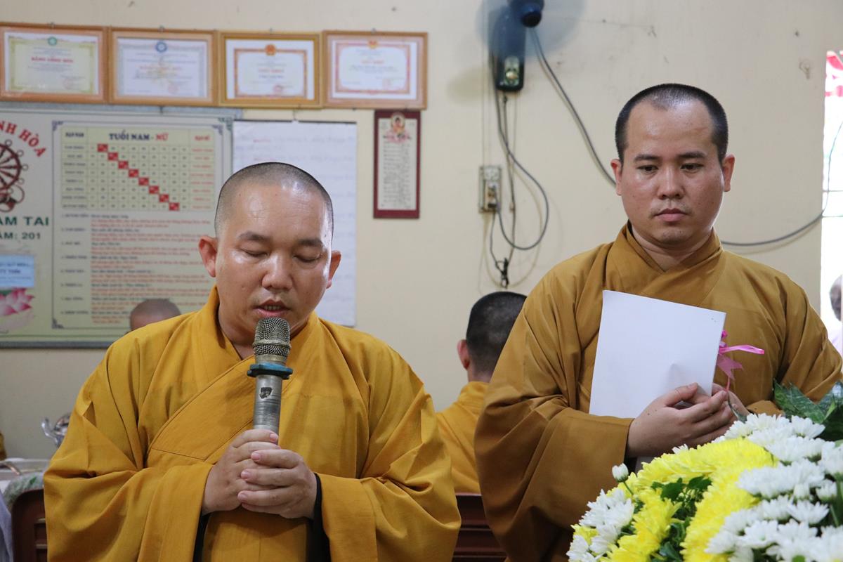 - Sau khi tiếp nhận quyết định và con dấu Đại đức tân Trụ trì đã thay mặt hàng Môn đồ tứ chúng dâng lời phát nguyện làm tốt nhiệm vụ được giao và tác bạch cúng dường Trai tăng nhân lễ Huý nhật Cố Thượng tọa Thích Nhựt Tường. Đại đức phát nguyện chấp hành nghiêm chỉnh Hiến chương GHPGVN, pháp luật hiện hành và nhất nhất tuân hành sự chỉ đạo của Ban Thường trực BTS GHPGVN tỉnh Long An, huyện Đức Hòa.