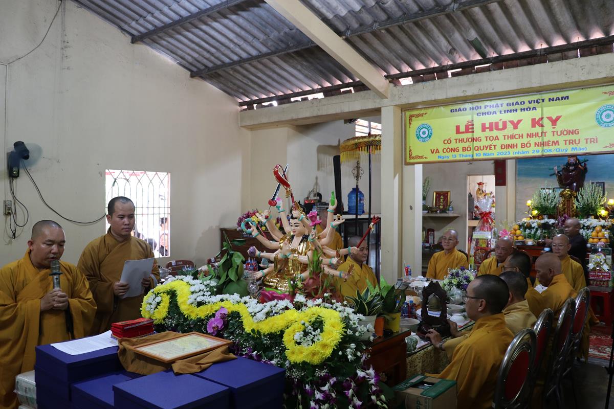 Đại đức Thích Lệ Duyên – Phó Trưởng ban kiêm Chánh thư ký BTS GHPGVN tỉnh Long An – Trưởng BTS GHPGVN huyện Đức Hòa thay mặt Ban Thường trực BTS GHPGVN tỉnh Long An tuyên đọc quyết định số 037/QĐ-BTS do Hòa thượng Thích Minh Thiện ấn kỳ ngày 24 tháng 10 năm 2022 về việc bổ nhiệm Đại đức Thích Lệ Thành giữ chức vụ Trụ trì Chùa Linh Hòa, ấp Hòa Bình 1, xã Hiệp Hòa, huyện Đức Hòa, tỉnh Long An. Theo đó, Đại đức Thích Lệ Thành, thế danh Phan Đình Hầu, sinh ngày 05 tháng 01 năm 1986, hộ khẩu thường trú: ấp Hòa Bình 1, xã Hiệp Hòa, huyện Đức Hòa, tỉnh Long An. Đại đức là đệ tử Cố Hòa thượng Thích Thiện Phúc – Nguyên Trưởng BTS GHPGVN liên huyện Đức Hòa – Đức Huệ.