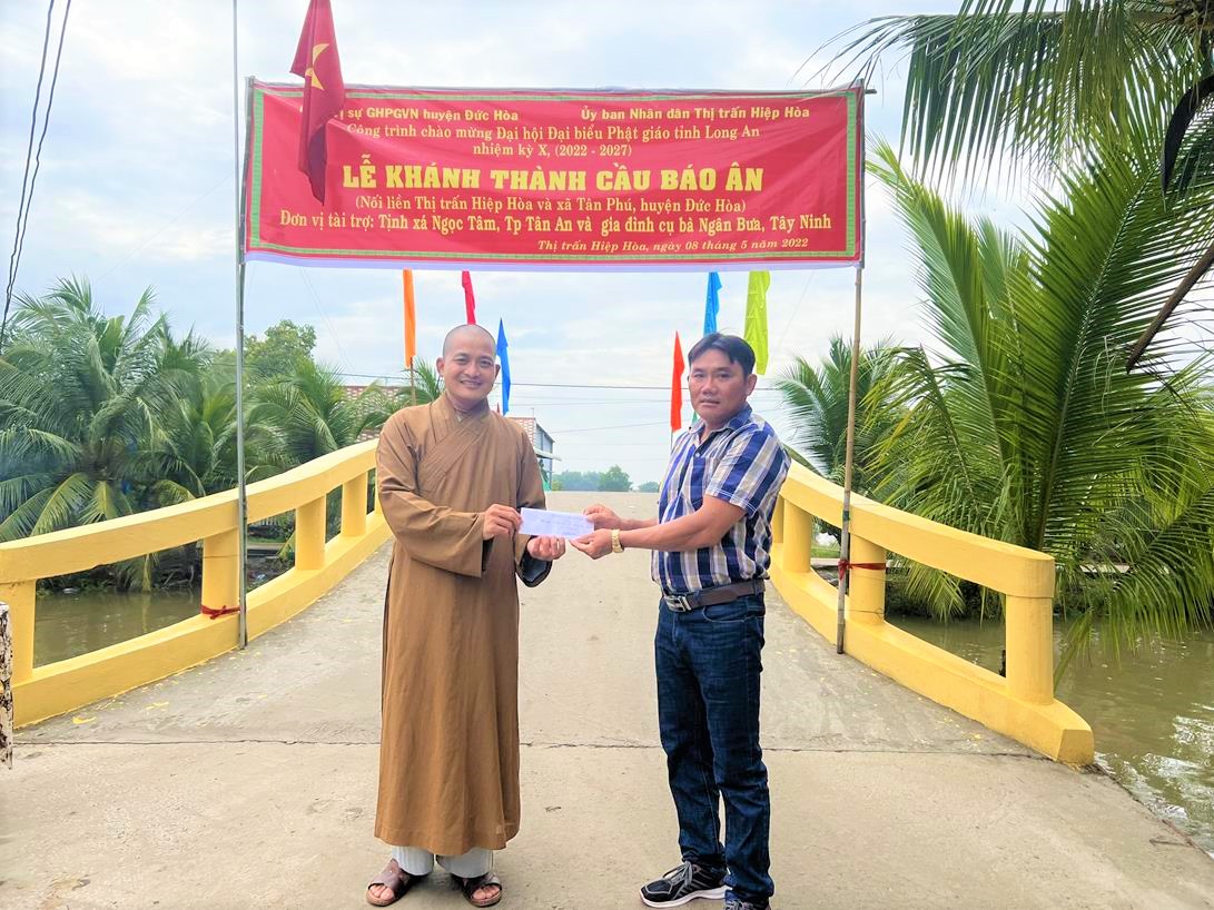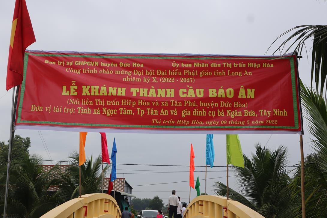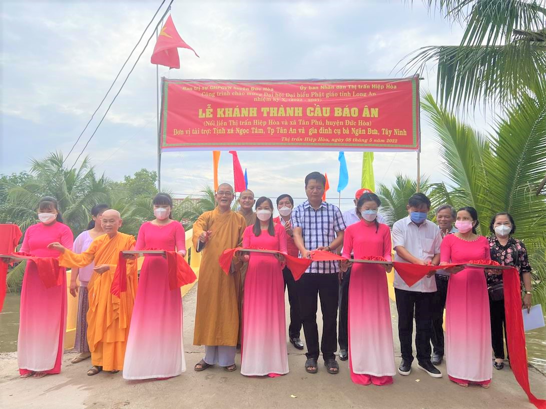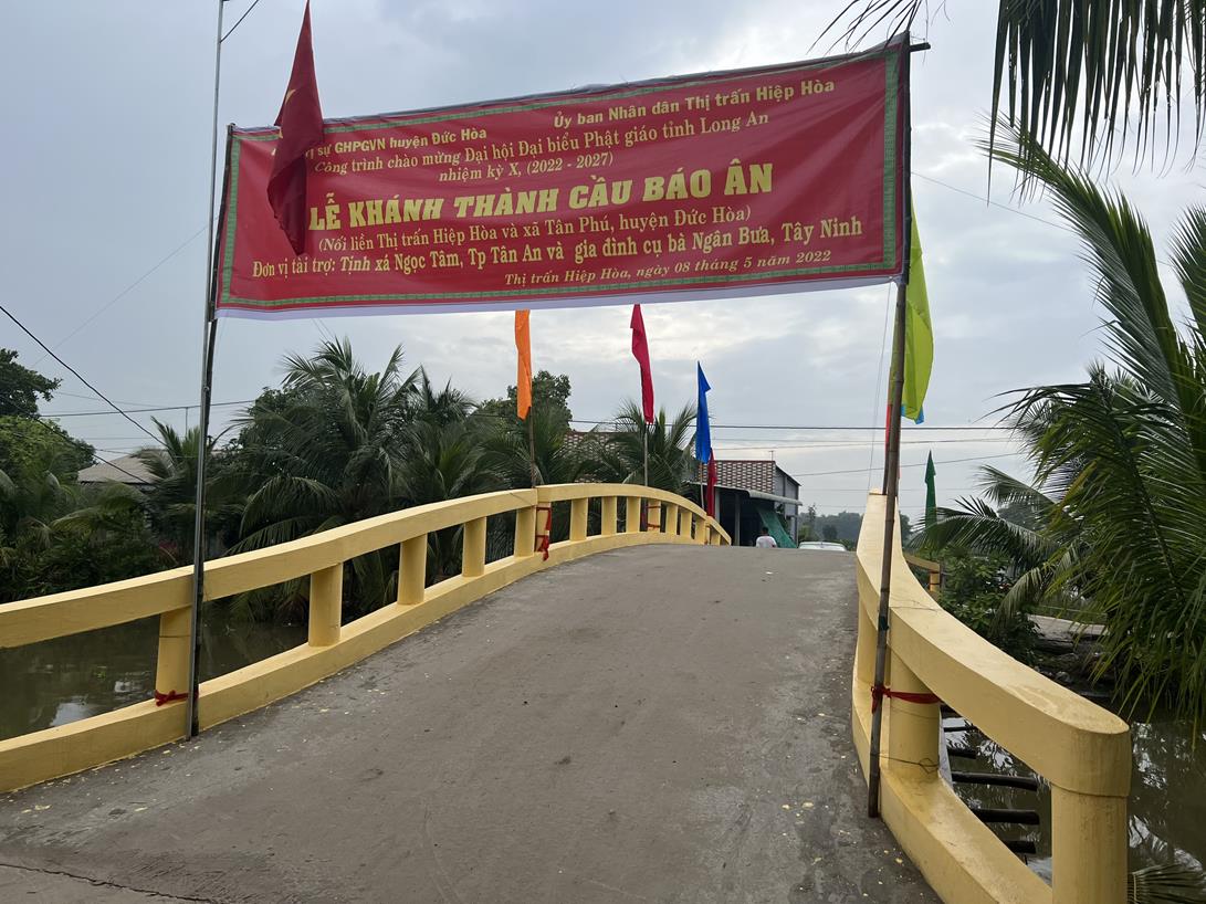 Sáng ngày 08/05/2022 (nhằm ngày 08/04/Nhâm Dần), Ban Trị sự GHPGVN huyện Đức Hòa phối hợp với lãnh đạo Thị trấn Hiệp Hòa, xã Tân Phú tổ chức lễ khánh thành cầu Báo Ân (Thổ Định) tại khu vực 3, thị trấn Hiệp Hòa, huyện Đức Hòa, tỉnh Long An.