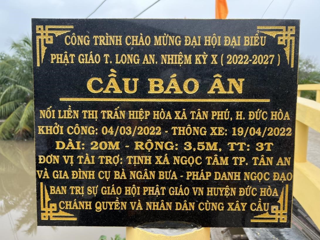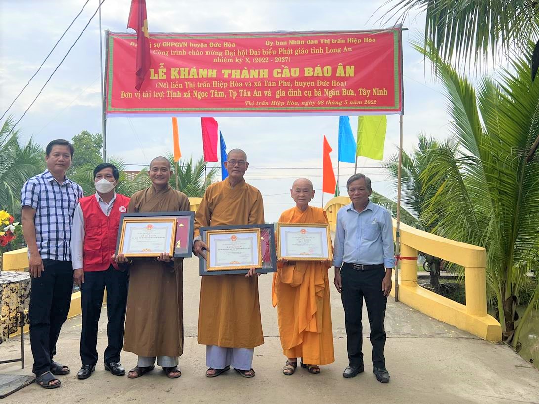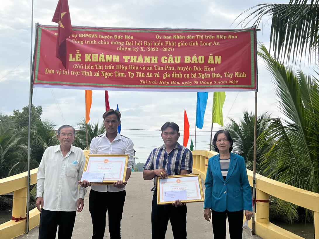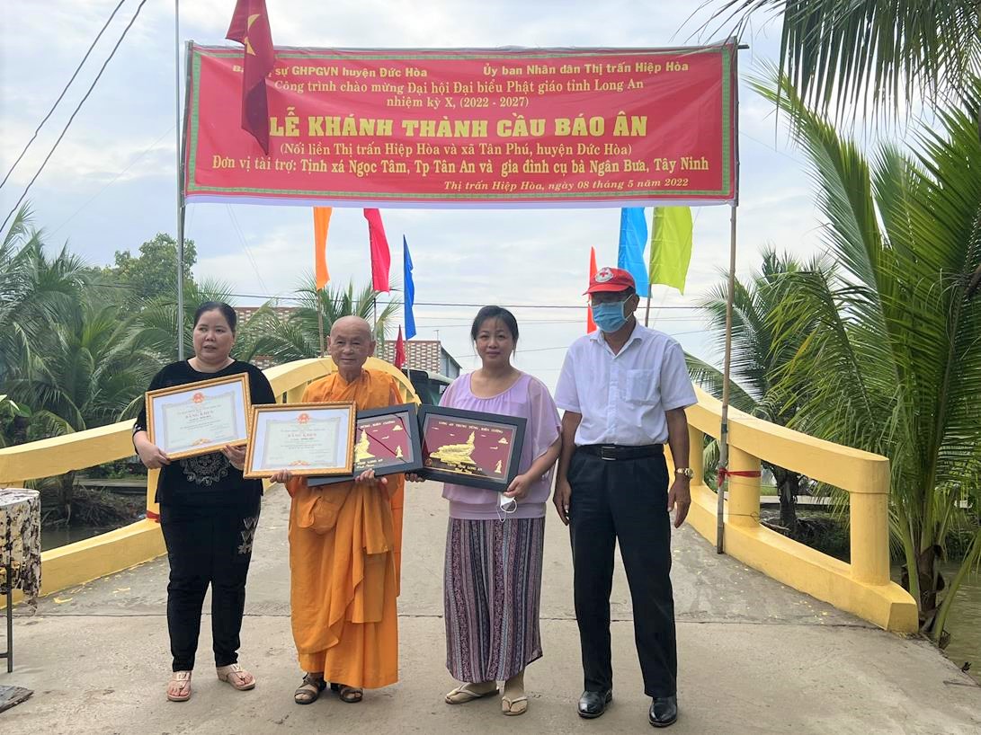 Sáng ngày 08/05/2022 (nhằm ngày 08/04/Nhâm Dần), Ban Trị sự GHPGVN huyện Đức Hòa phối hợp với lãnh đạo Thị trấn Hiệp Hòa, xã Tân Phú tổ chức lễ khánh thành cầu Báo Ân (Thổ Định) tại khu vực 3, thị trấn Hiệp Hòa, huyện Đức Hòa, tỉnh Long An.