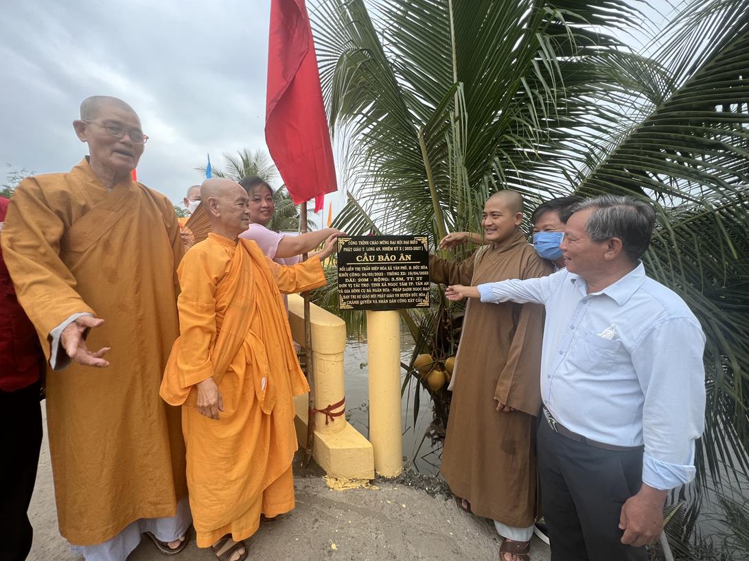 Được biết nhóm thợ chùa Giác Hoa, huyện Tân Thạnh thi công cầu Báo Ân này trong thời tiết mưa bão và đã hoàn thành 100% trong vòng 30 ngày. Nhân dịp này, Đại đức Thích Lệ Duyên trao tặng cho nhóm thợ thi công 5.000.000 đ (năm triệu đồng). Công trình phúc lợi này đã được Chư Tôn đức Tăng Ni, quý cấp lãnh đạo chính quyền sở tại cùng nhân dân làm lễ cắt băng khánh thành chính thức thông xe tạo điều kiện thuận lợi cho nhân dân trong sản xuất kinh tế. Đây là thành quả tích cực đóng góp công đức hướng về ngày lễ trọng Phật giáo, kỷ niệm Đại lễ Phật đản Phật lịch 2566 và chào mừng Đại hội Đại biểu Phật giáo tỉnh Long An nhiệm kỳ X (2022-2027).