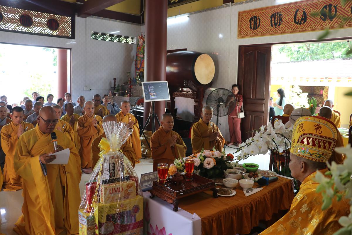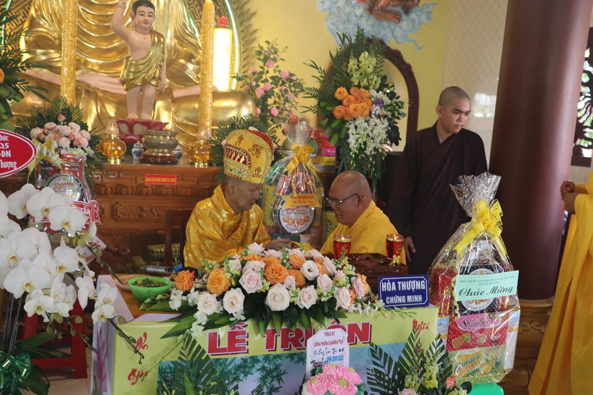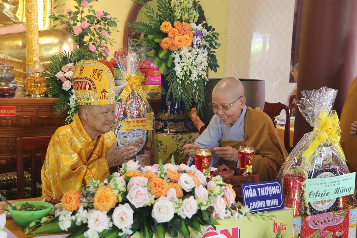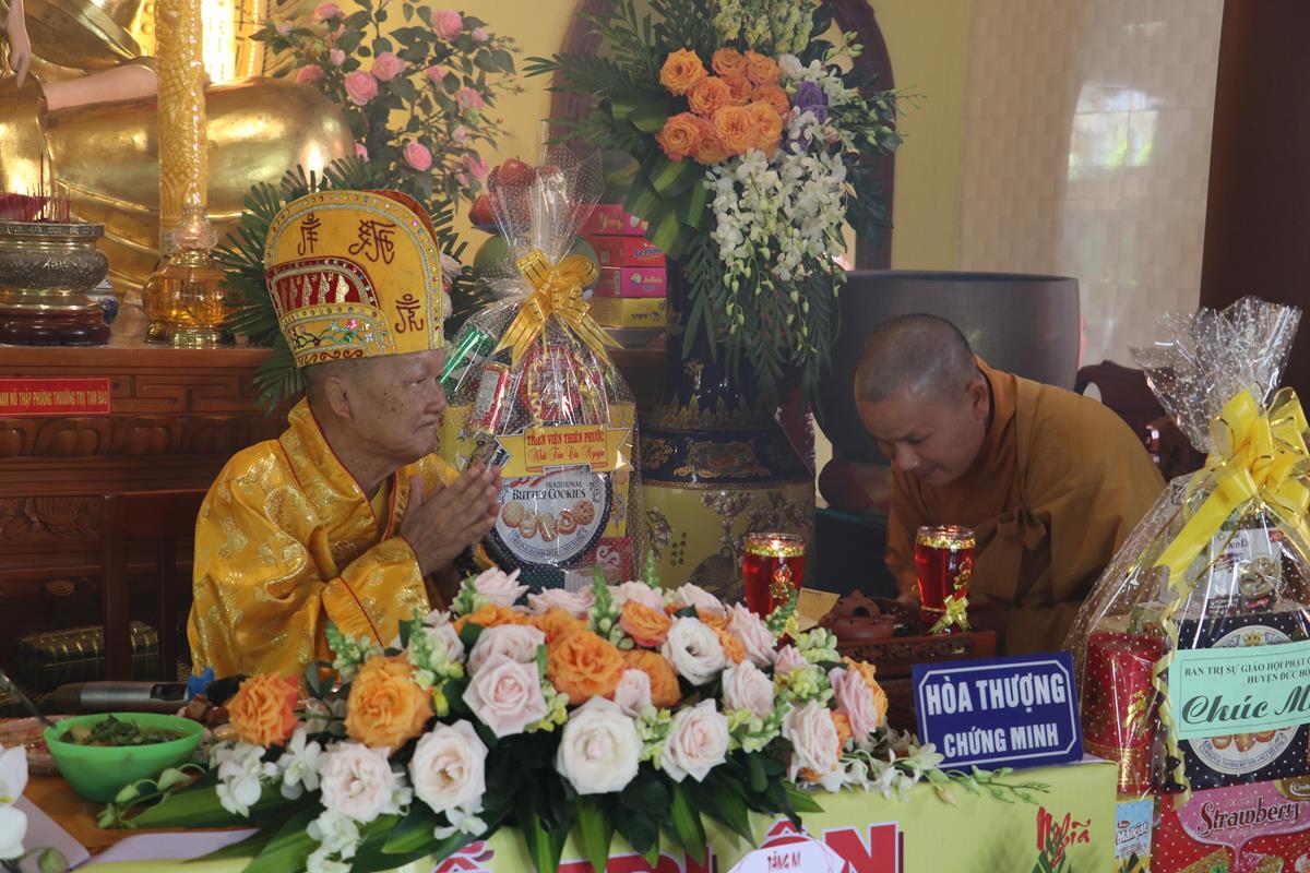 Quang lâm chứng minh và tham dự buổi lễ có: Hòa thượng Thích Quảng Tài – Chứng minh Ban Nghi lễ GHPGVN huyện Đức Hòa; Đại đức Thích Lệ Duyên – Phó ban kiêm Chánh Thư ký BTS GHPGVN tỉnh Long An, Trưởng BTS GHPGVN huyện Đức Hòa, Trưởng ban Trụ trì chùa Linh Nguyên; Thượng tọa Thích Nhuận Thành – Trưởng ban Kinh tế Tài chính GHPGVN tỉnh Long An, Phó BTS GHPGVN huyện Đức Hòa; ĐĐ. Thích Thiện An – Trưởng BTS GHPGVN huyện Đức Huệ; Thượng tọa Thích Minh Trung – Phó Trưởng ban Thường trực BTS GHPGVN huyện Đức Hòa; Đại đức Thích Thiện Trực – Phó BTS GHPGVN huyện Đức Hòa; Ni trưởng Thích nữ Diệu Nhàn – Phó Phân ban Ni giới GHPGVN tỉnh Long An, Trưởng Phân ban Ni giới GHPGVN huyện Đức Hòa; Chư tôn đức Thường trực BTS GHPGVN huyện Đức Hòa, huyện Đức Huệ; Chư tôn đức môn phong Chùa Linh Nguyên, chùa Long Quang, chùa Linh Pháp đồng về chứng minh và tham dự.