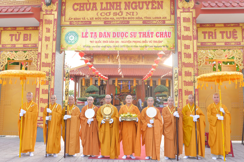 Sáng nay, ngày 28/3/2021 (nhằm ngày 16/2/Tân Sửu), đạo tràng Linh Nguyên Ni ấp Bình Tả, xã Đức Hòa Hạ, huyện Đức Hòa, long trọng tổ chức lễ Tạ đàn Dược sư Thất Châu. Với tâm nguyện cầu quốc thới dân an, thế giới hòa bình, chúng sinh lợi lạc, tai nạn dịch bệnh Covid tiêu trừ, chư Ni chùa Linh Nguyên vâng theo lời dạy của Hòa thượng Thích Thiện Phúc, đầu năm Tân Sửu đã cung thiết đàn tràng, cung thỉnh tôn tượng Thất Phật Dược Sư trang nghiêm đại điện, phúng tụng tôn kinh, nghiêm trì Dược Sư thần chú. Những mong thần lực của Thất Phật Dược Sư quang chiếu, đạo tràng tứ chúng được gội nhuần pháp lạc.