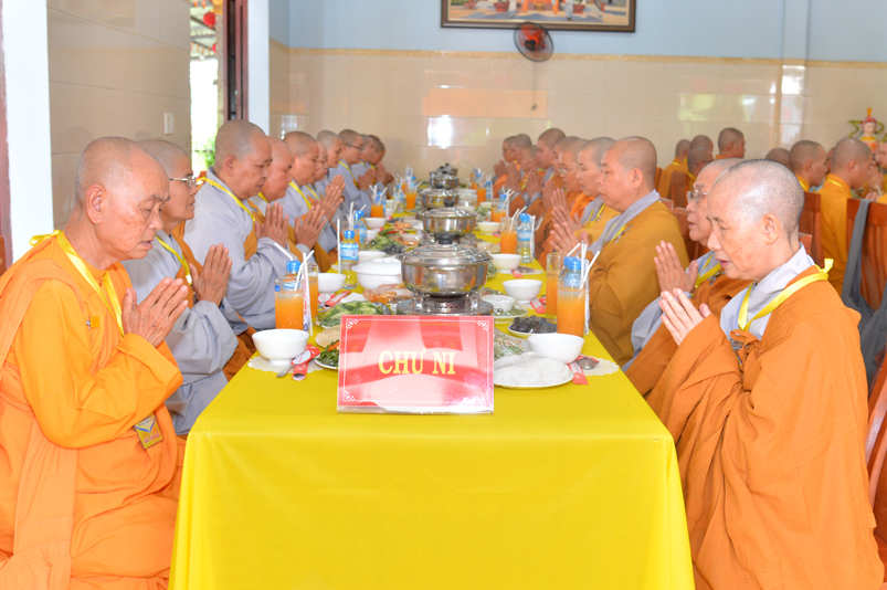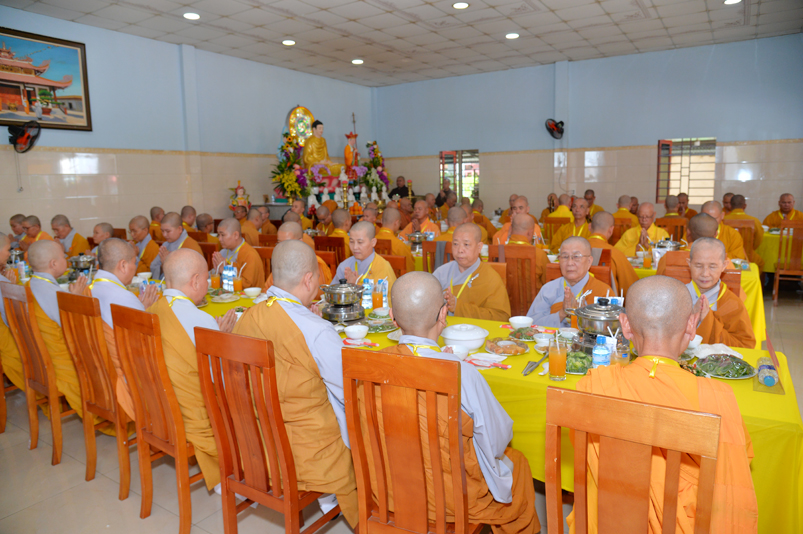 Thời kinh viên mãn, Ban nghi lễ cung thỉnh chư Tôn Đức trở về phương trượng; tiếp theo là phần nghi thức trai đường, cúng dường trai tăng.