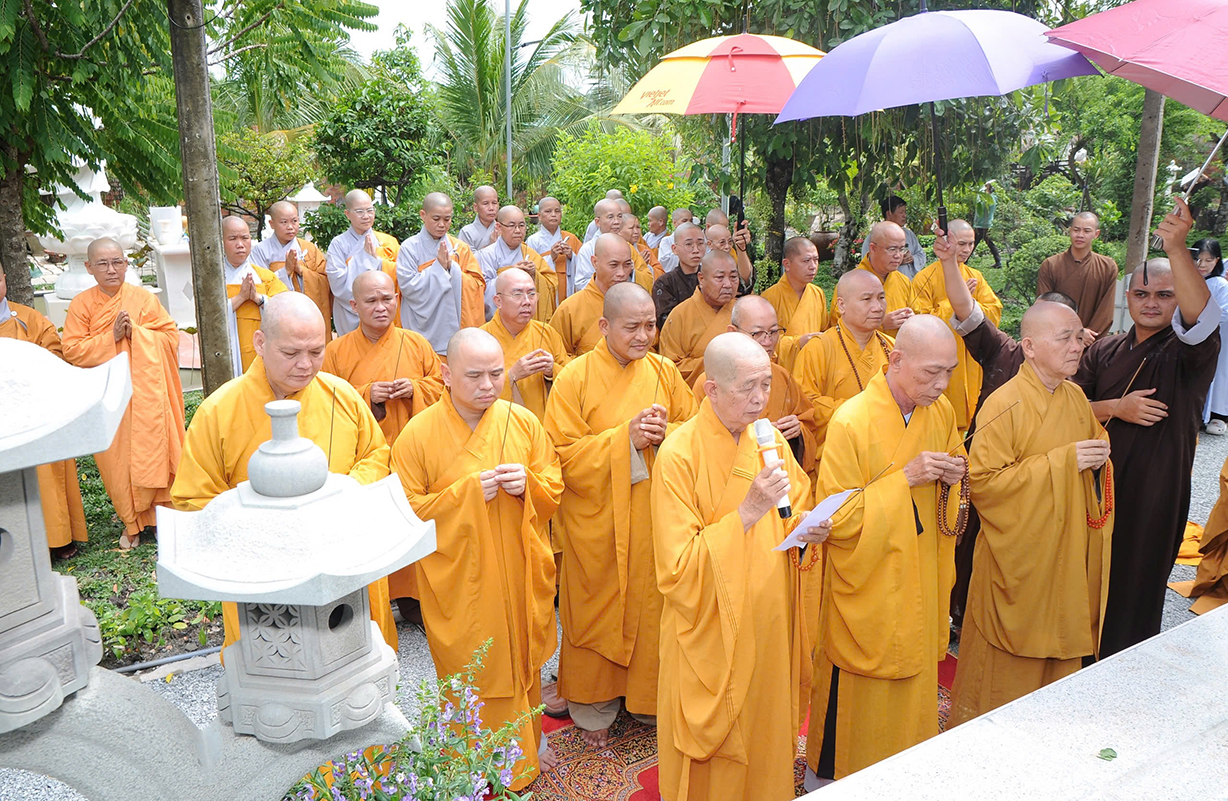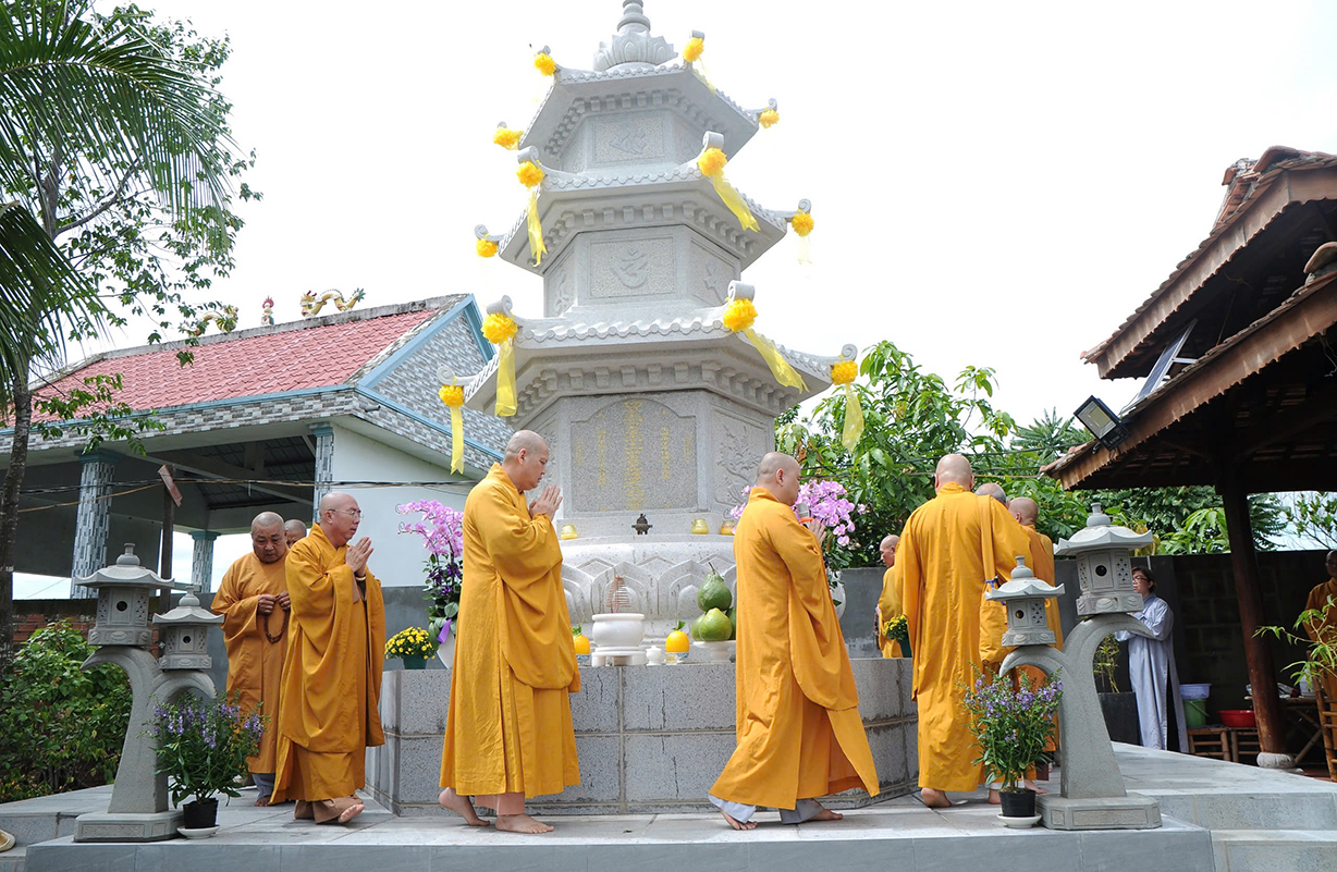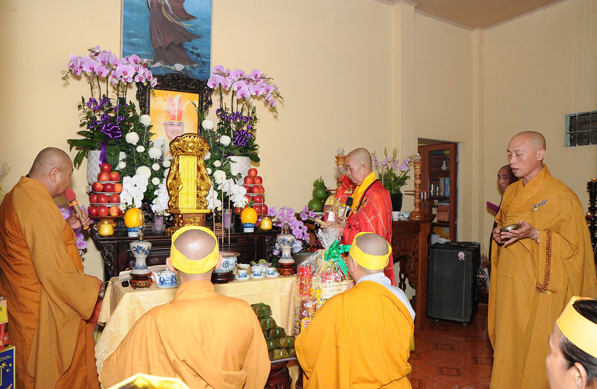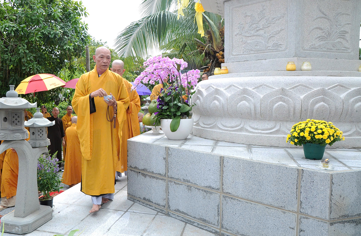 Mở đầu buổi lễ là nghi thức Cúng ngọ và Cung tiến Giác linh Cố Hòa thượng tân viên tịch. Sau đó môn đồ pháp quyến đã cung thỉnh Chư tôn Hòa thượng, Chư tôn đức Chứng minh quang lâm bảo tháp thực hiện nghi thức tạ tháp, sái tịnh, nhiễu tháp theo nghi thức truyền thống của Phật giáo.